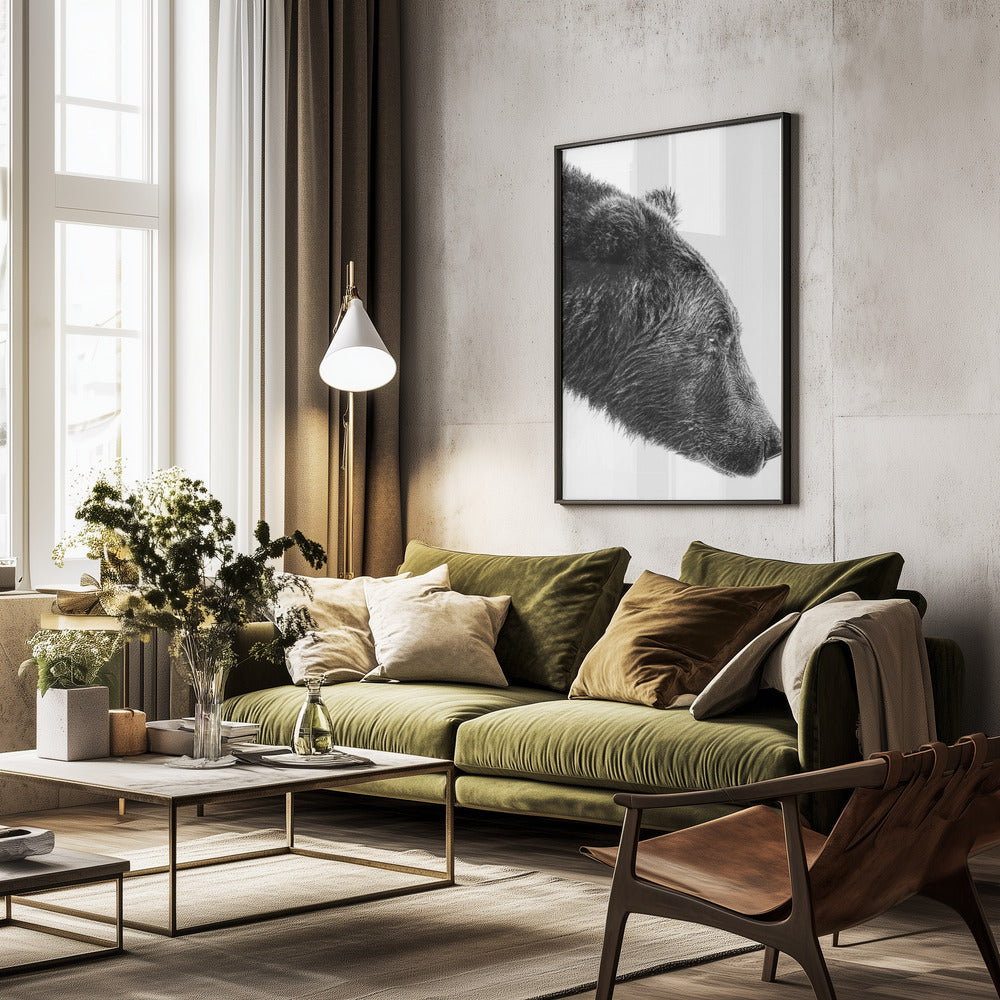 Tabloul înramat „The Salmon Catcher”, creat de Anchor Lee, este disponibil în mai multe dimensiuni, cu ramă neagră, albă sau din lemn natur. Se potrivește perfect în orice încăpere.