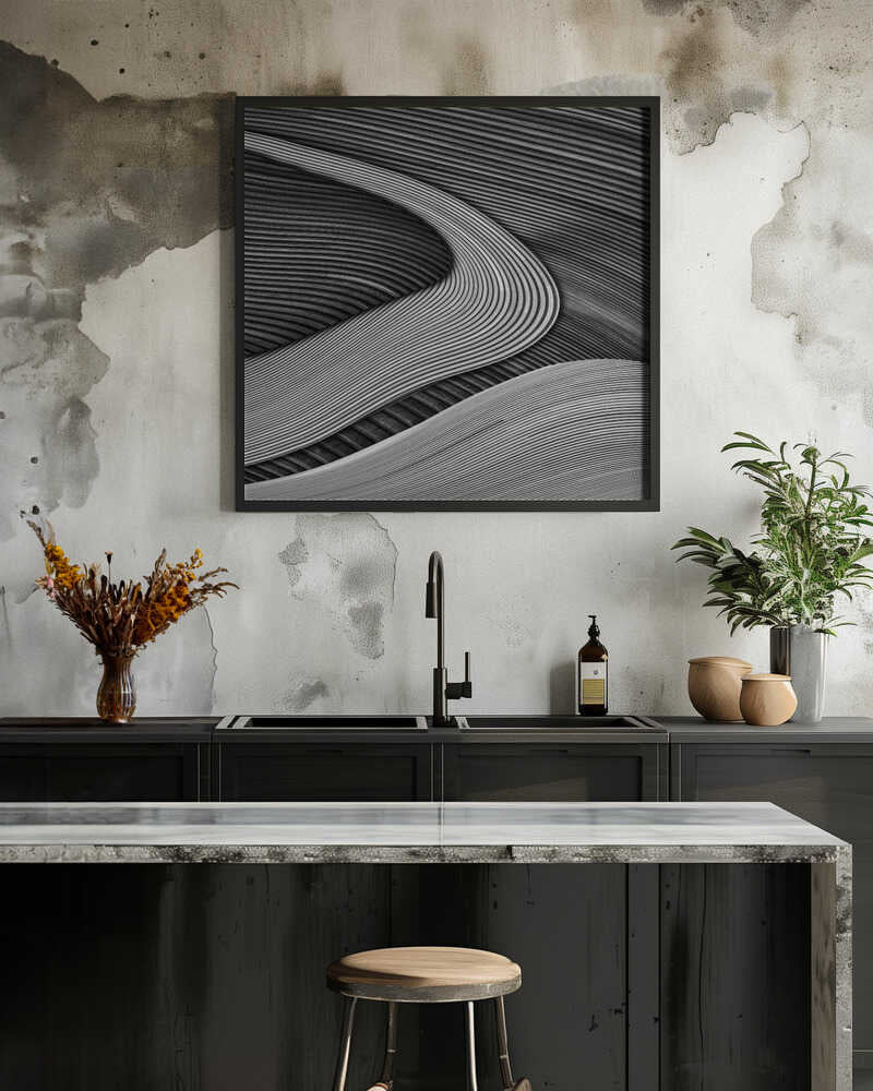 Tabloul înramat „The wood project III - Zen garden”, creat de Luc Vangindertael (laGrange), este disponibil în mai multe dimensiuni, cu ramă neagră, albă sau din lemn natur. Se potrivește perfect în orice încăpere.