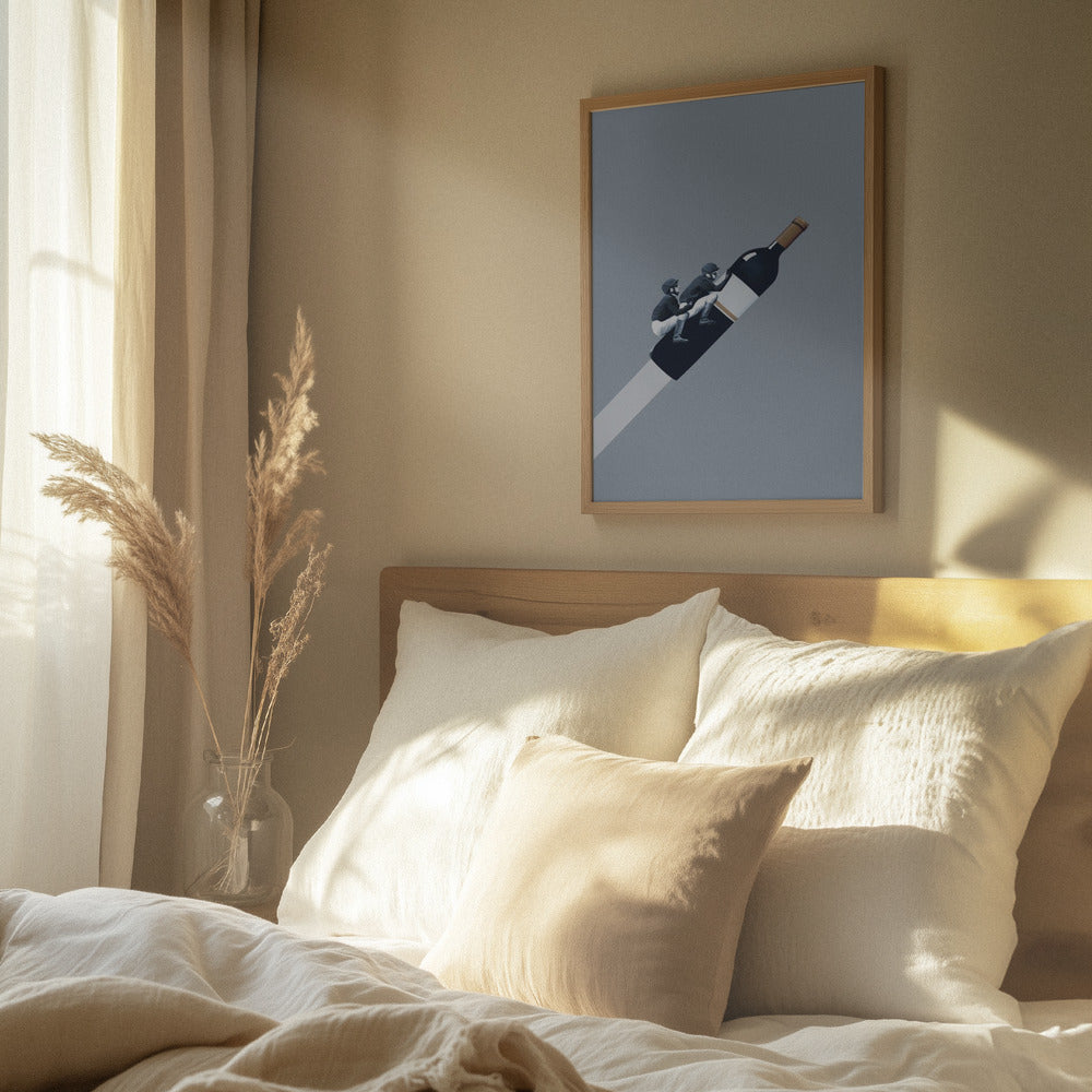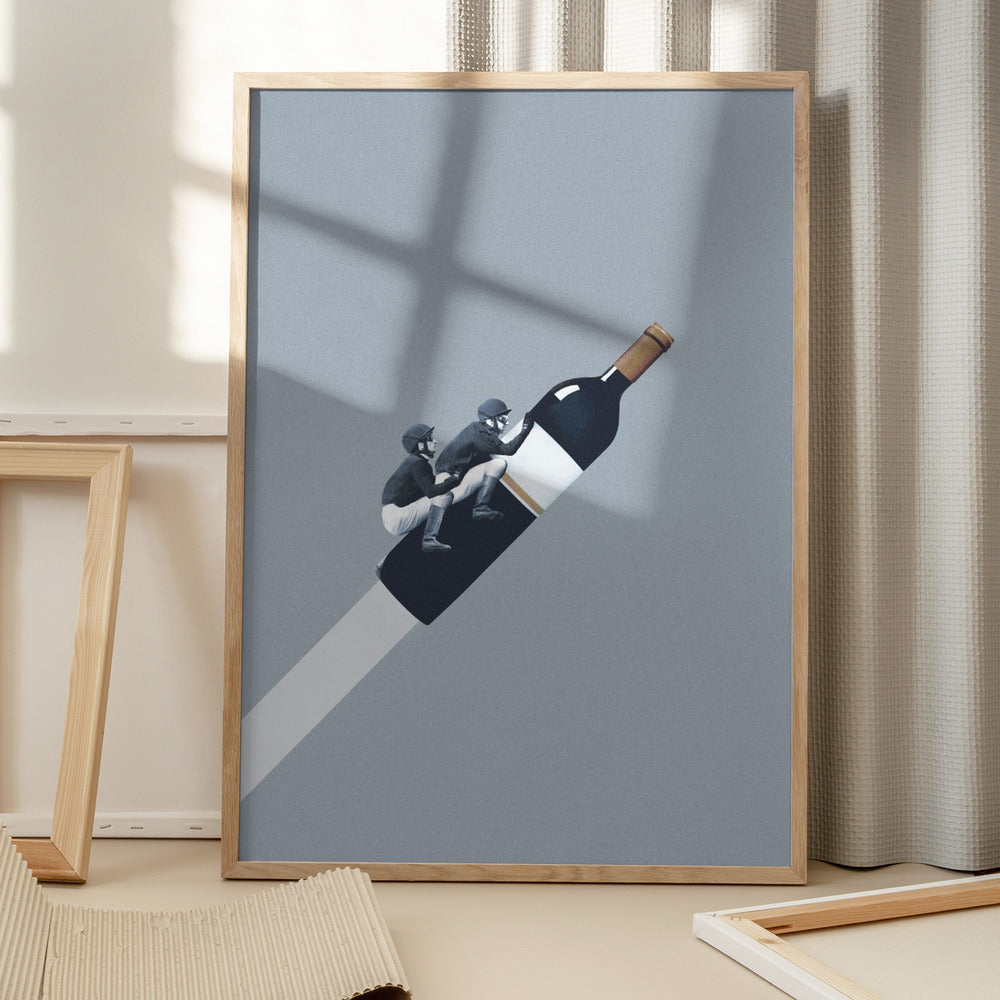 Tabloul înramat „We ride until dawn”, creat de Maarten Léon, este disponibil în mai multe dimensiuni, cu ramă neagră, albă sau din lemn natur. Se potrivește perfect în orice încăpere.
