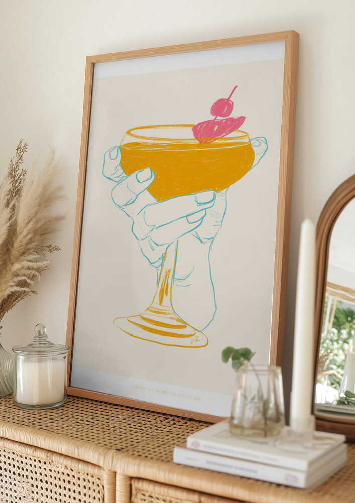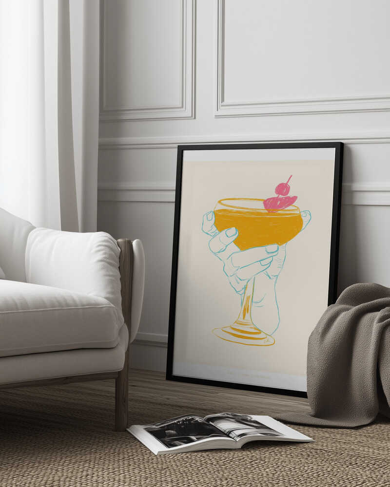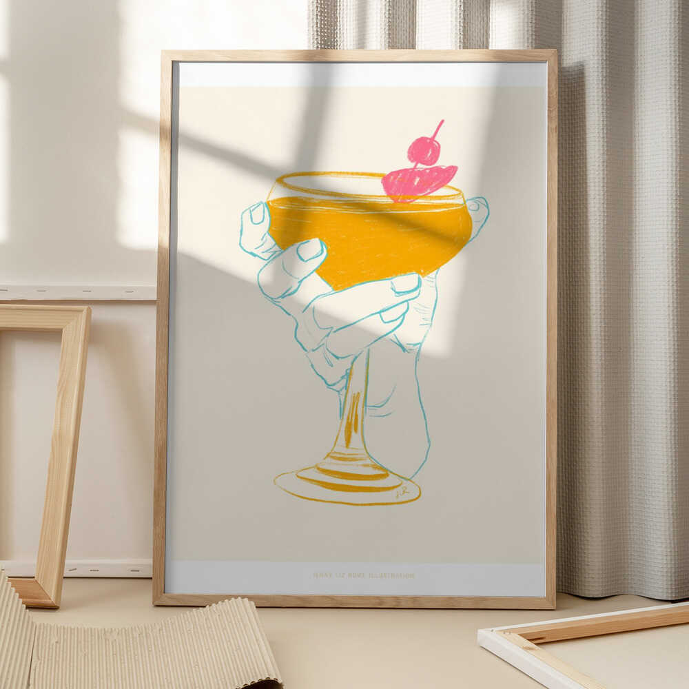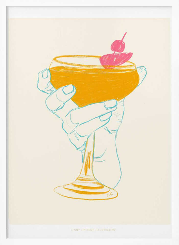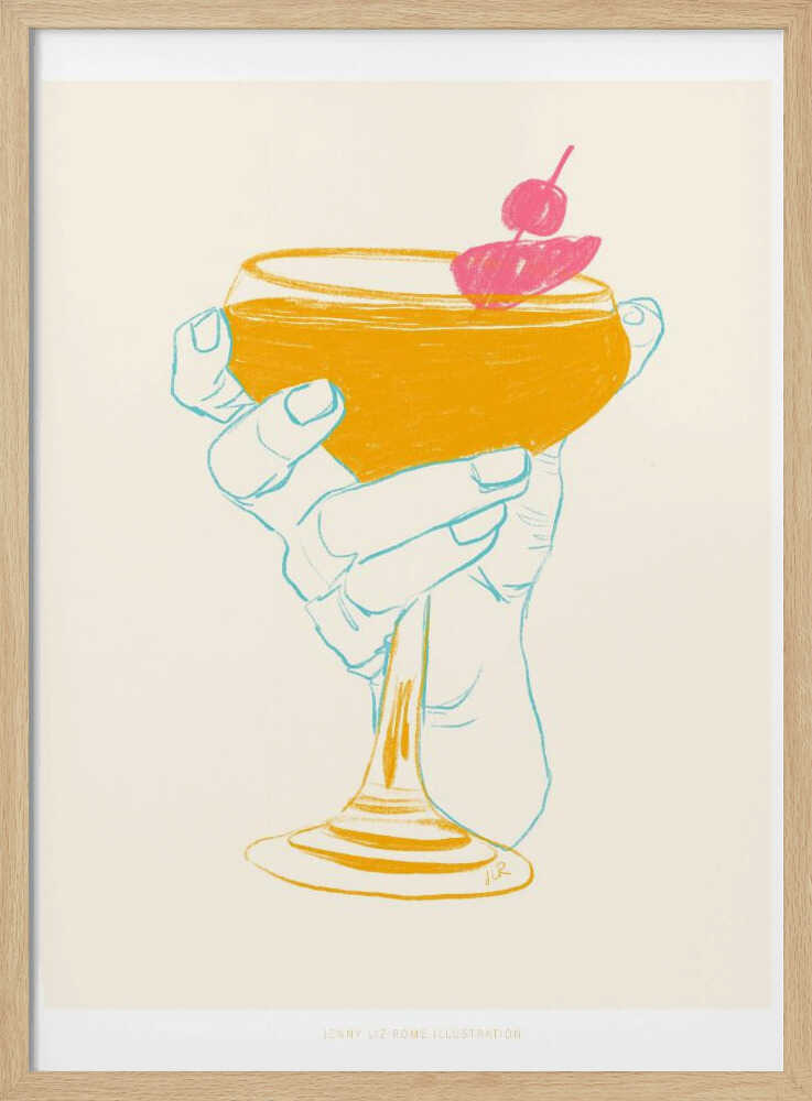 Tabloul înramat „Jlr Cocktail1”, creat de Jenny Liz Rome, este disponibil în mai multe dimensiuni, cu ramă neagră, albă sau din lemn natur. Se potrivește perfect în orice încăpere.
