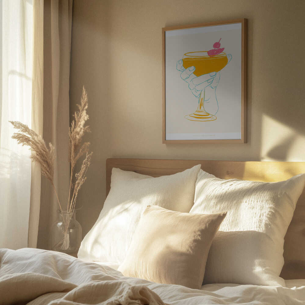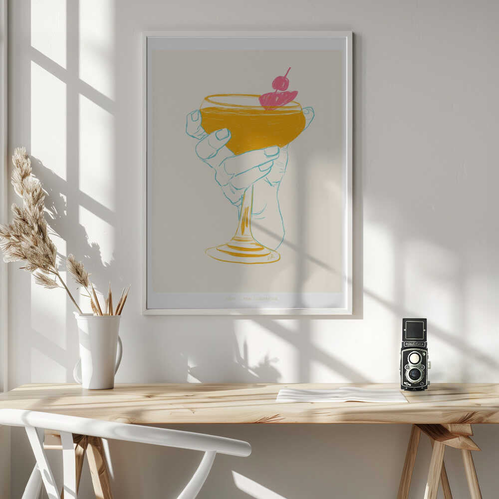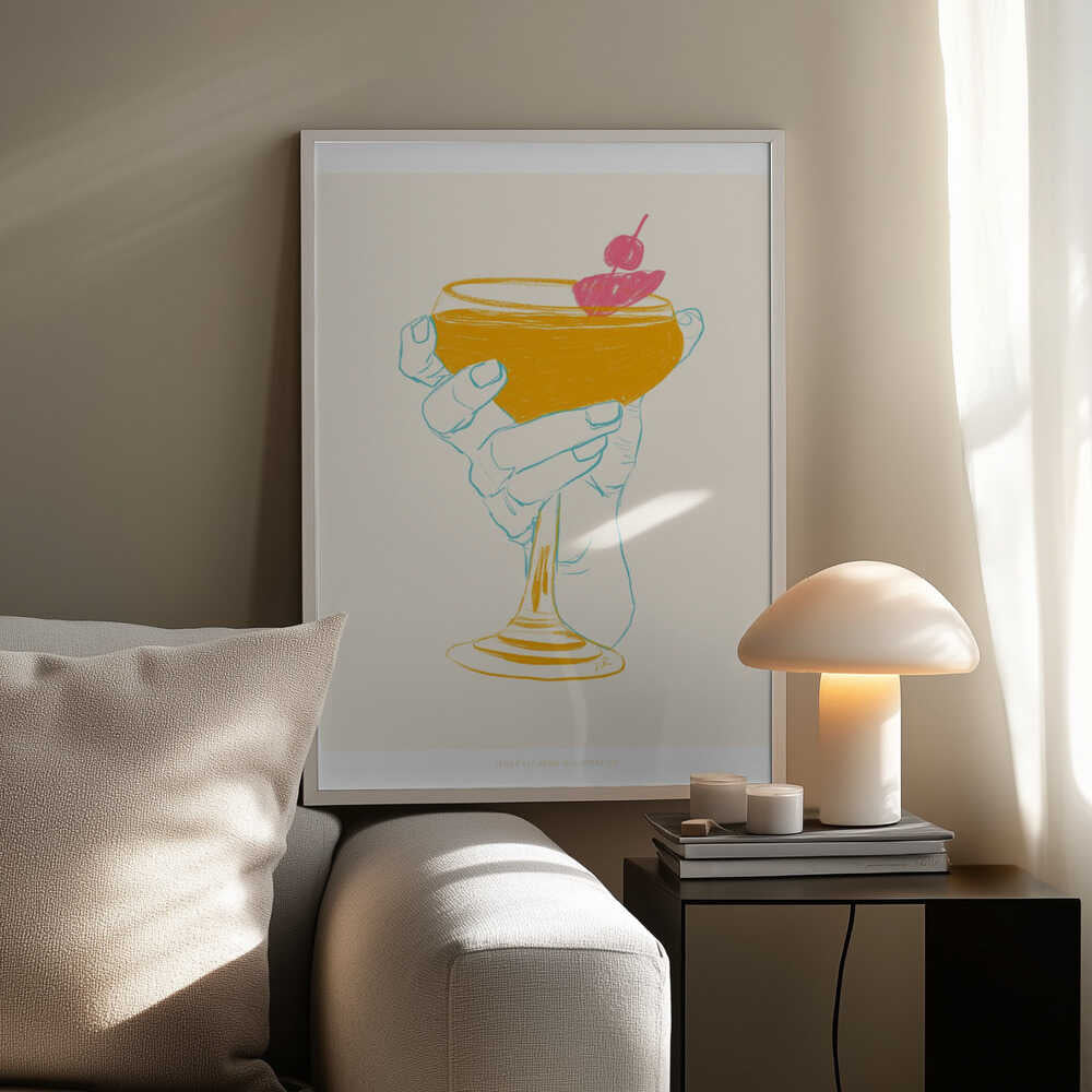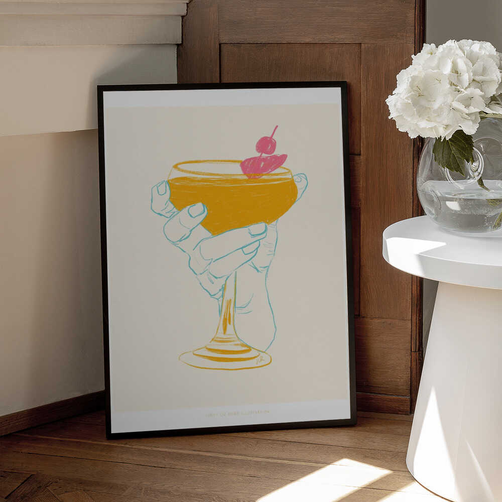 Tabloul înramat „Jlr Cocktail1”, creat de Jenny Liz Rome, este disponibil în mai multe dimensiuni, cu ramă neagră, albă sau din lemn natur. Se potrivește perfect în orice încăpere.