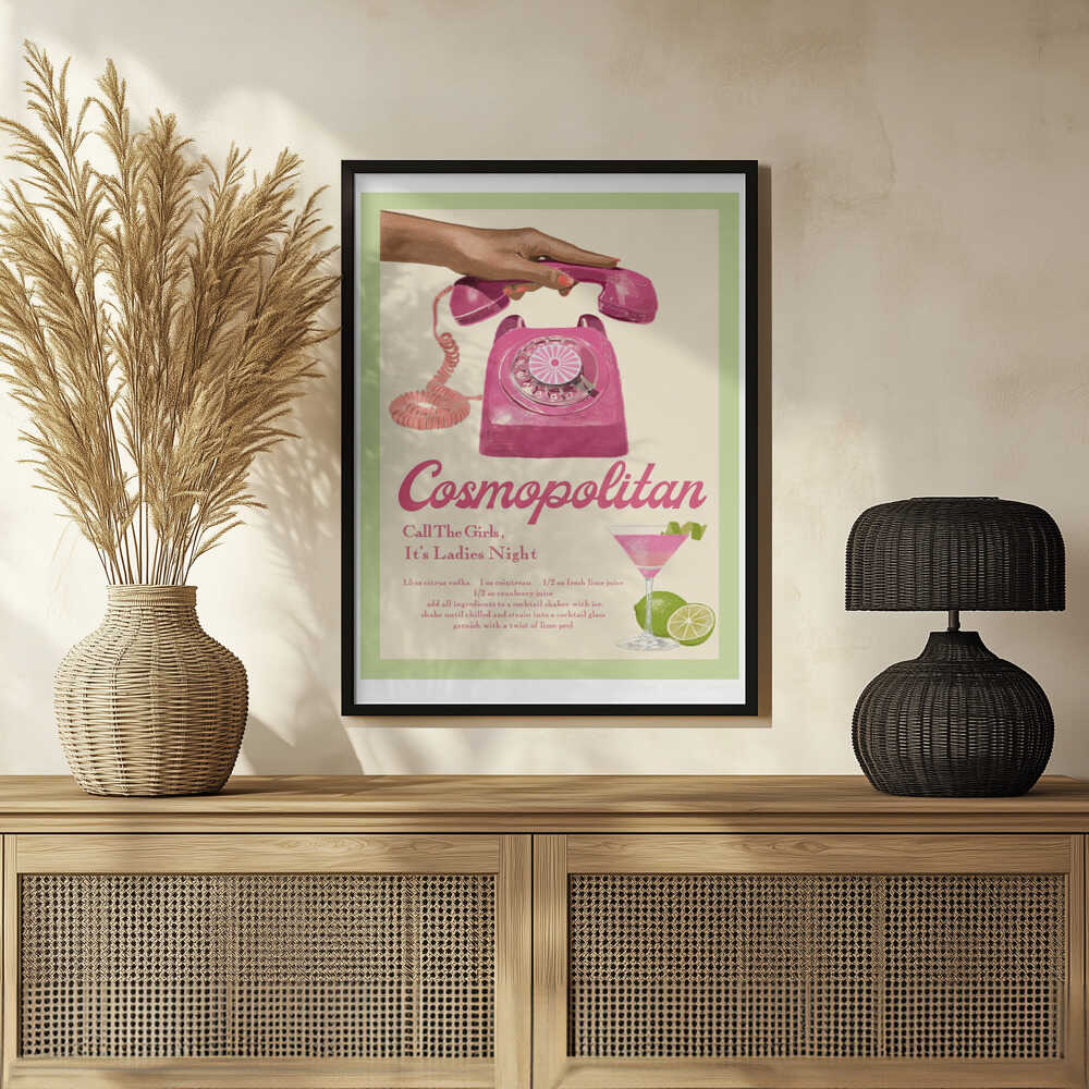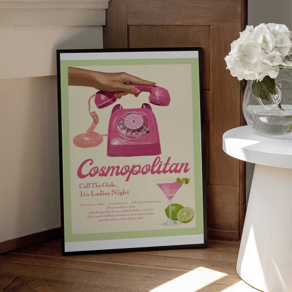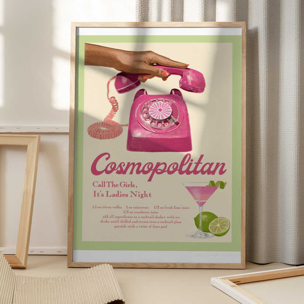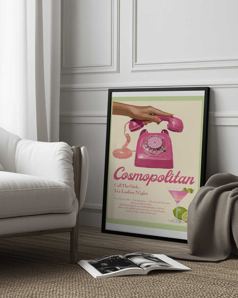 Tabloul înramat „Jlr Cocktails Cosmopolitan”, creat de Jenny Liz Rome, este disponibil în mai multe dimensiuni, cu ramă neagră, albă sau din lemn natur. Se potrivește perfect în orice încăpere.