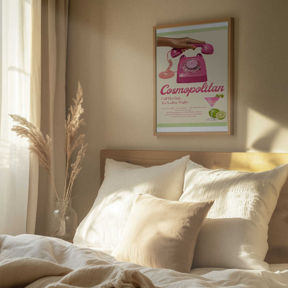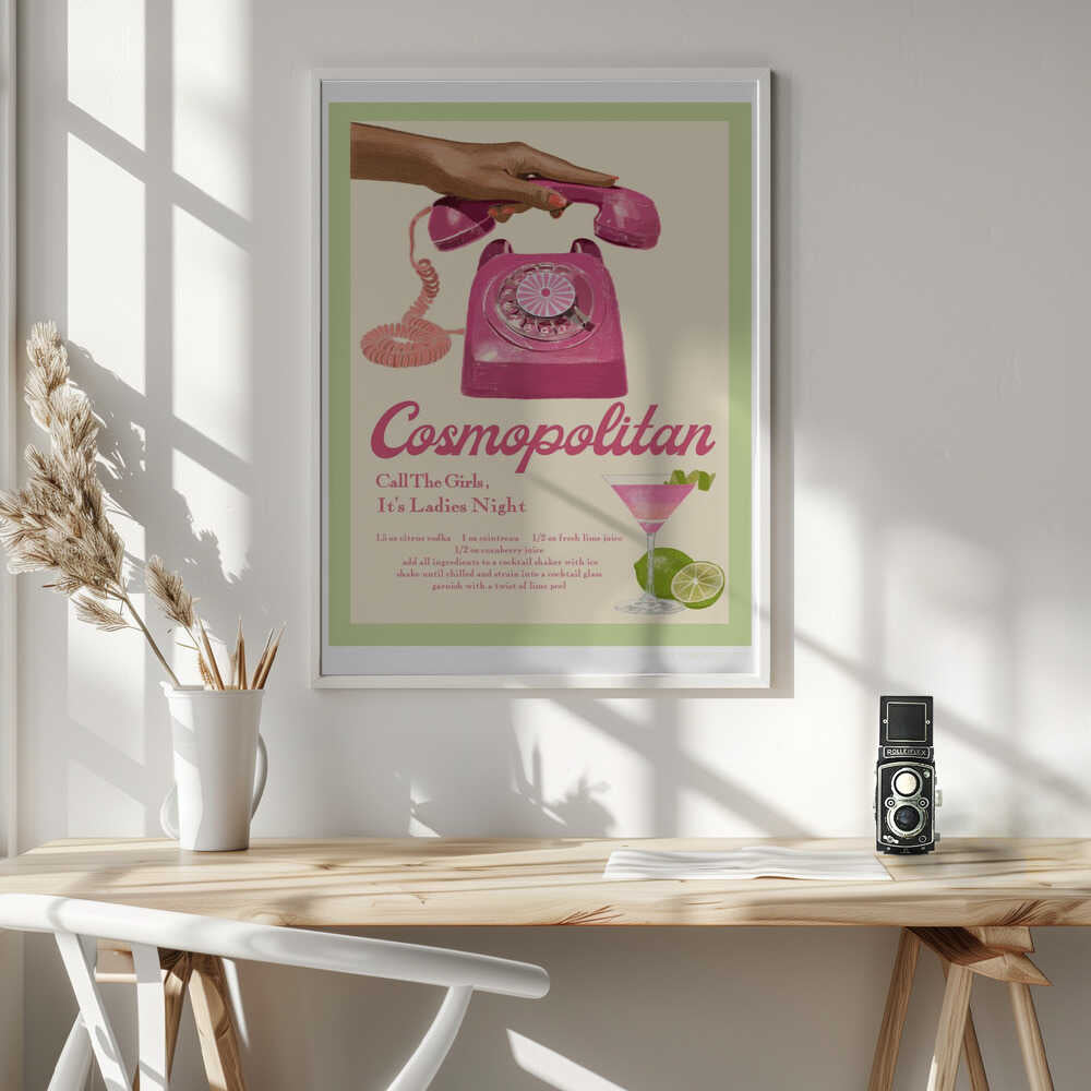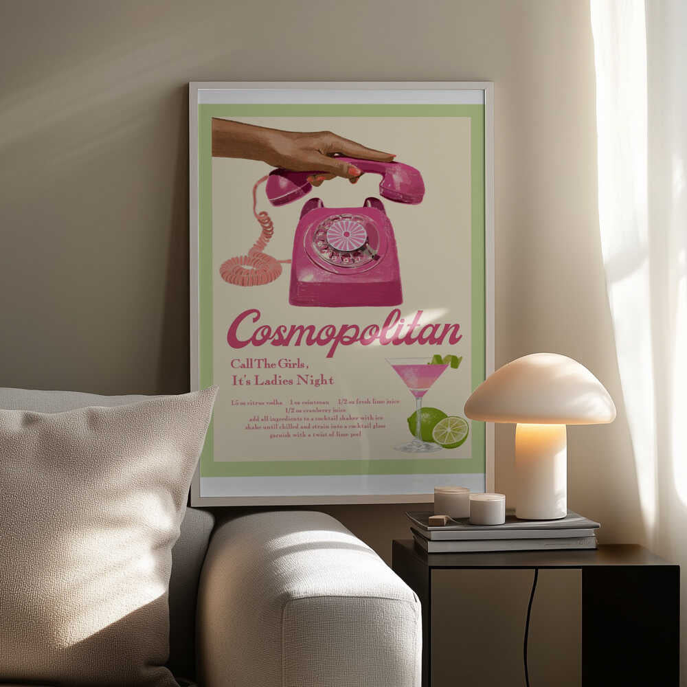 Tabloul înramat „Jlr Cocktails Cosmopolitan”, creat de Jenny Liz Rome, este disponibil în mai multe dimensiuni, cu ramă neagră, albă sau din lemn natur. Se potrivește perfect în orice încăpere.