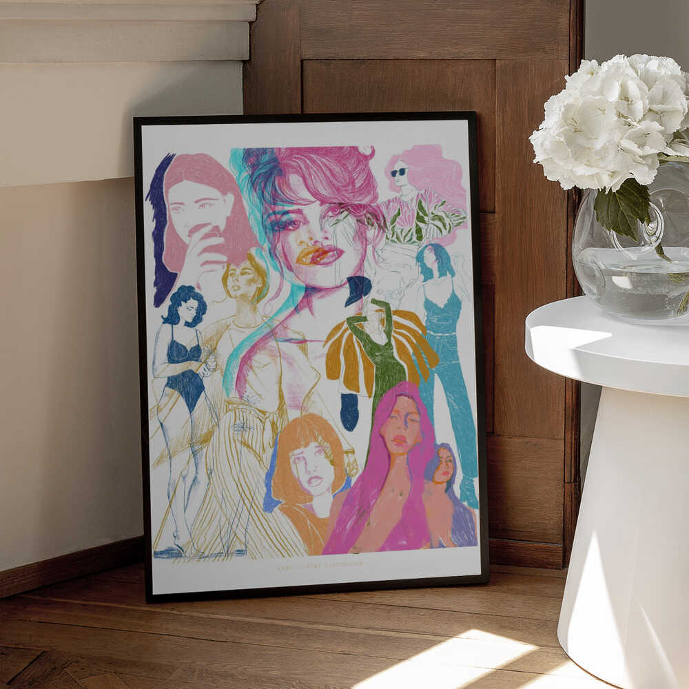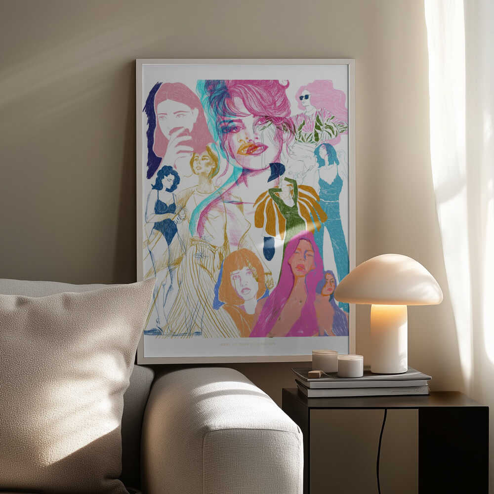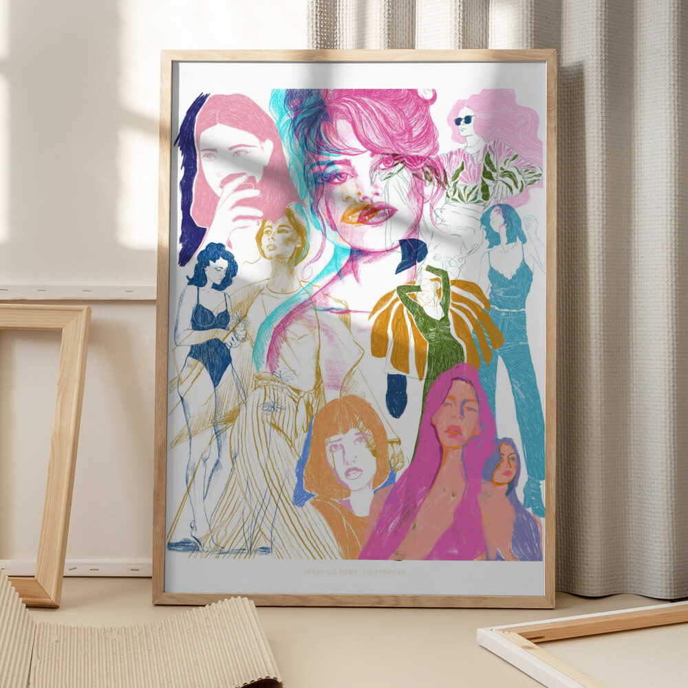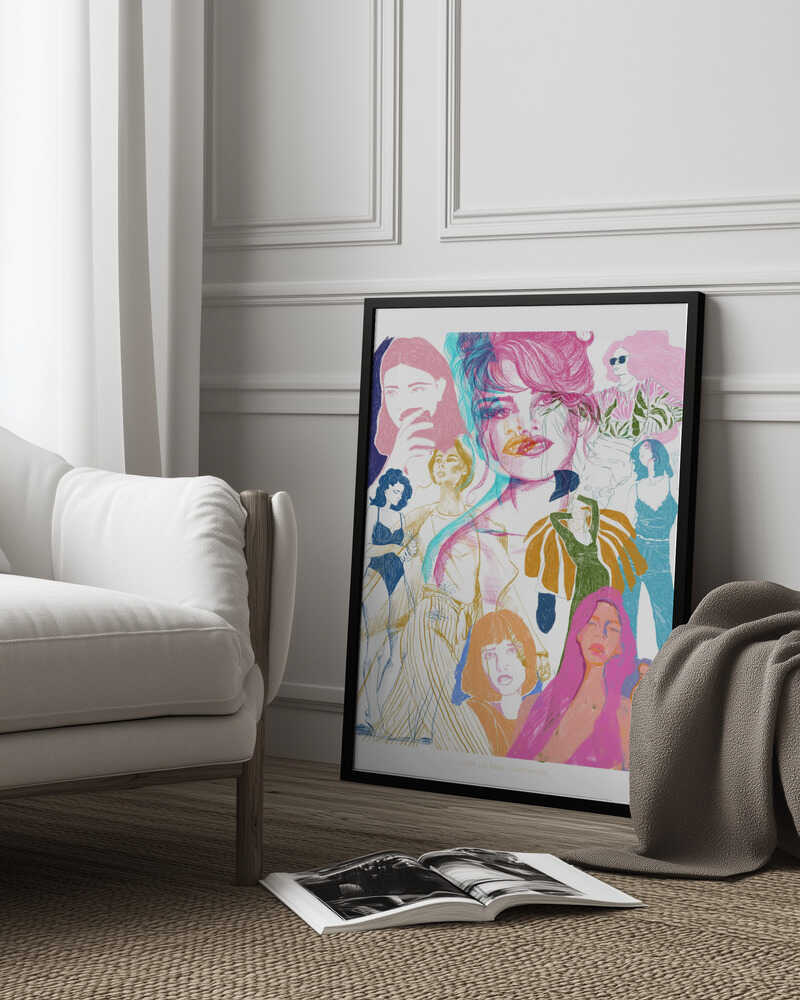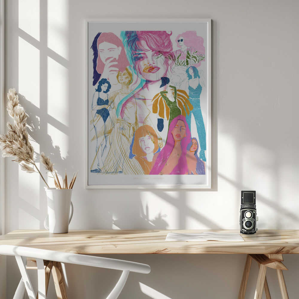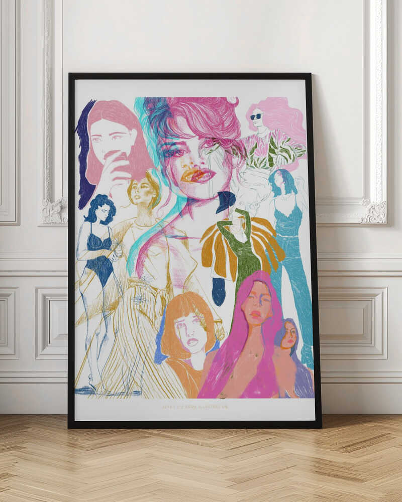 Tabloul înramat „Jlr Collage1 Copy 3”, creat de Jenny Liz Rome, este disponibil în mai multe dimensiuni, cu ramă neagră, albă sau din lemn natur. Se potrivește perfect în orice încăpere.