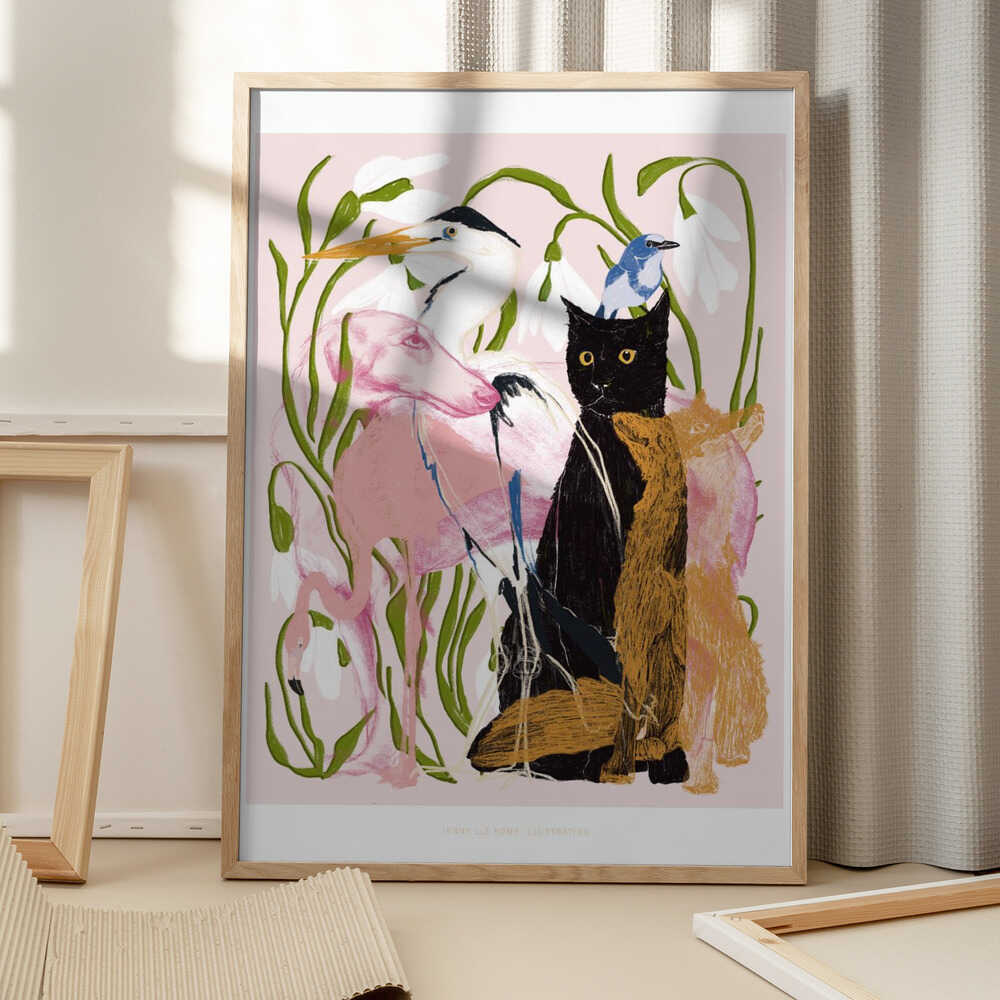 Tabloul înramat „Jlr Collage2”, creat de Jenny Liz Rome, este disponibil în mai multe dimensiuni, cu ramă neagră, albă sau din lemn natur. Se potrivește perfect în orice încăpere.