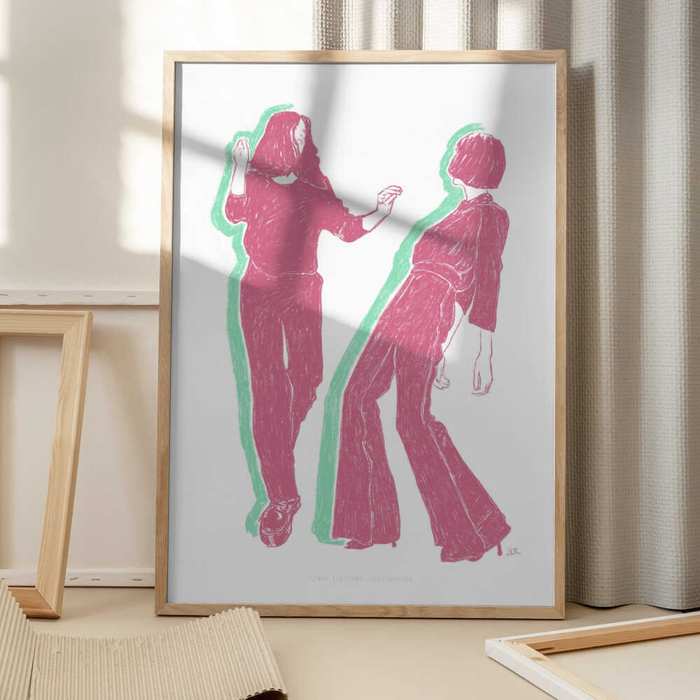 Tabloul înramat „Jlr Dancing3 Copy”, creat de Jenny Liz Rome, este disponibil în mai multe dimensiuni, cu ramă neagră, albă sau din lemn natur. Se potrivește perfect în orice încăpere.