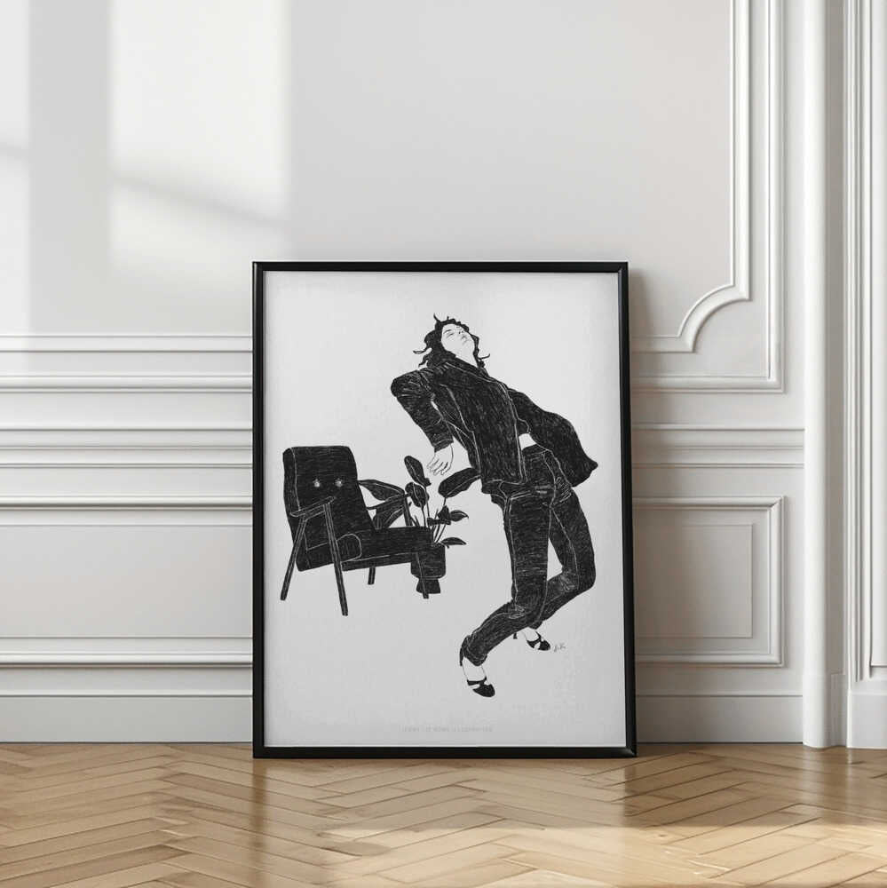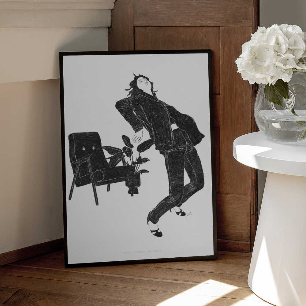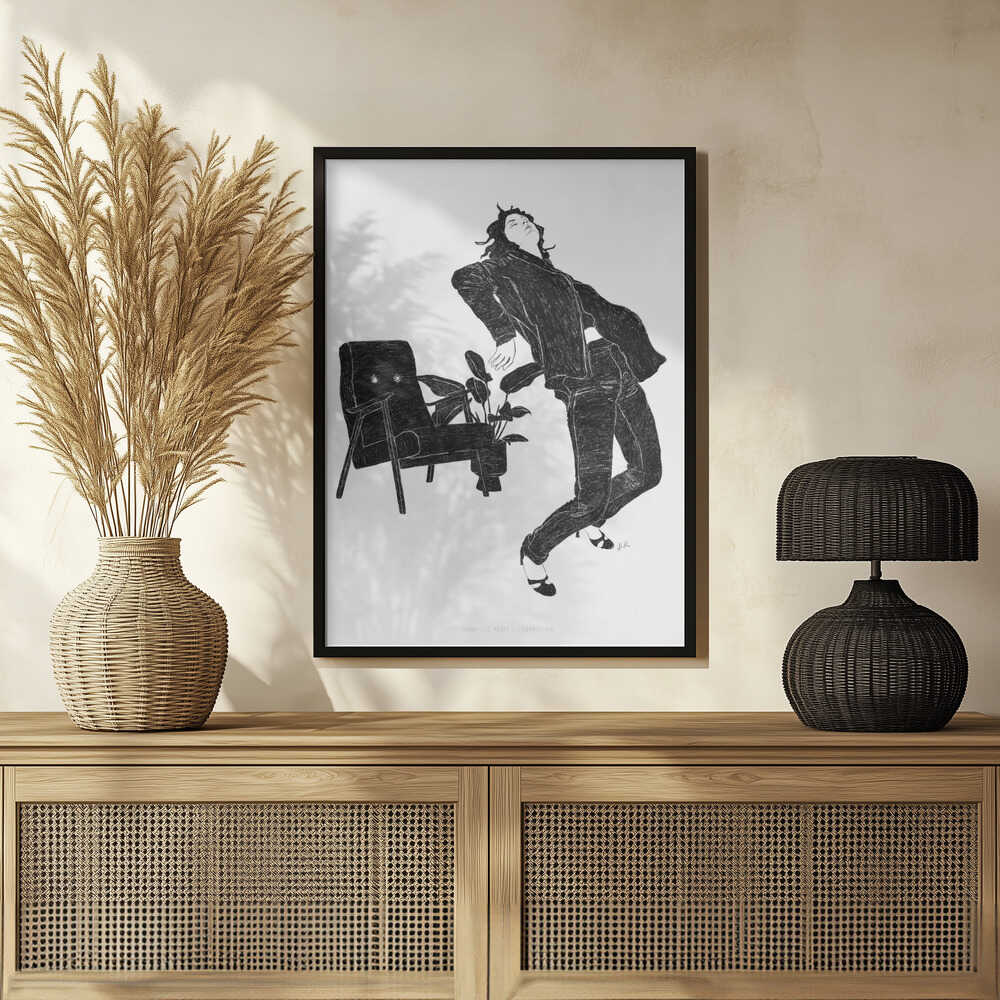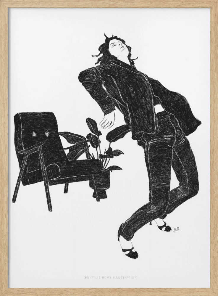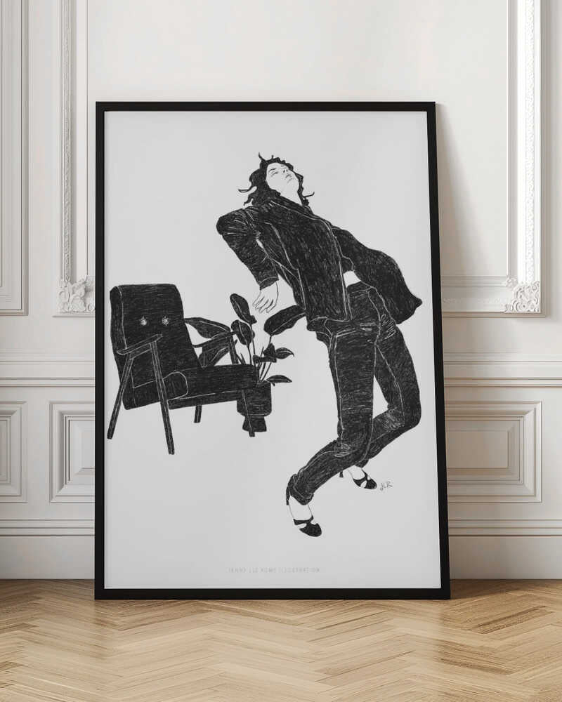 Tabloul înramat „Jlr Dancingathome6 Blackandwhite Copy”, creat de Jenny Liz Rome, este disponibil în mai multe dimensiuni, cu ramă neagră, albă sau din lemn natur. Se potrivește perfect în orice încăpere.