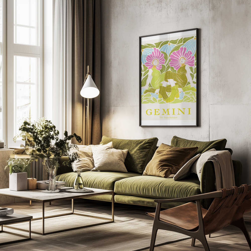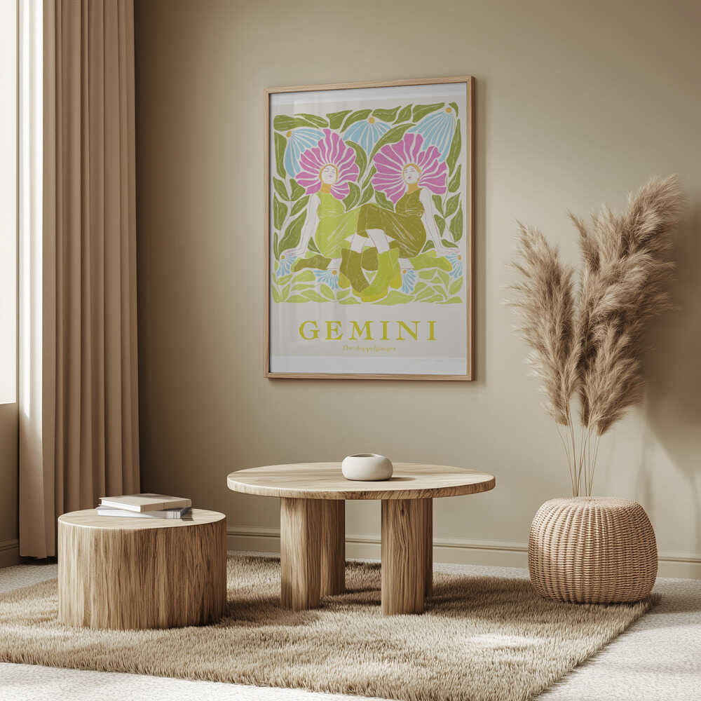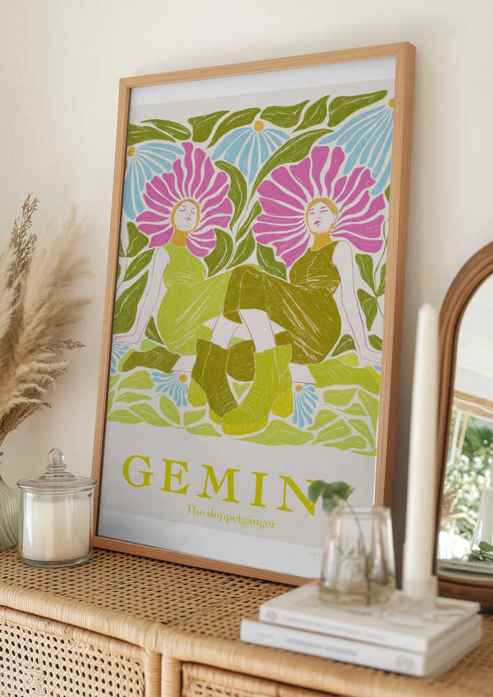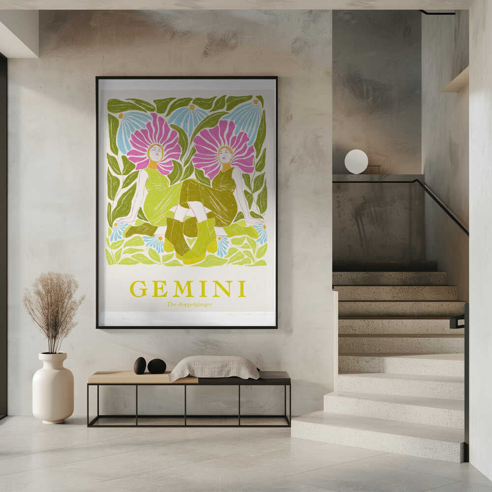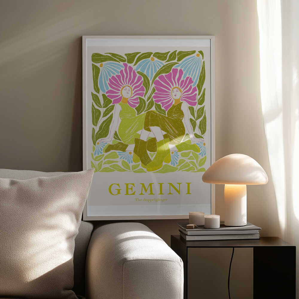 Tabloul înramat „Jlr Gemini”, creat de Jenny Liz Rome, este disponibil în mai multe dimensiuni, cu ramă neagră, albă sau din lemn natur. Se potrivește perfect în orice încăpere.