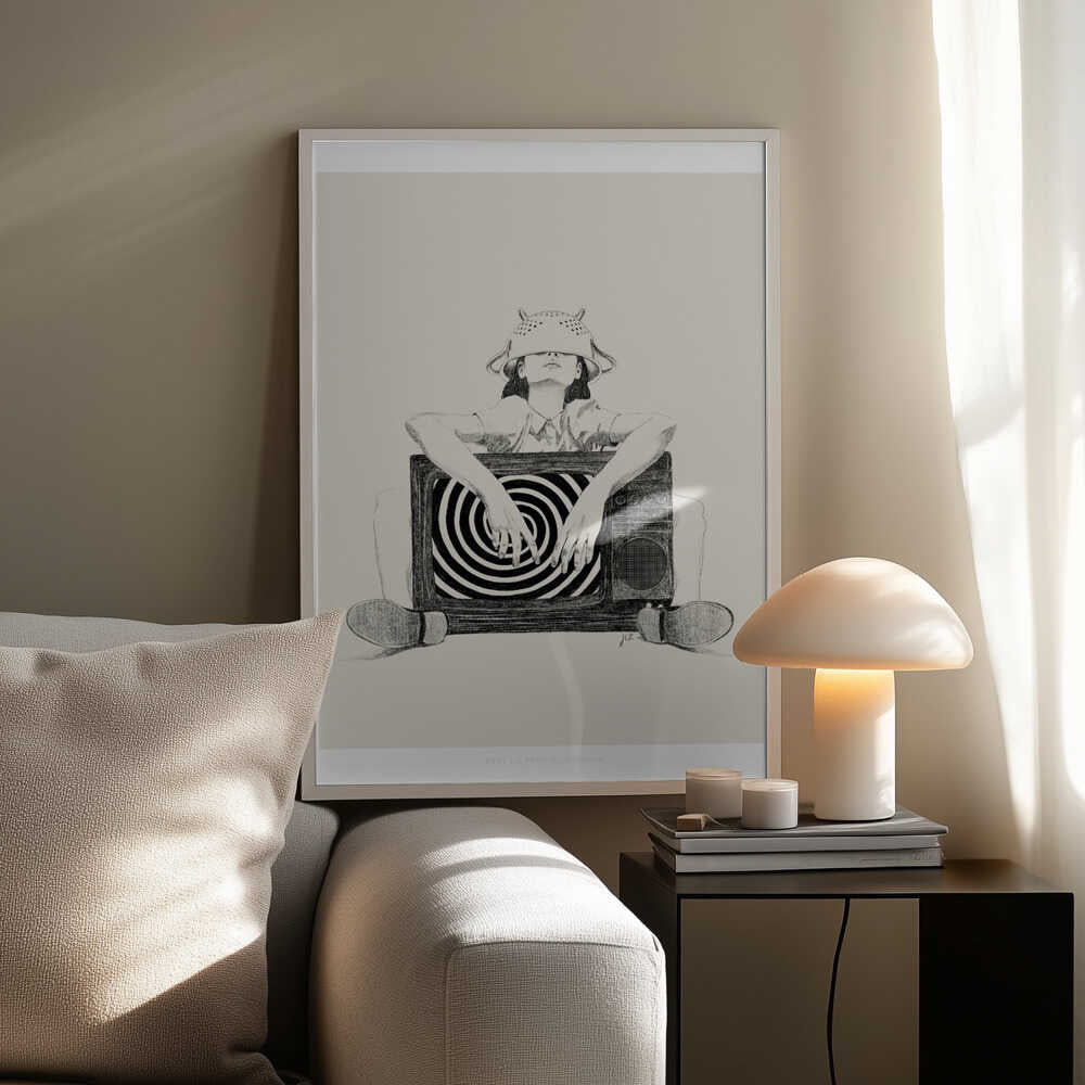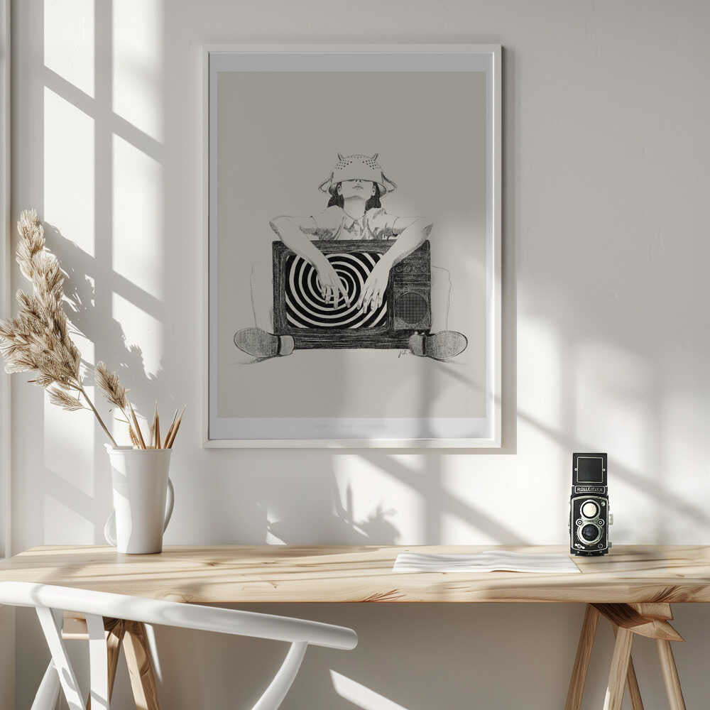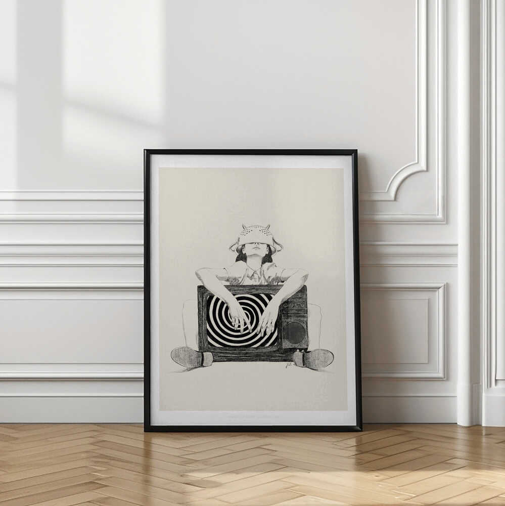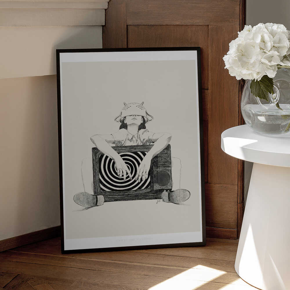 Tabloul înramat „Jlr Hypnoyouth Copy”, creat de Jenny Liz Rome, este disponibil în mai multe dimensiuni, cu ramă neagră, albă sau din lemn natur. Se potrivește perfect în orice încăpere.