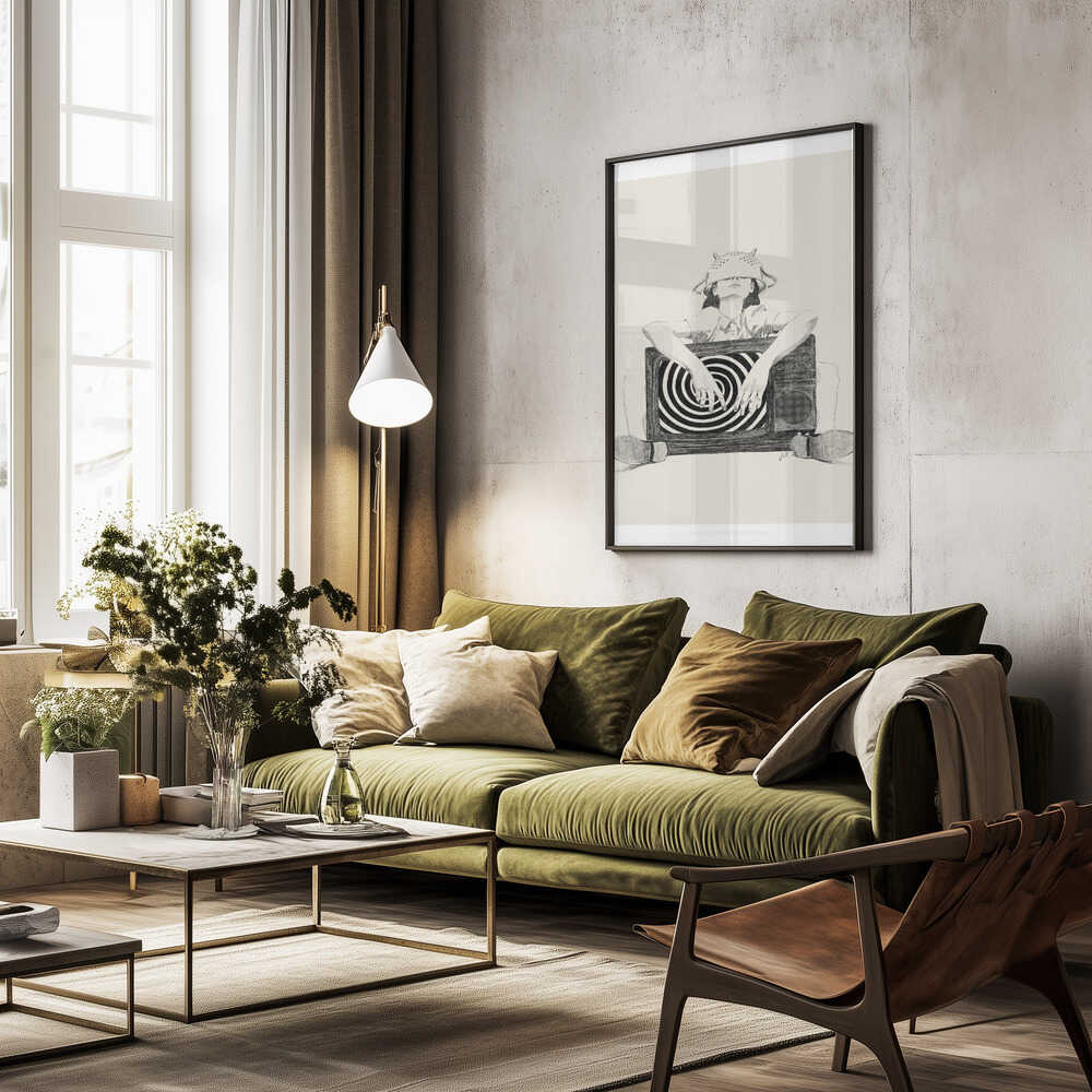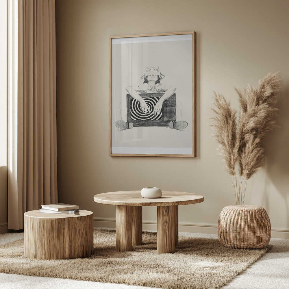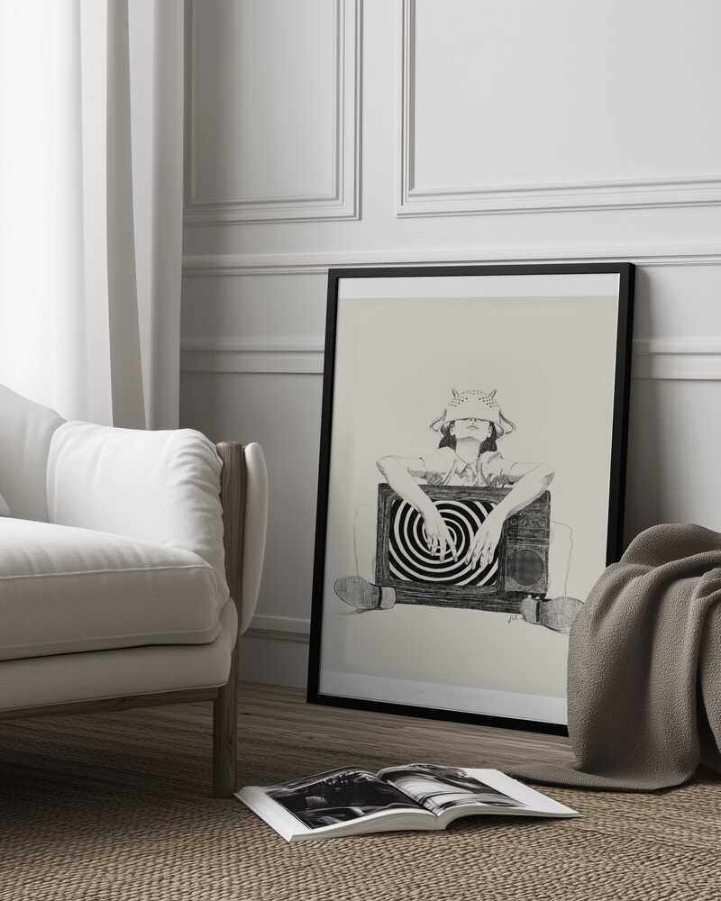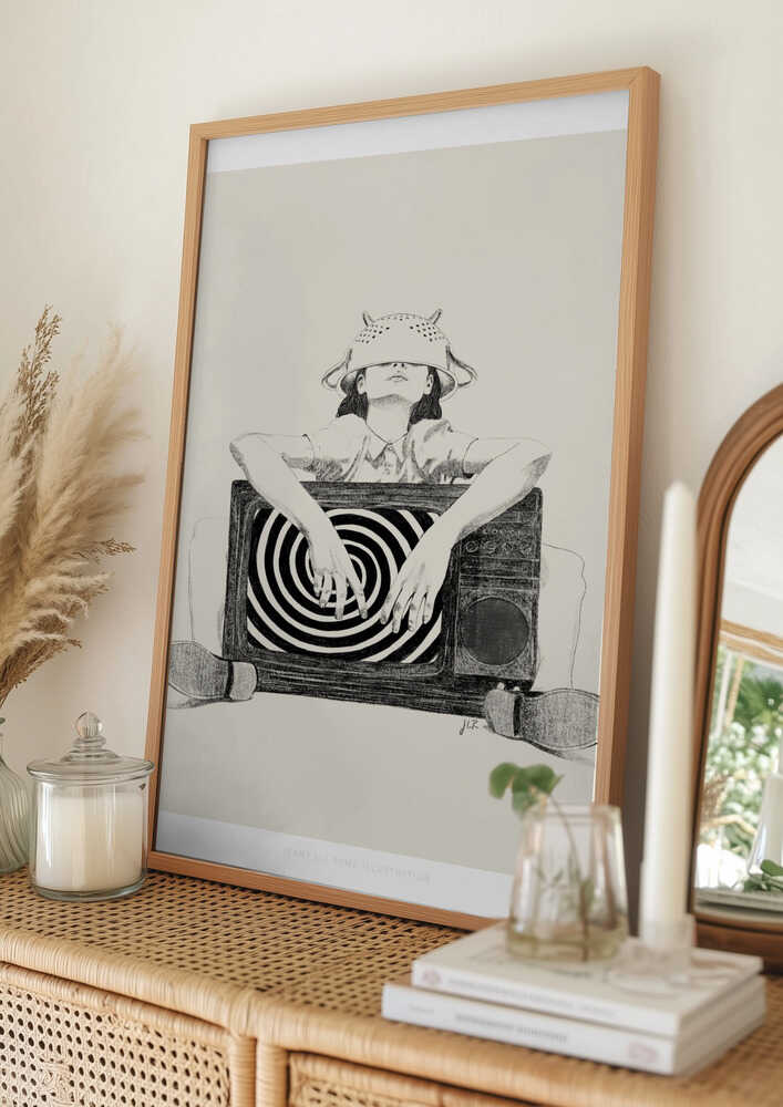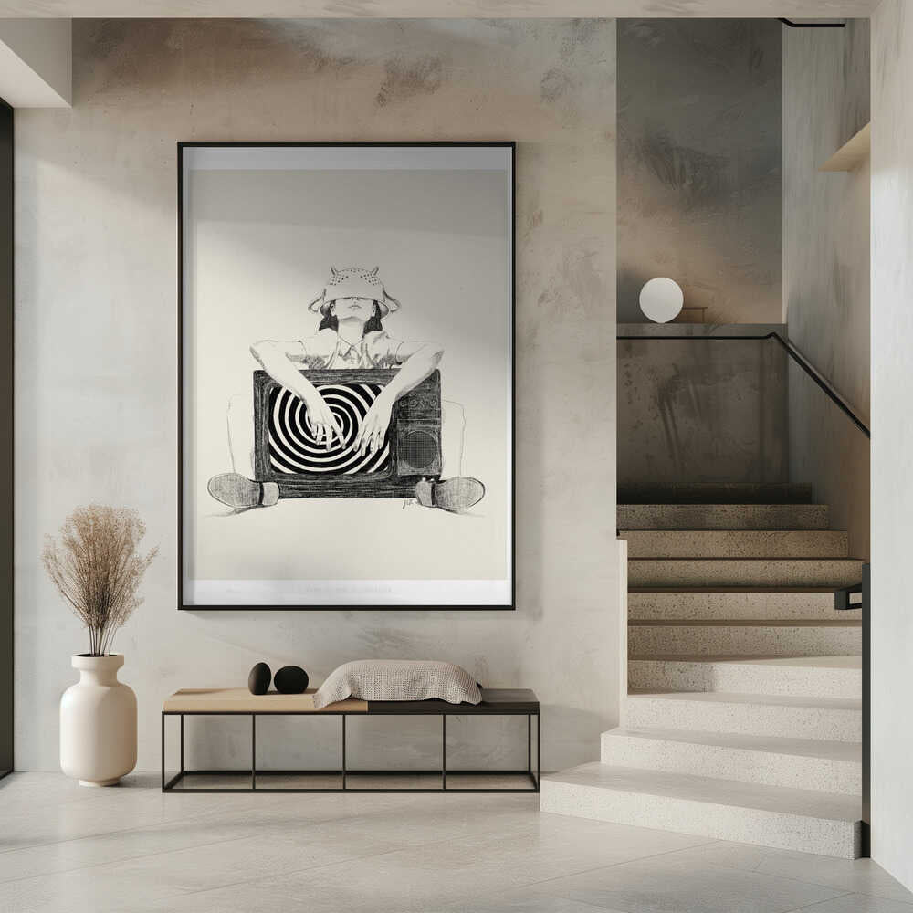 Tabloul înramat „Jlr Hypnoyouth Copy”, creat de Jenny Liz Rome, este disponibil în mai multe dimensiuni, cu ramă neagră, albă sau din lemn natur. Se potrivește perfect în orice încăpere.