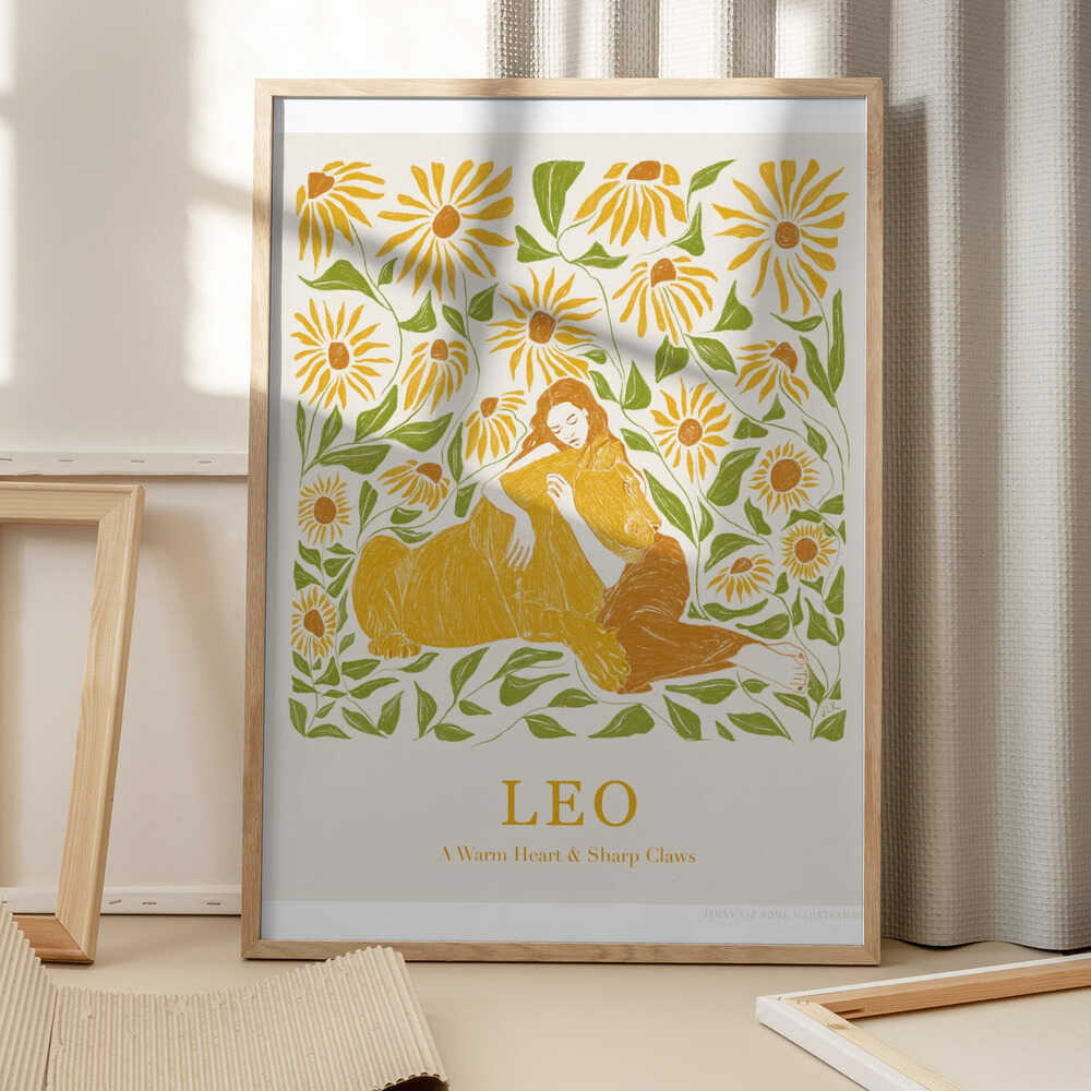 Tabloul înramat „Jlr Leo Copy”, creat de Jenny Liz Rome, este disponibil în mai multe dimensiuni, cu ramă neagră, albă sau din lemn natur. Se potrivește perfect în orice încăpere.