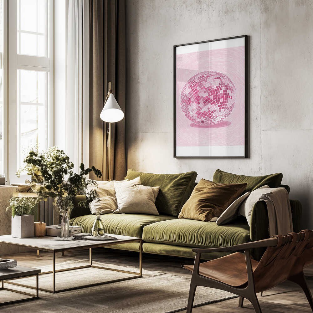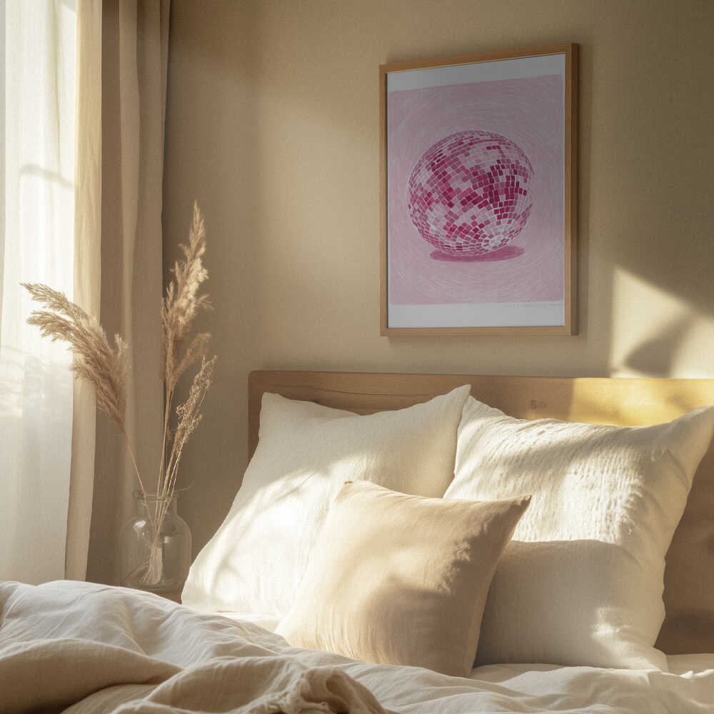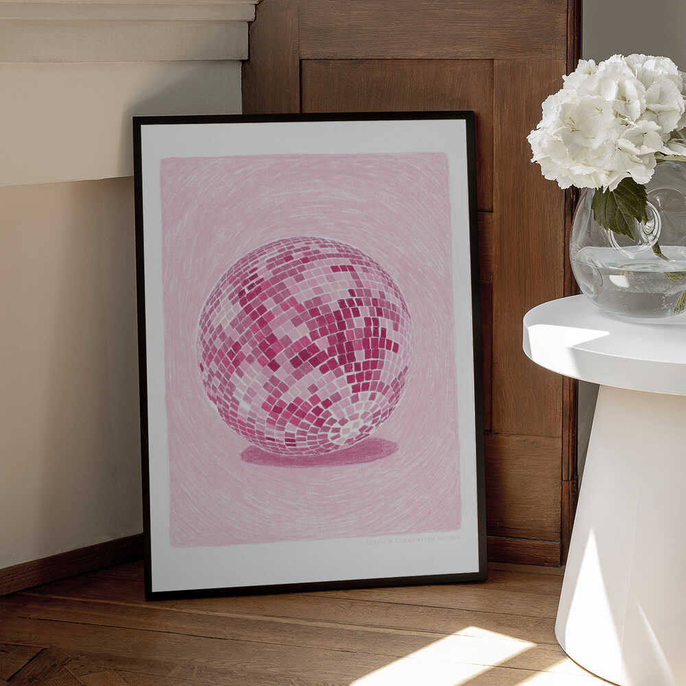 Tabloul înramat „Pandc Discoball Copy 2”, creat de Jenny Liz Rome, este disponibil în mai multe dimensiuni, cu ramă neagră, albă sau din lemn natur. Se potrivește perfect în orice încăpere.