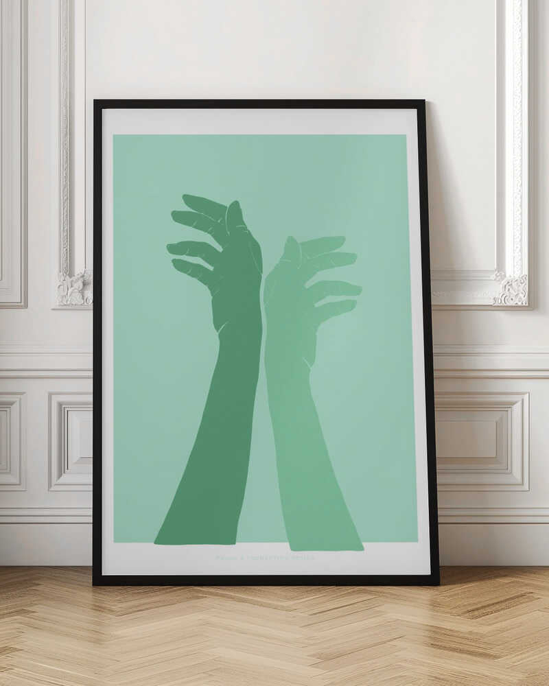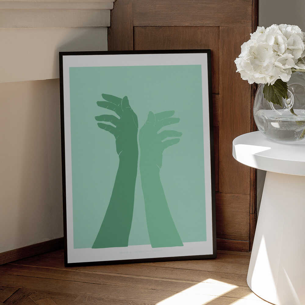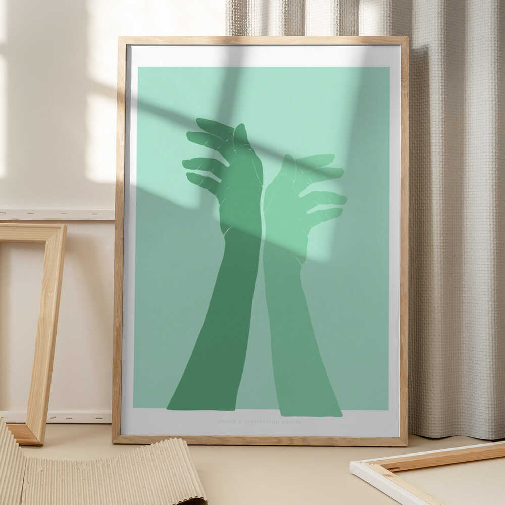 Tabloul înramat „Pandc Handsingreen Copy”, creat de Jenny Liz Rome, este disponibil în mai multe dimensiuni, cu ramă neagră, albă sau din lemn natur. Se potrivește perfect în orice încăpere.