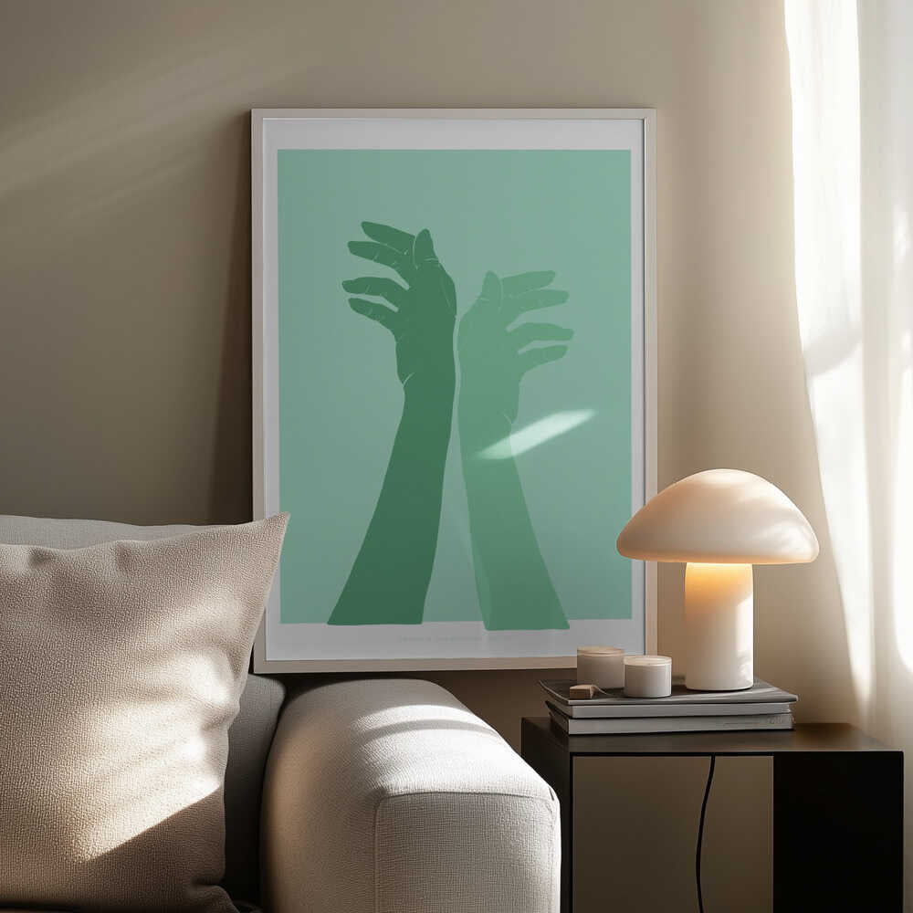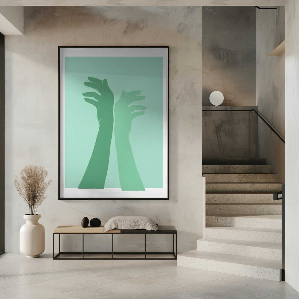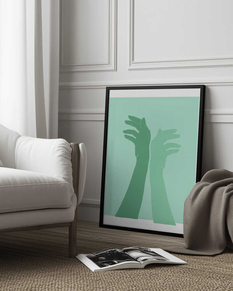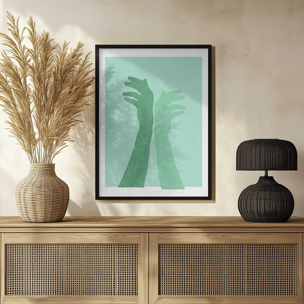 Tabloul înramat „Pandc Handsingreen Copy”, creat de Jenny Liz Rome, este disponibil în mai multe dimensiuni, cu ramă neagră, albă sau din lemn natur. Se potrivește perfect în orice încăpere.