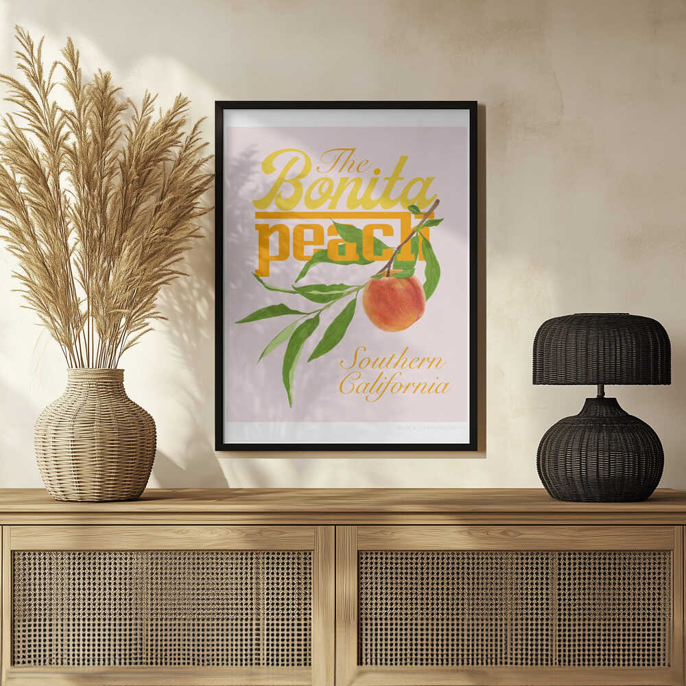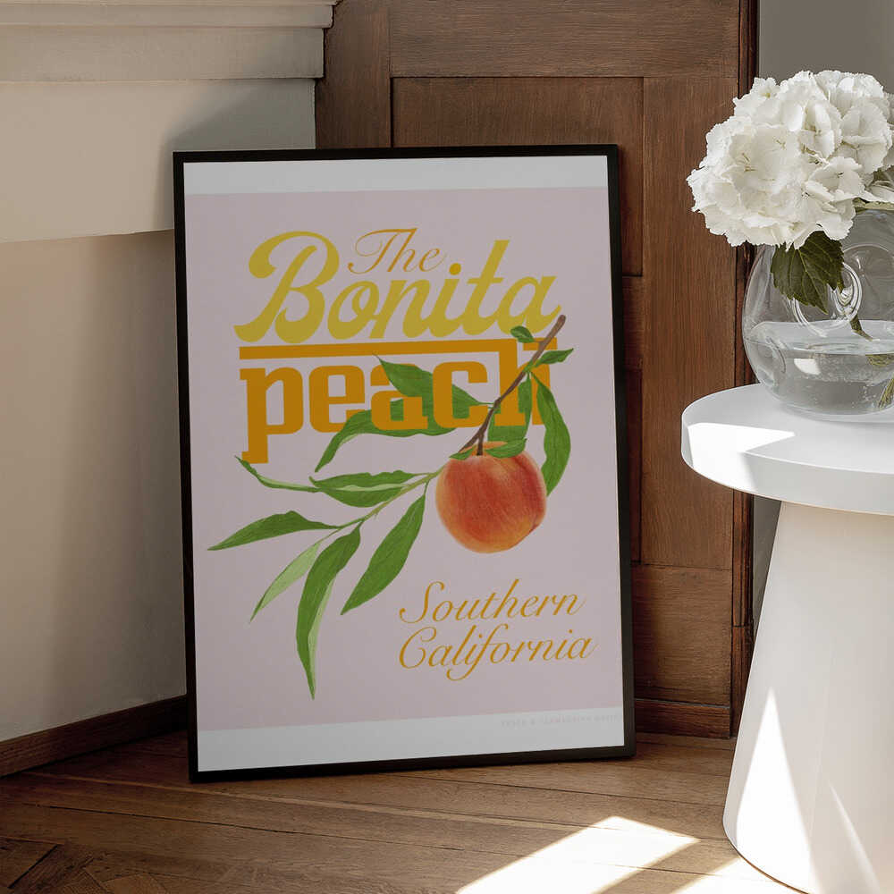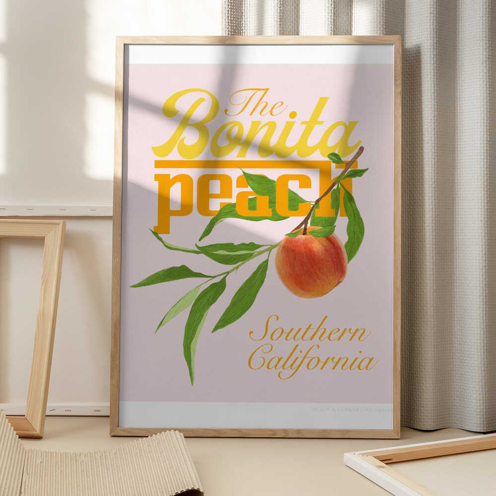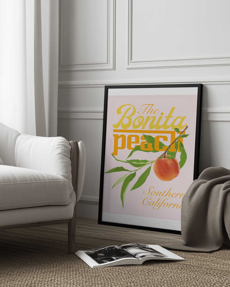 Tabloul înramat „Pandcbonitapeach Copy”, creat de Jenny Liz Rome, este disponibil în mai multe dimensiuni, cu ramă neagră, albă sau din lemn natur. Se potrivește perfect în orice încăpere.