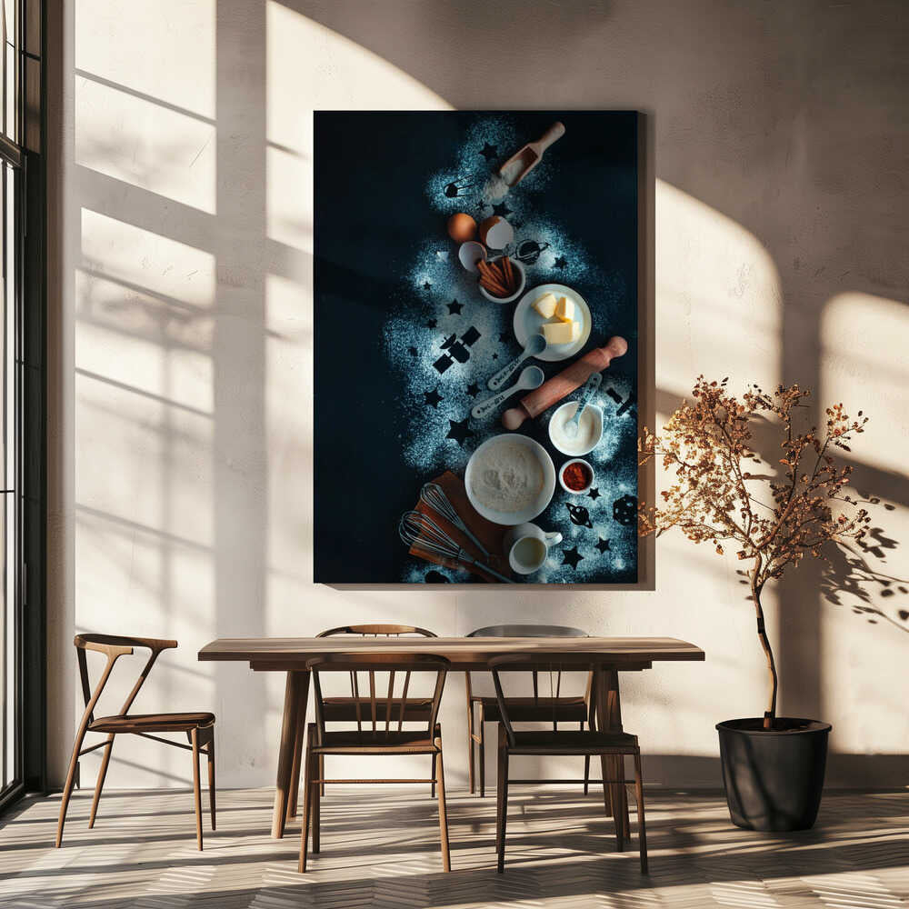 Tablou canvas „Baking for stargazers” creat de Dina Belenko, imprimat pe pânză de calitate, gata de agățat. Disponibil în mai multe dimensiuni. Perfect pentru orice spațiu.