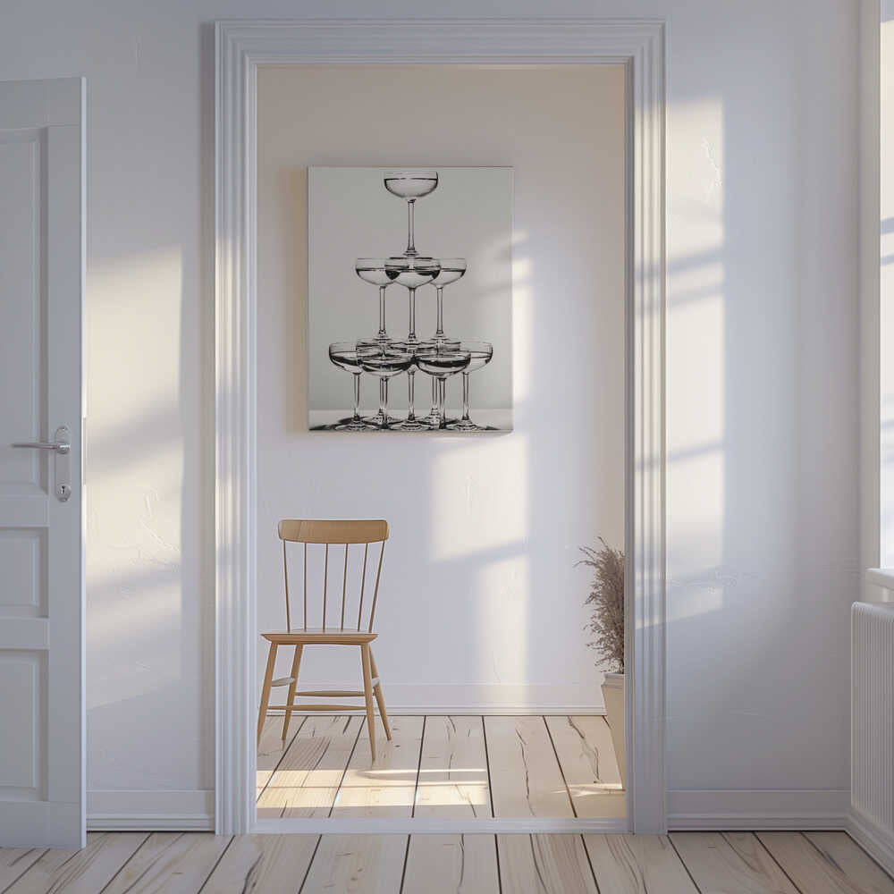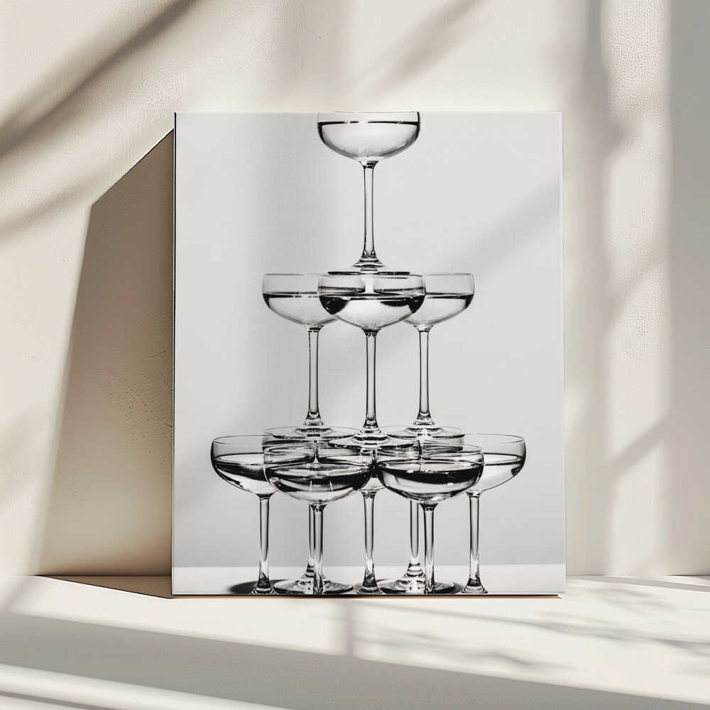 Tablou canvas „Champagne tower_6” creat de Pictufy Studio III, imprimat pe pânză de calitate, gata de agățat. Disponibil în mai multe dimensiuni. Perfect pentru orice spațiu.
