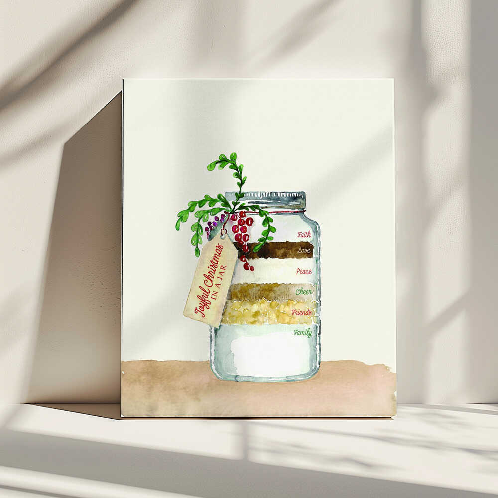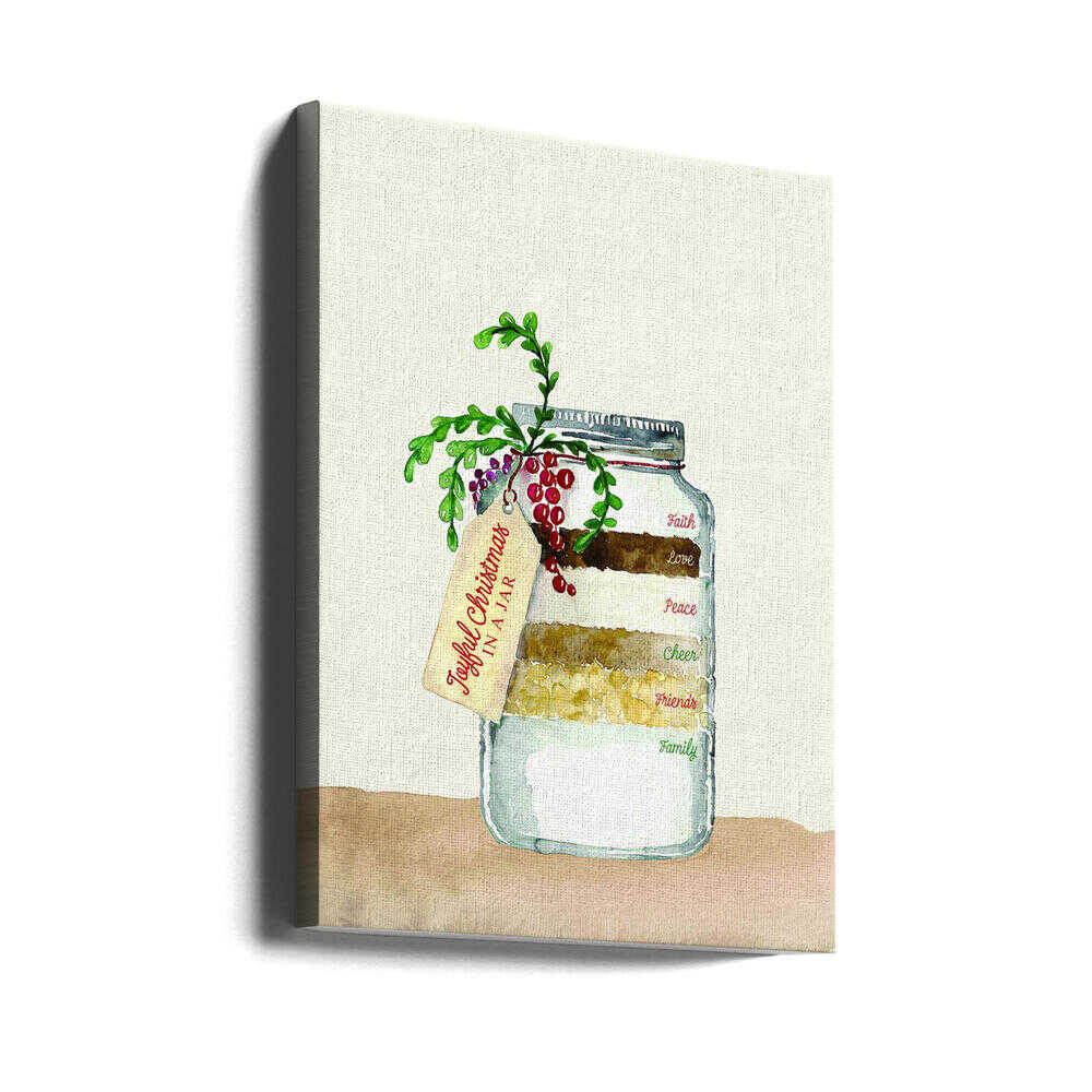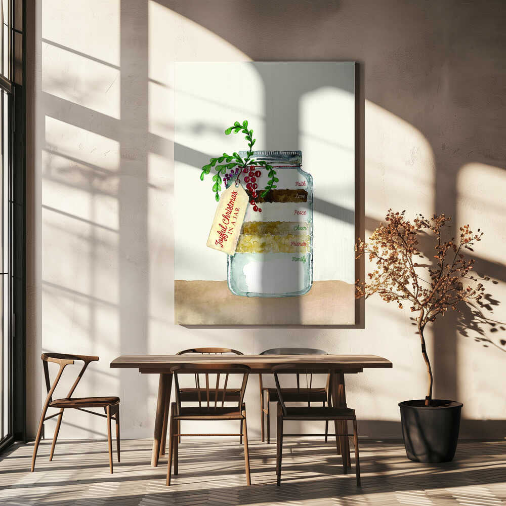 Tablou canvas „Joyful Christmas in a jar” creat de Rosana Laiz Blursbyai, imprimat pe pânză de calitate, gata de agățat. Disponibil în mai multe dimensiuni. Perfect pentru orice spațiu.