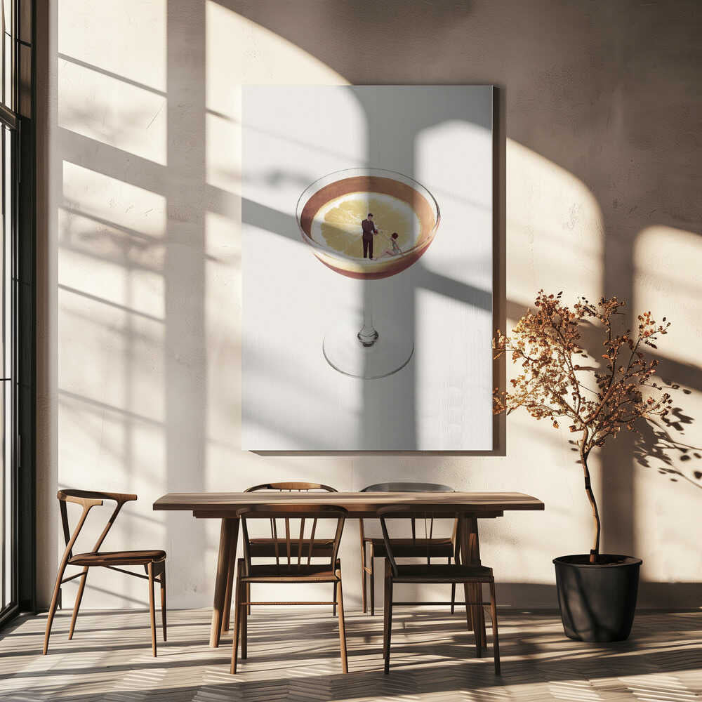 Tablou canvas „My drink needs a drink” creat de Maarten Léon, imprimat pe pânză de calitate, gata de agățat. Disponibil în mai multe dimensiuni. Perfect pentru orice spațiu.