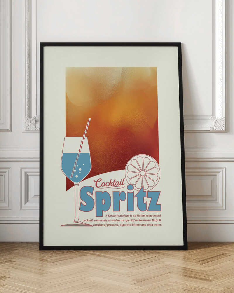 Tabloul înramat „Aperol Spritz print”, creat de Dion Gem, este disponibil în mai multe dimensiuni, cu ramă neagră, albă sau din lemn natur. Se potrivește perfect în orice încăpere.