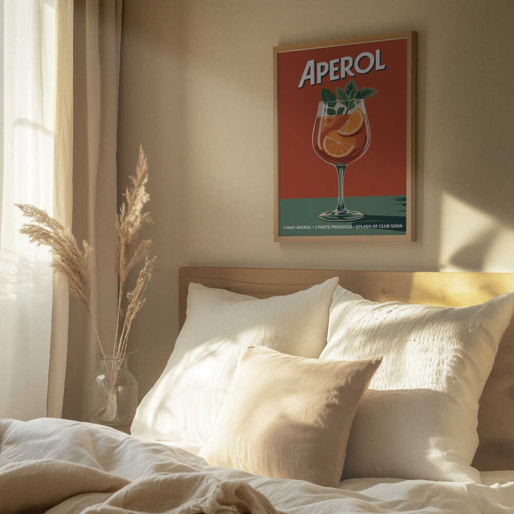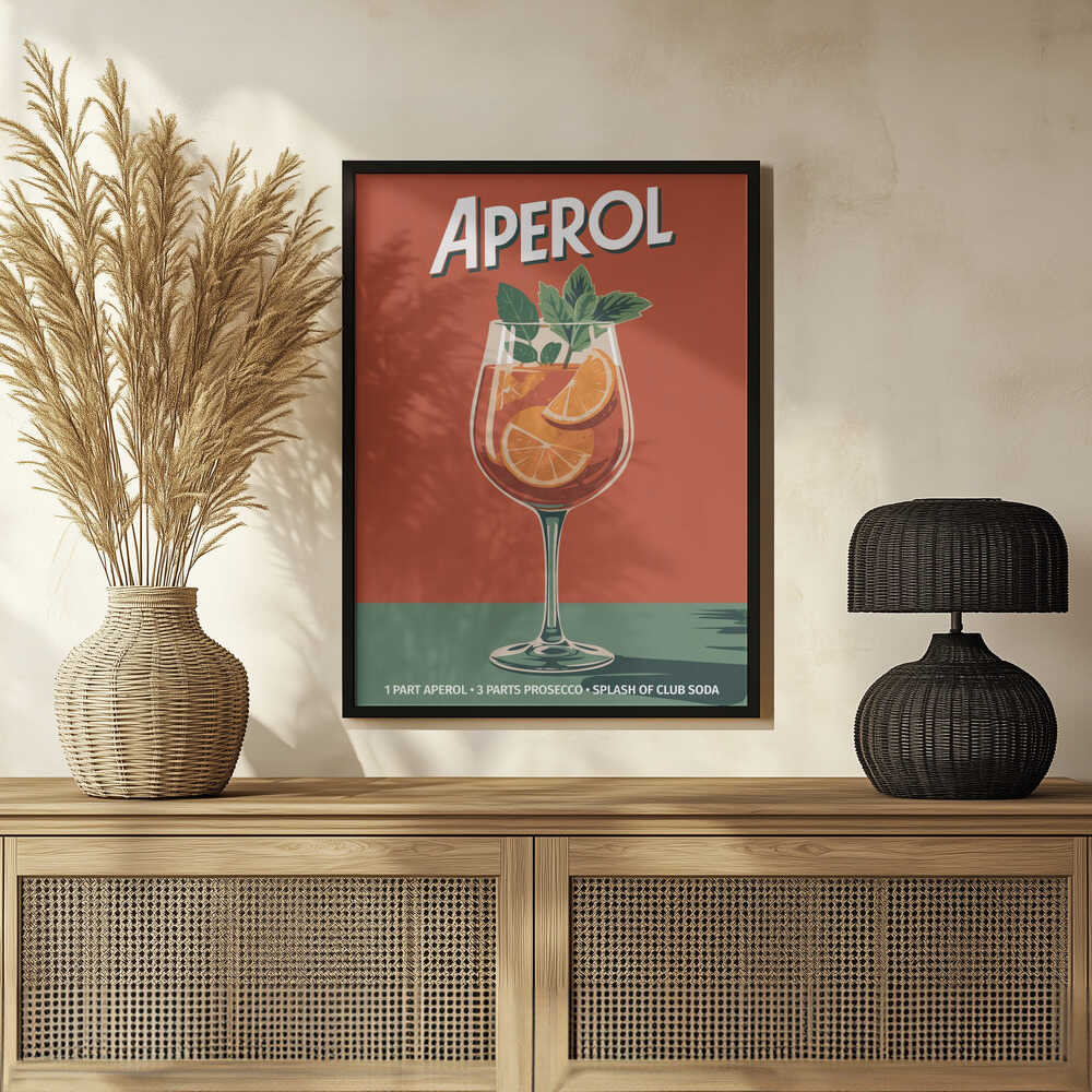 Tabloul înramat „Aperol Vintage No 2”, creat de Andreas Magnusson, este disponibil în mai multe dimensiuni, cu ramă neagră, albă sau din lemn natur. Se potrivește perfect în orice încăpere.