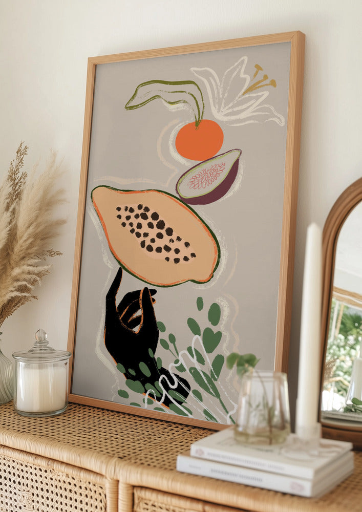 Tablou înramat „Balancing Fruits” de Arty Guava