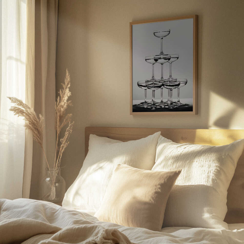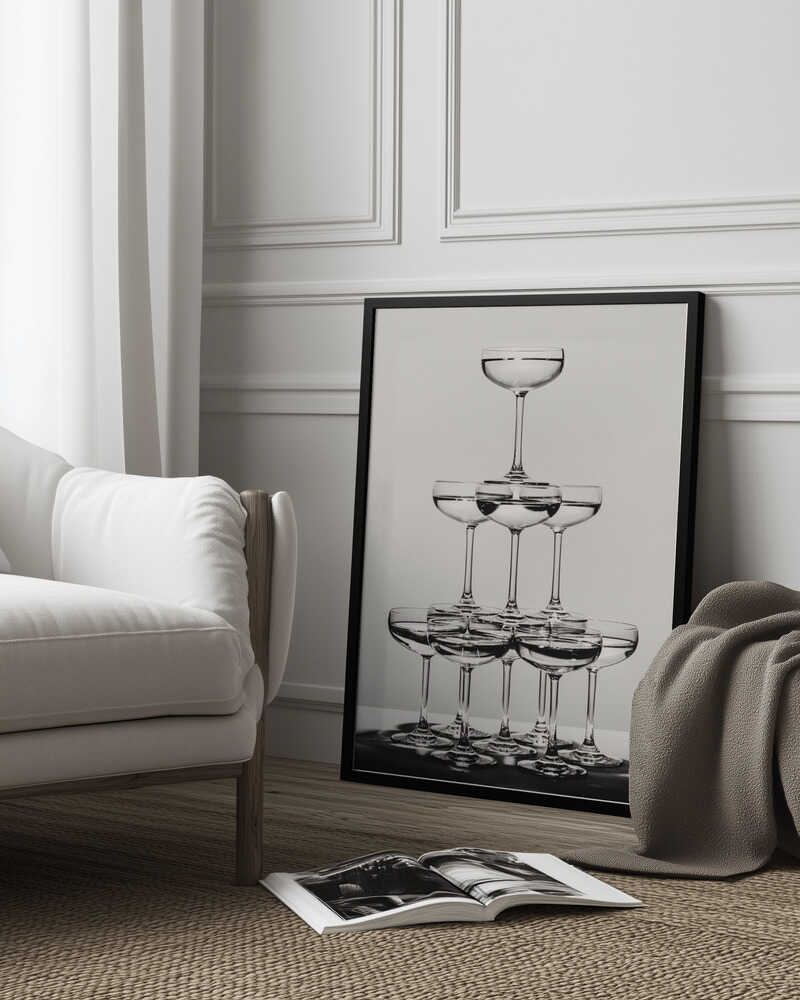 Tabloul înramat „Champagne tower_6”, creat de Pictufy Studio III, este disponibil în mai multe dimensiuni, cu ramă neagră, albă sau din lemn natur. Se potrivește perfect în orice încăpere.