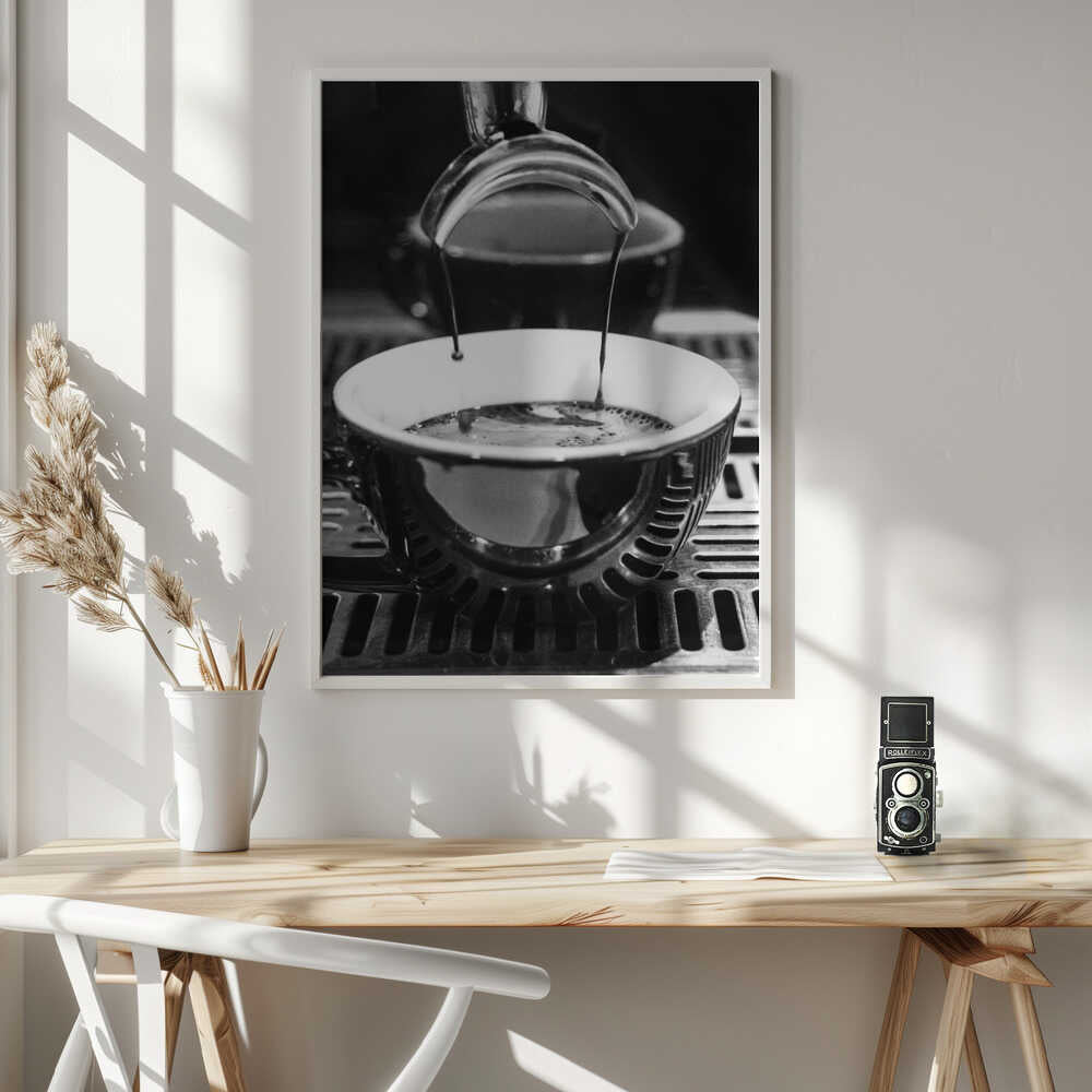 Tabloul înramat „Coffee_004”, creat de Pictufy Studio III, este disponibil în mai multe dimensiuni, cu ramă neagră, albă sau din lemn natur. Se potrivește perfect în orice încăpere.