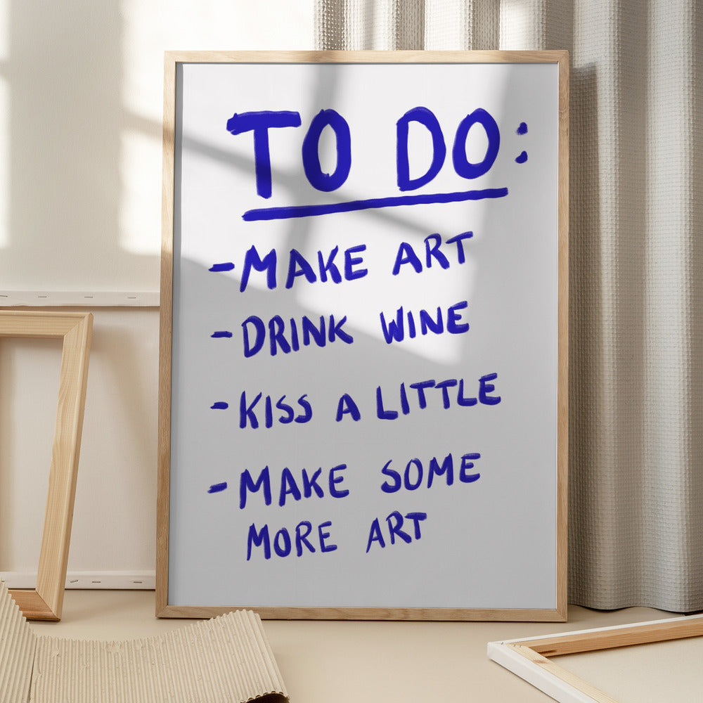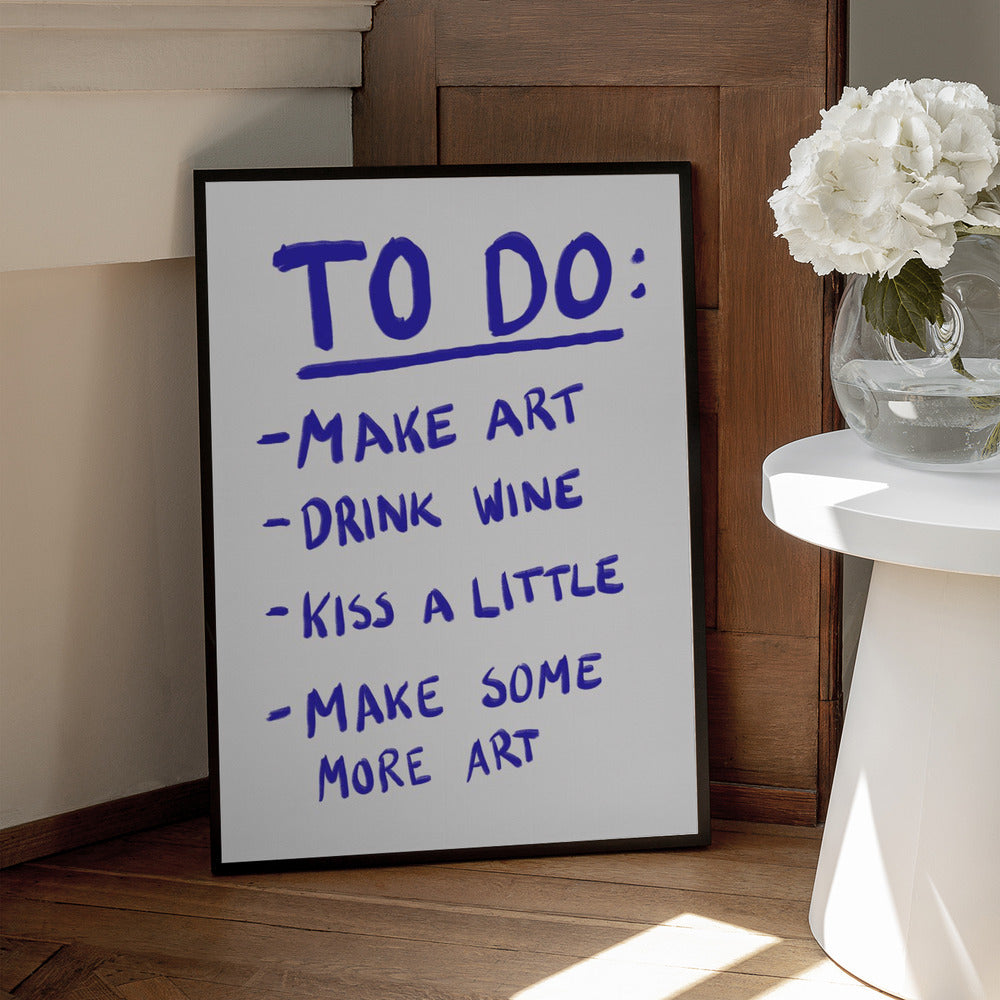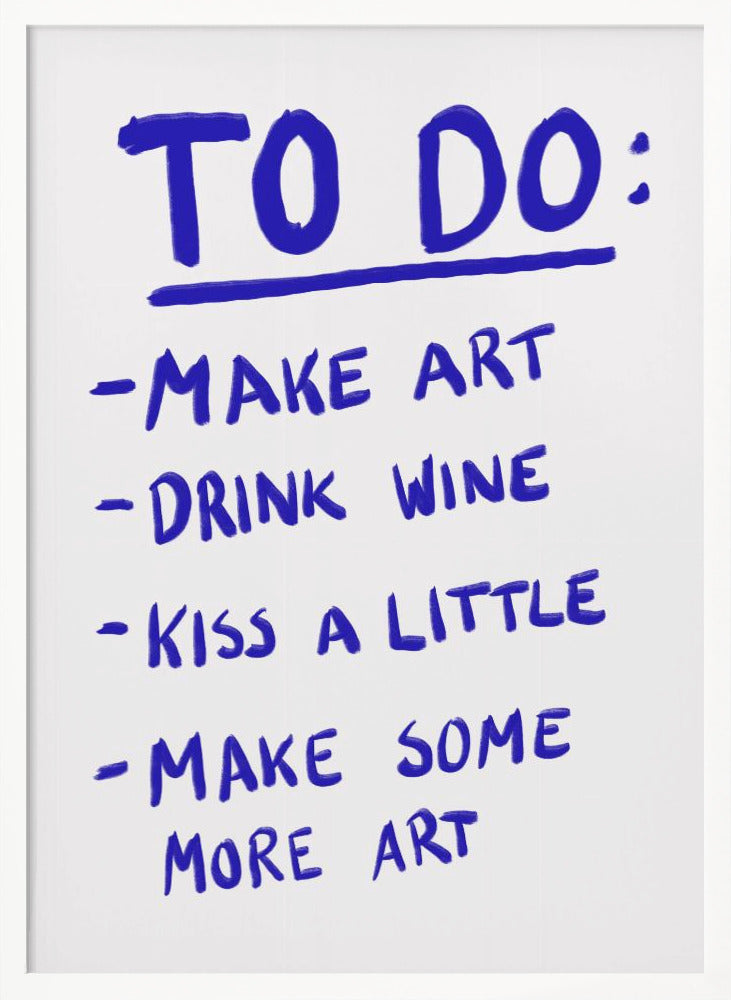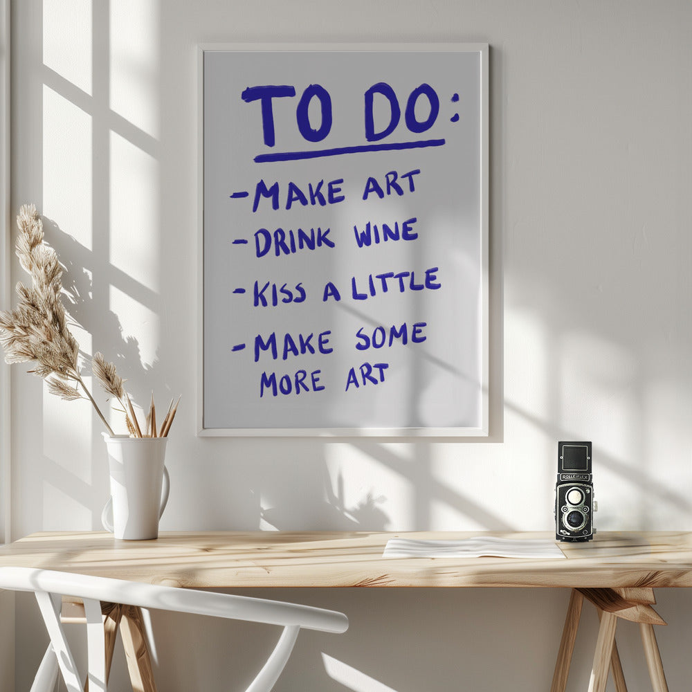 Tabloul înramat „Creative To-Do List”, creat de Athene Fritsch, este disponibil în mai multe dimensiuni, cu ramă neagră, albă sau din lemn natur. Se potrivește perfect în orice încăpere.