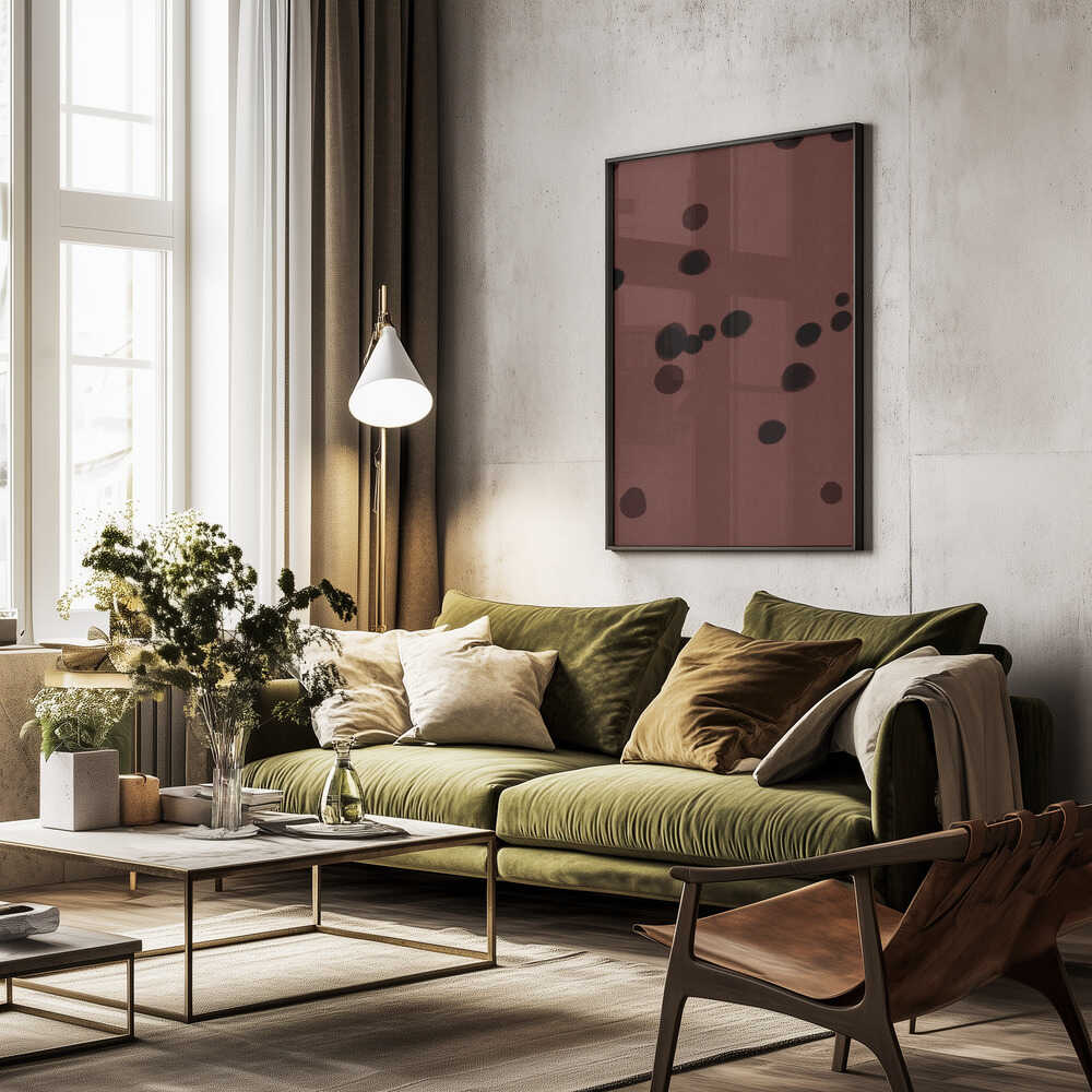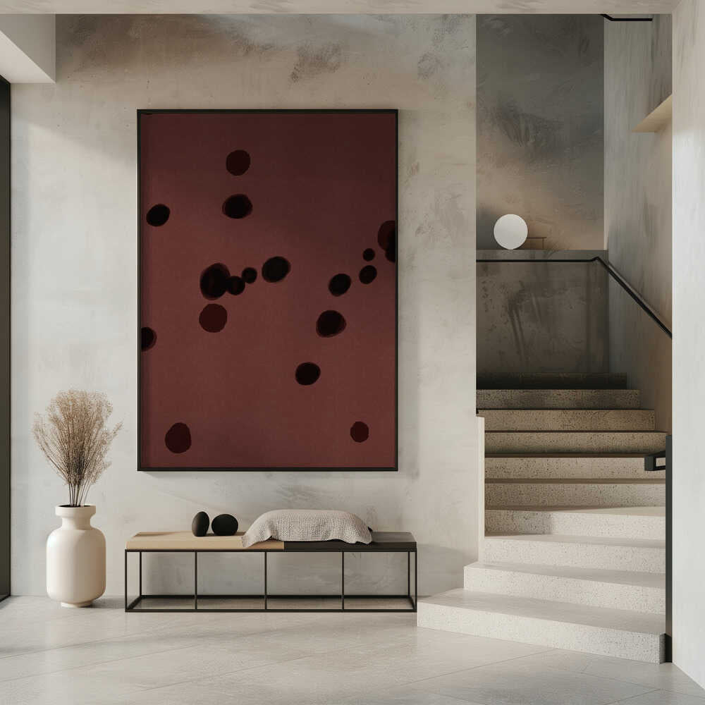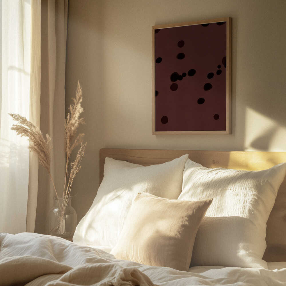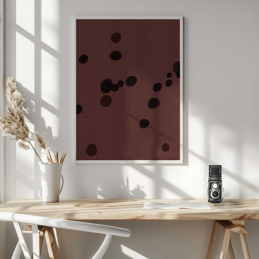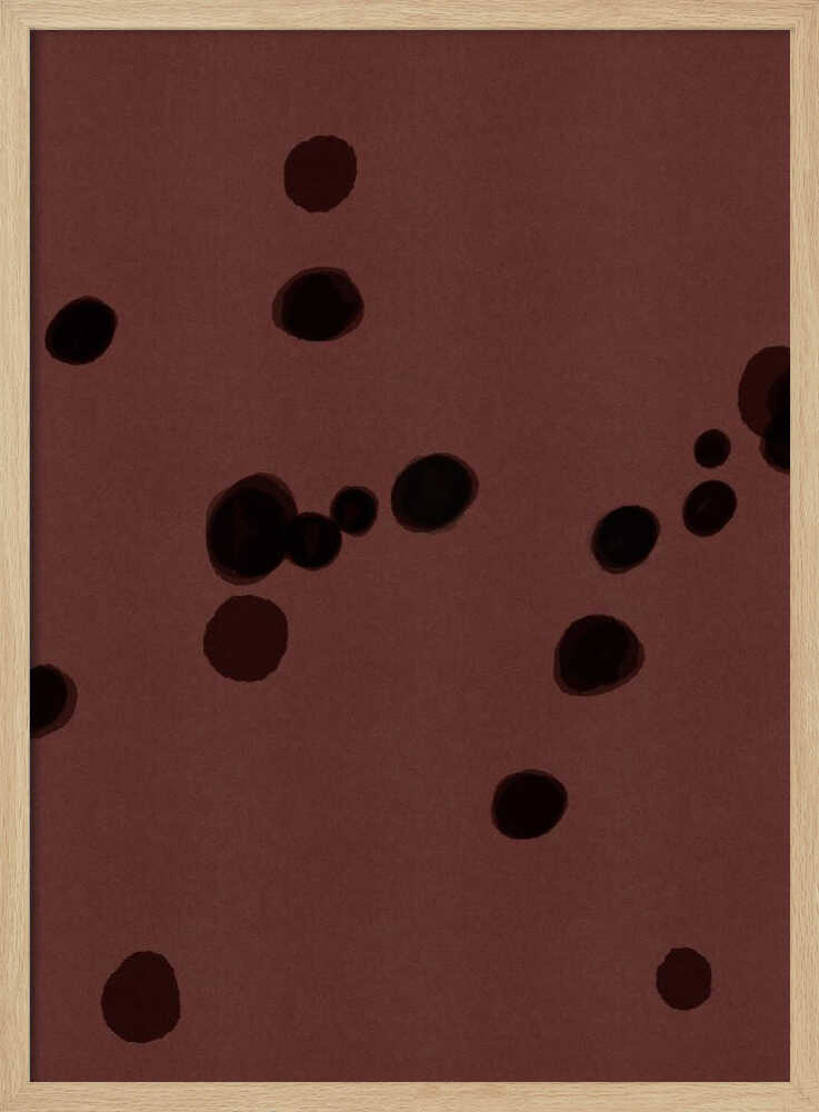 Tabloul înramat „Dark Cocoa Dots”, creat de Mela Patterns, este disponibil în mai multe dimensiuni, cu ramă neagră, albă sau din lemn natur. Se potrivește perfect în orice încăpere.