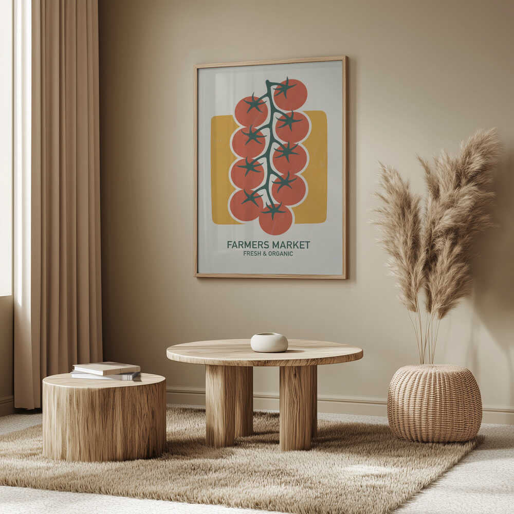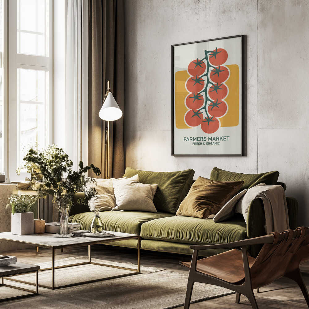 Tabloul înramat „Farmers Market”, creat de Andreas Magnusson, este disponibil în mai multe dimensiuni, cu ramă neagră, albă sau din lemn natur. Se potrivește perfect în orice încăpere.