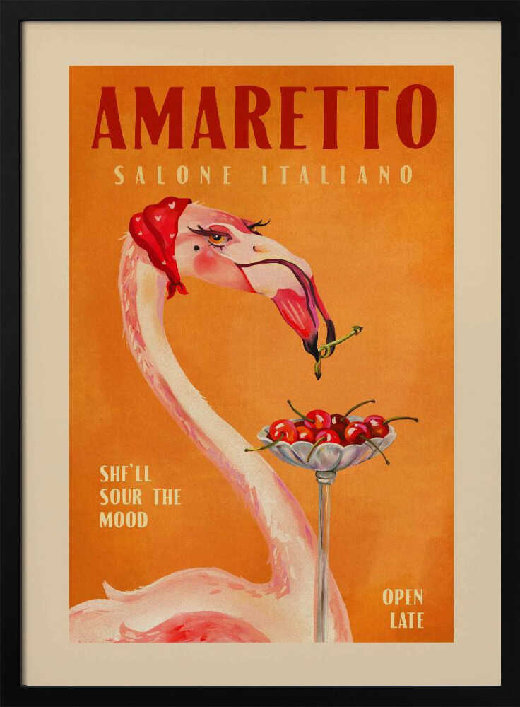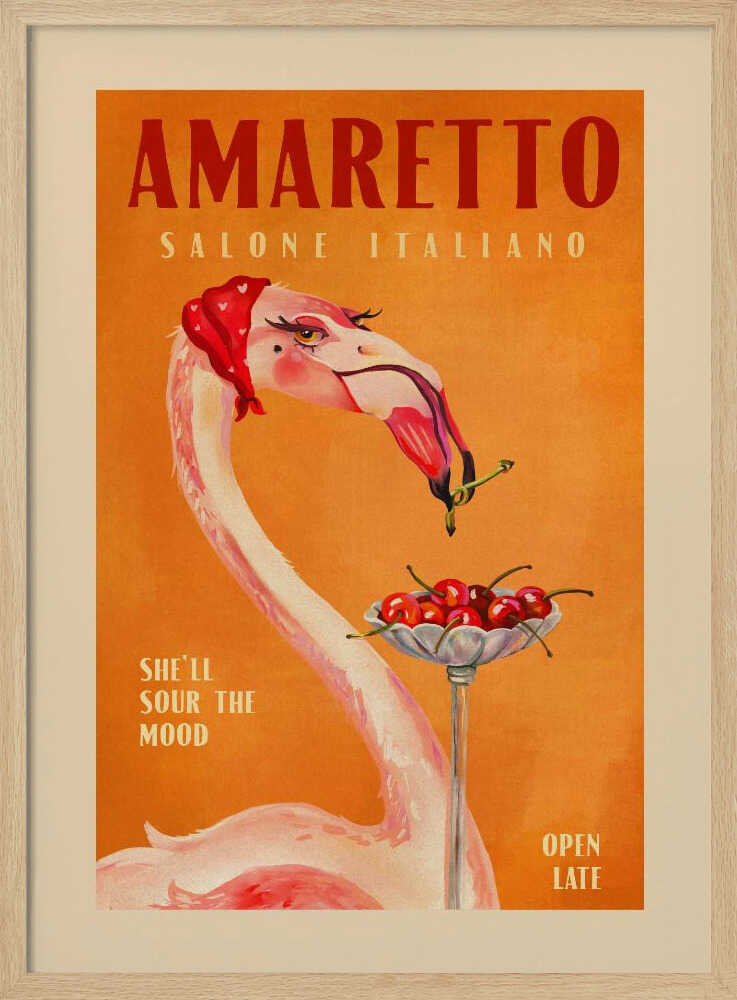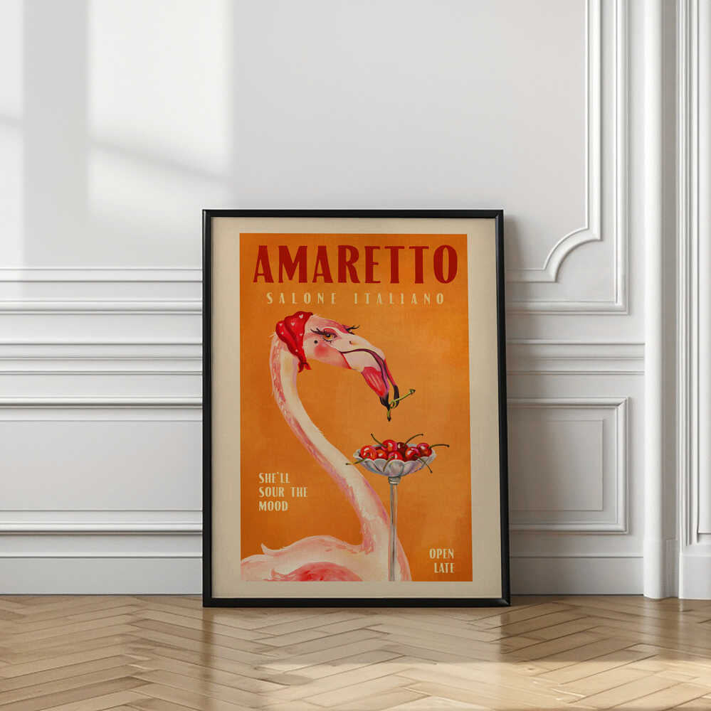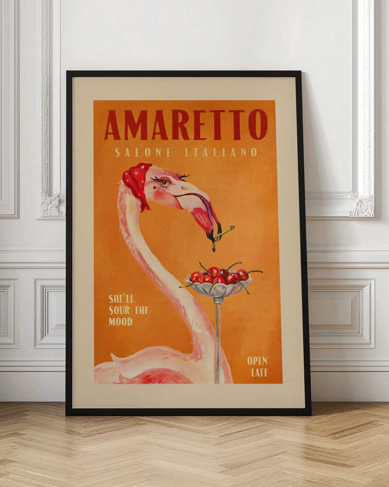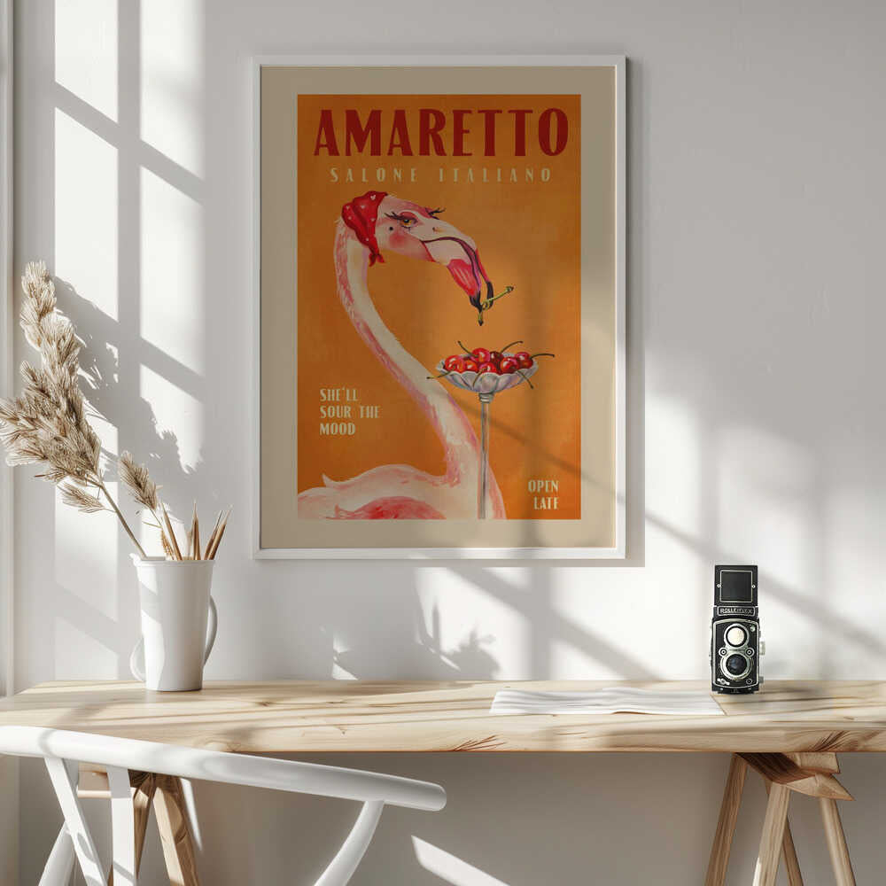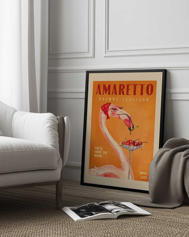 Tabloul înramat „Flamingo Delight”, creat de The Whiskey Ginger, este disponibil în mai multe dimensiuni, cu ramă neagră, albă sau din lemn natur. Se potrivește perfect în orice încăpere.