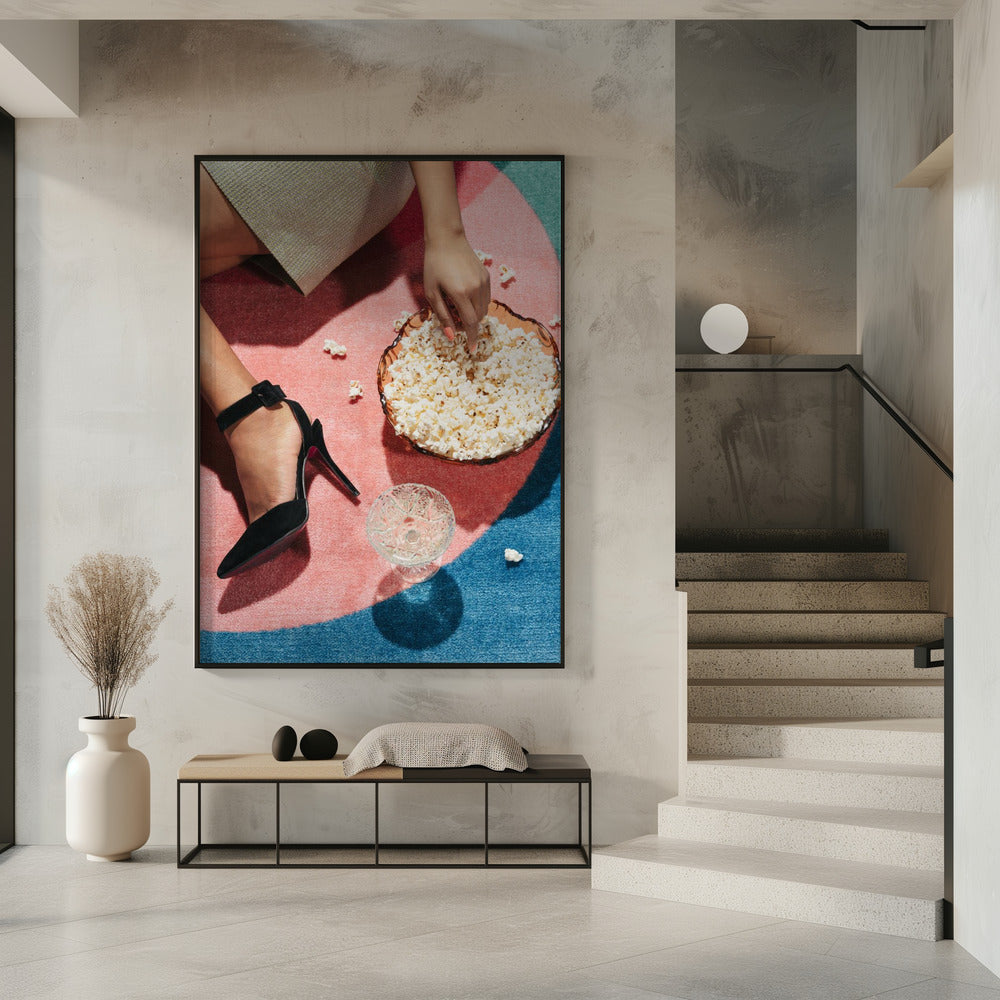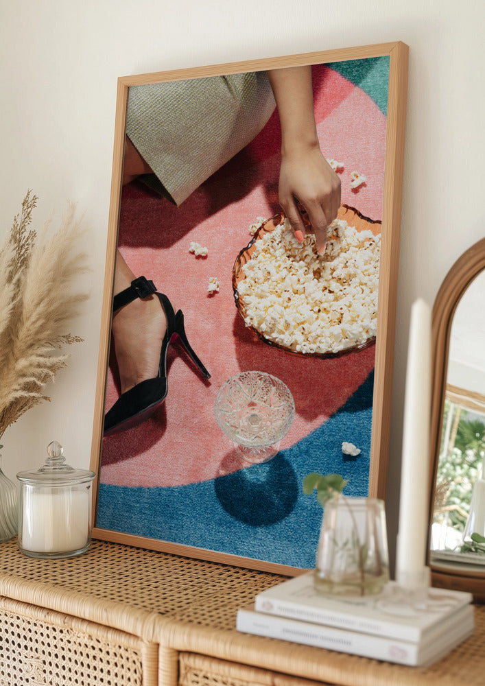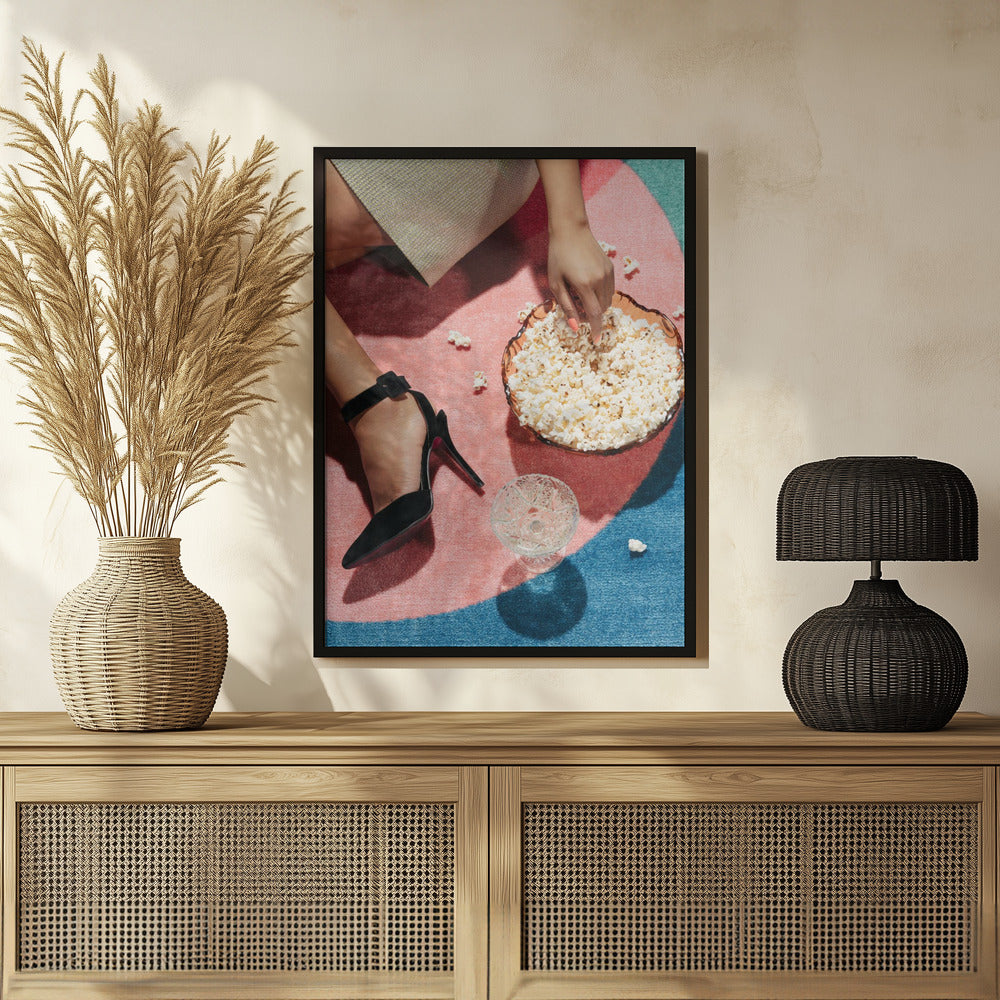 Tabloul înramat „Movie Night #02”, creat de Pictufy Studio III, este disponibil în mai multe dimensiuni, cu ramă neagră, albă sau din lemn natur. Se potrivește perfect în orice încăpere.