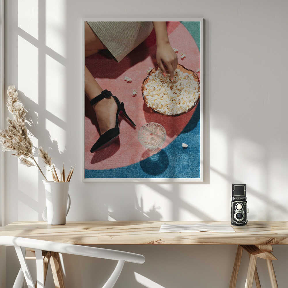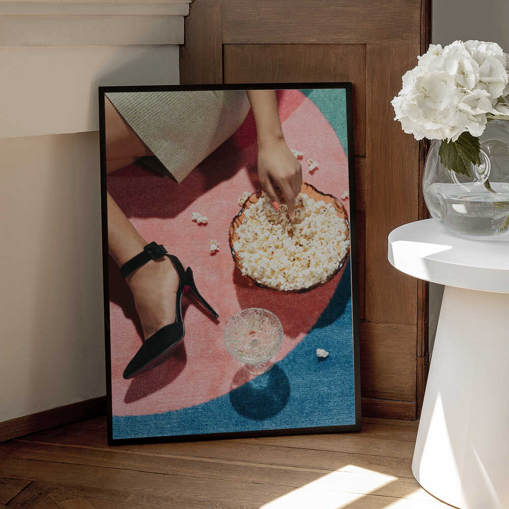 Tabloul înramat „Movie Night #02”, creat de Pictufy Studio III, este disponibil în mai multe dimensiuni, cu ramă neagră, albă sau din lemn natur. Se potrivește perfect în orice încăpere.