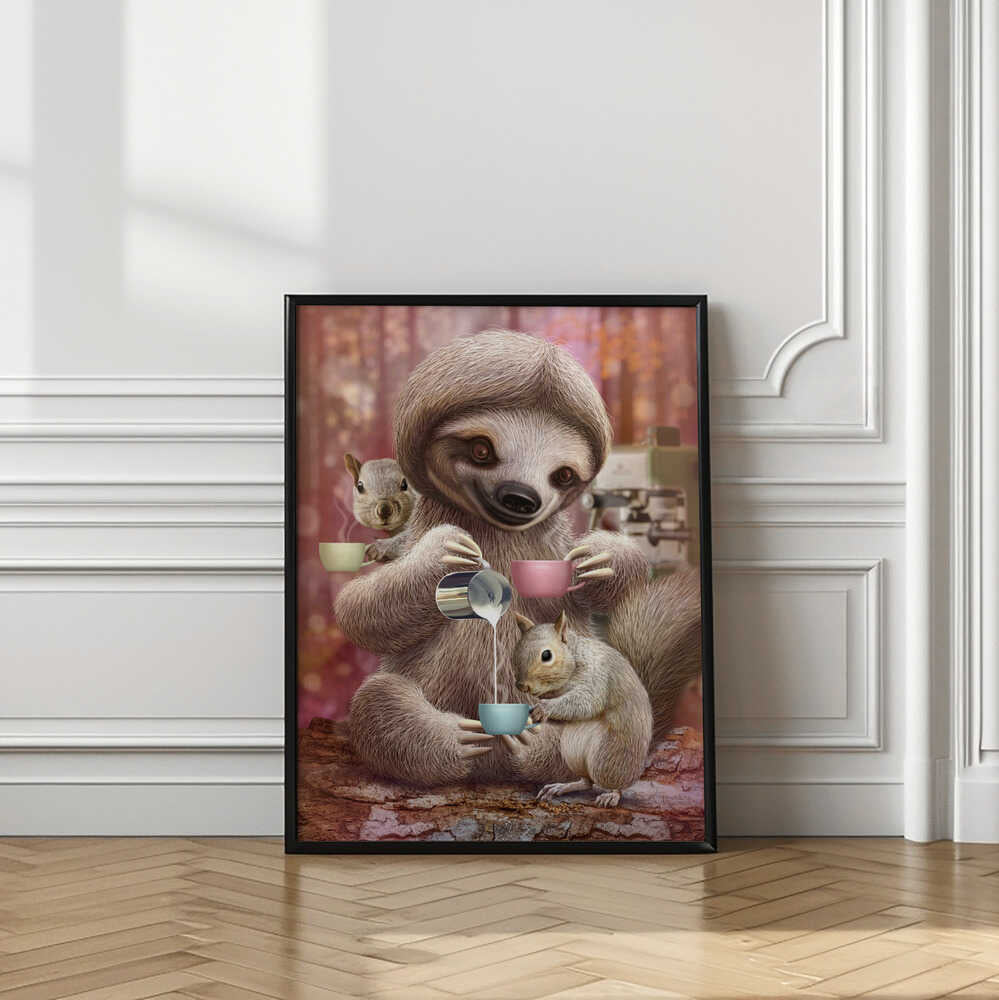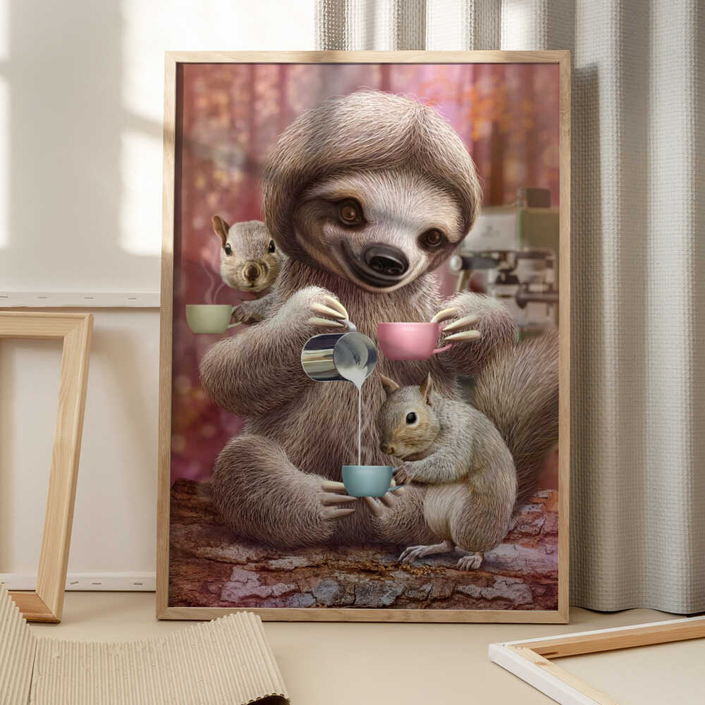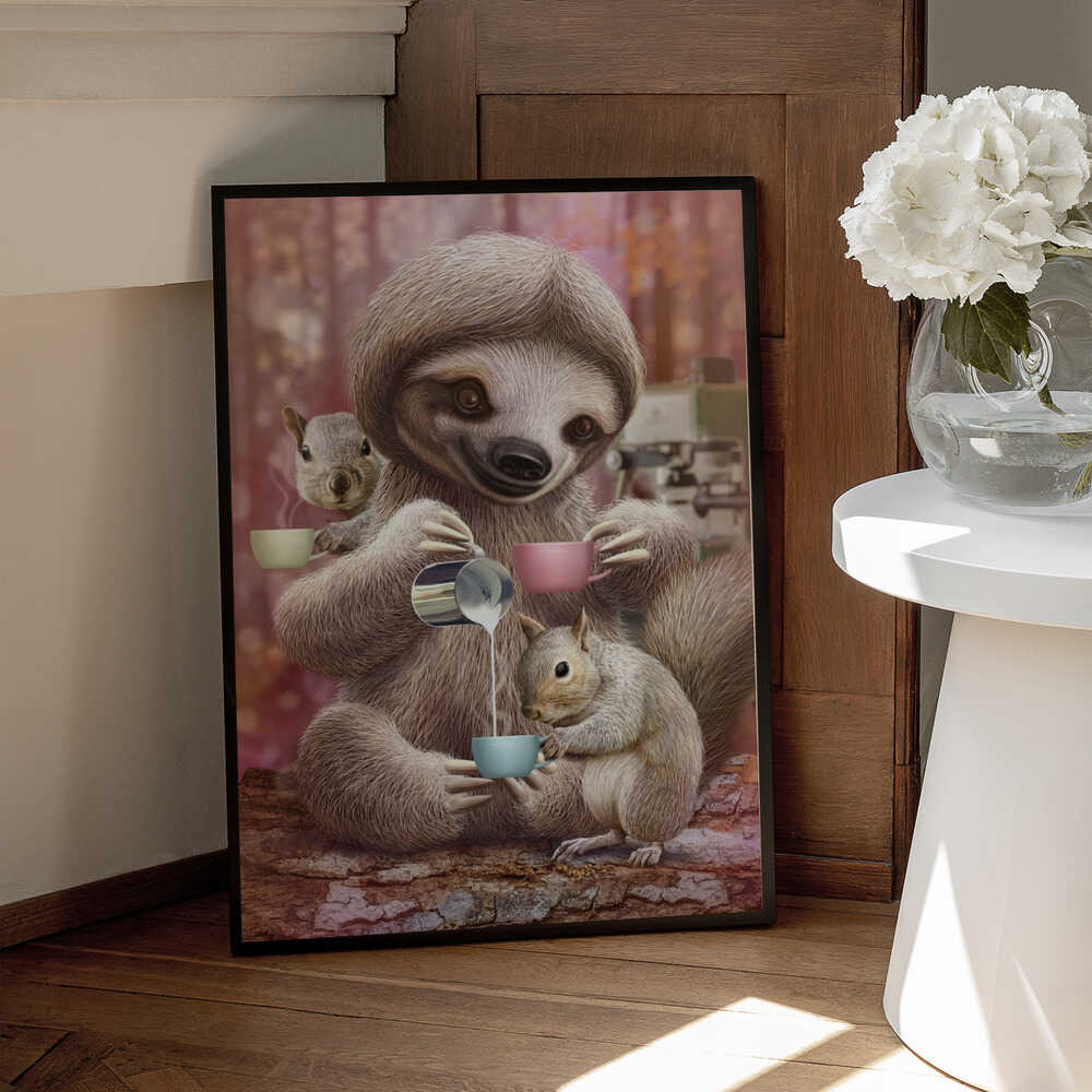 Tablou înramat „SLOTH THE BARISTA” de Adam Lawless