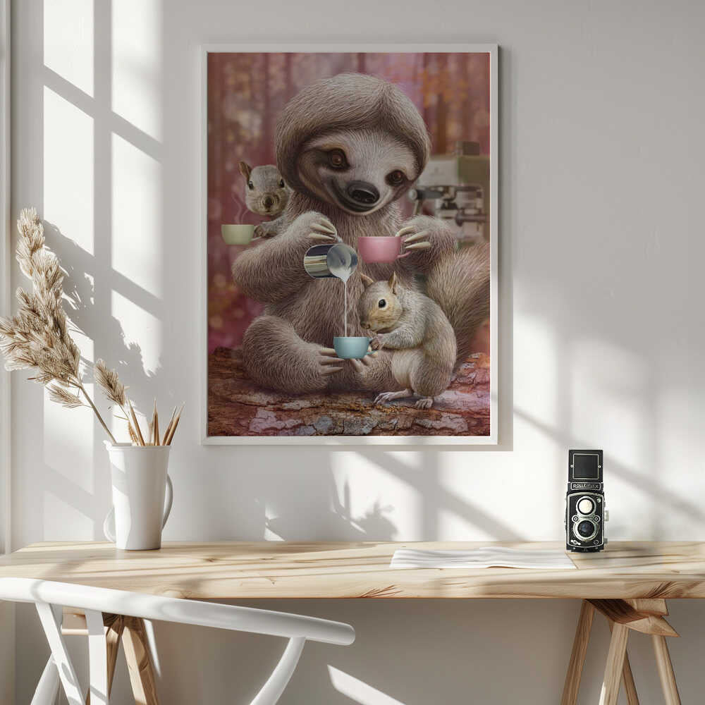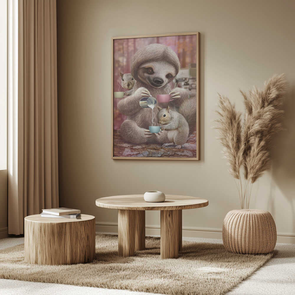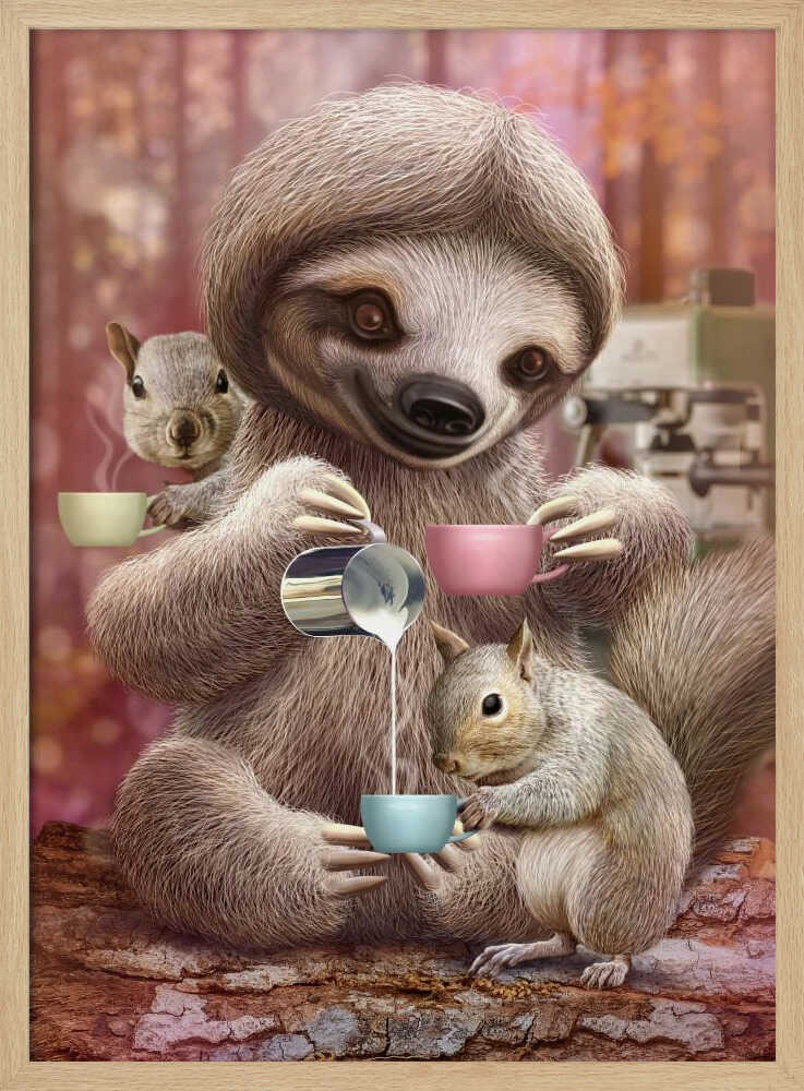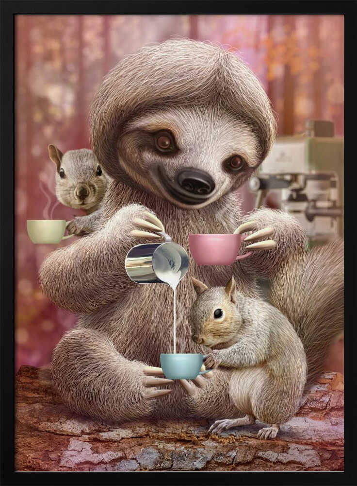 Tablou înramat „SLOTH THE BARISTA” de Adam Lawless