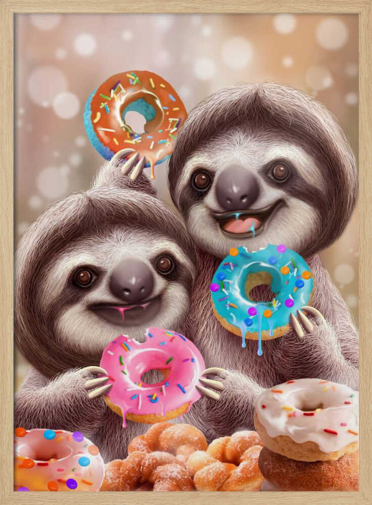Tablou înramat „SLOTHS EATING DONUTS” de Adam Lawless