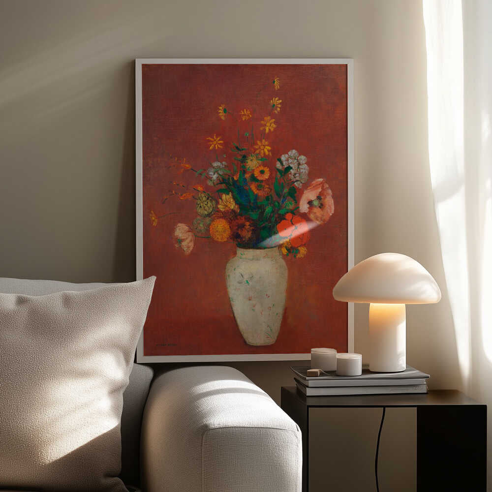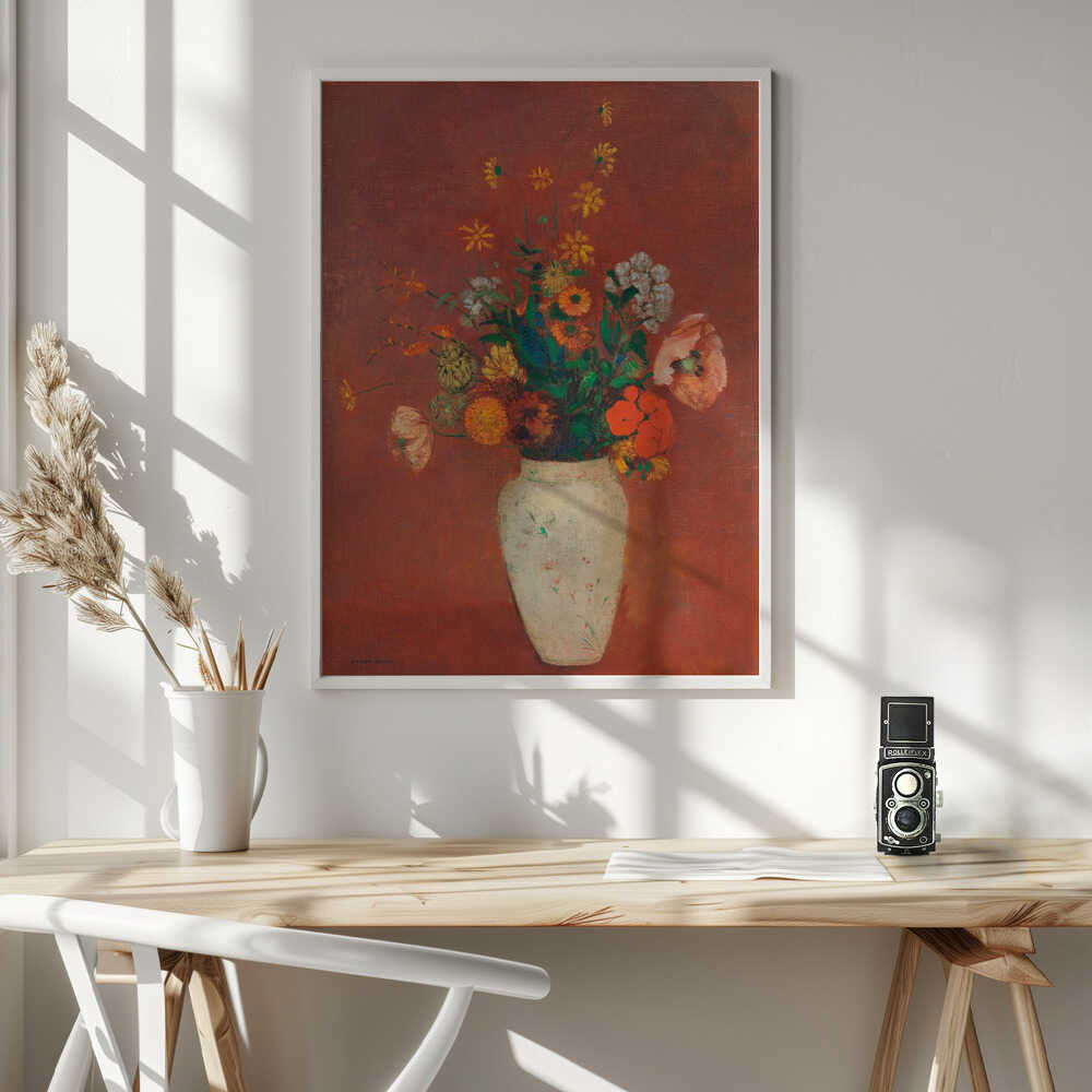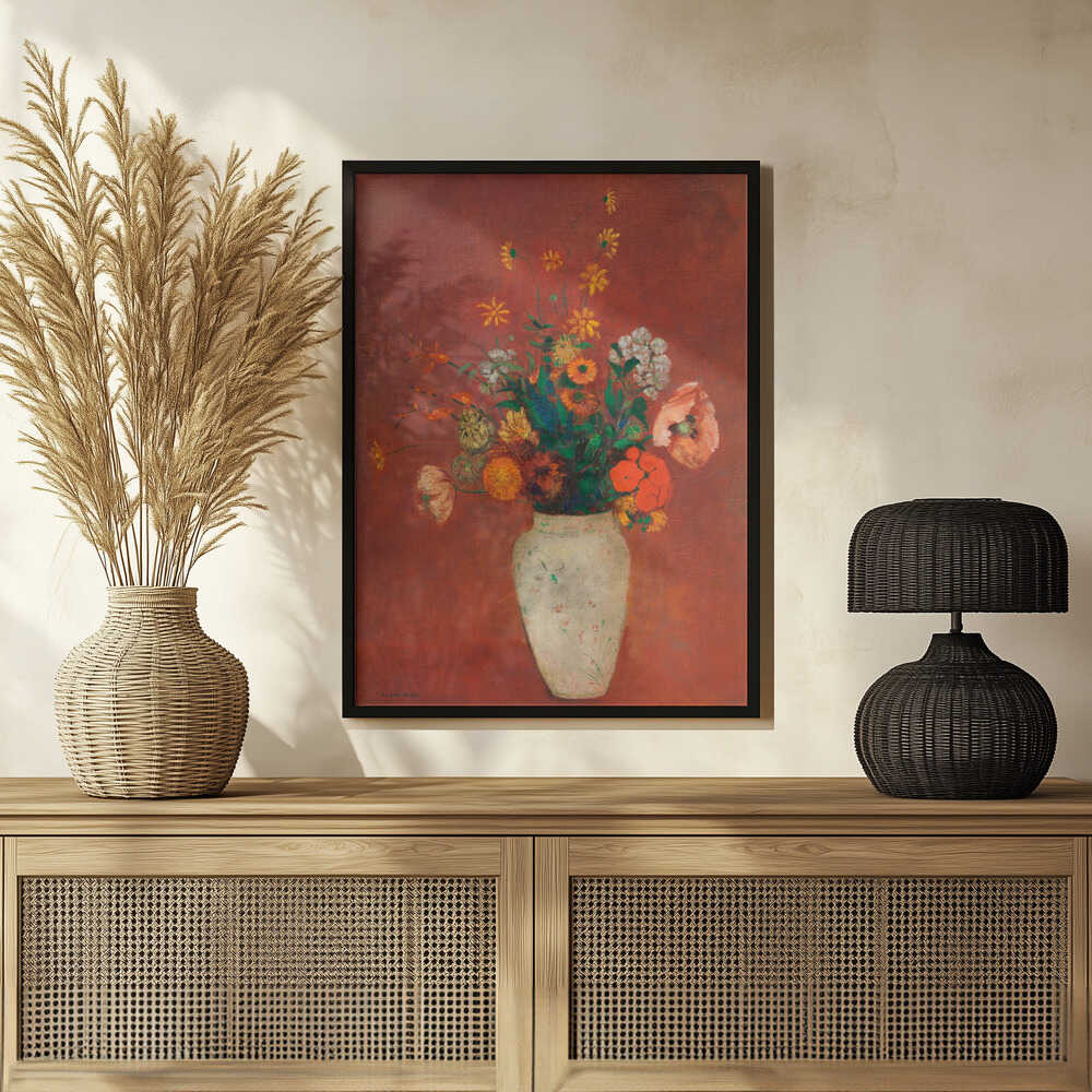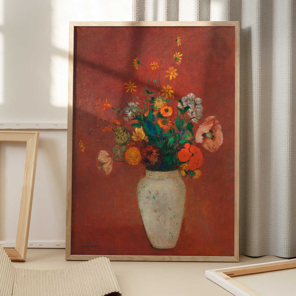 Tabloul înramat „Bouquet In a Chinese Vas”, creat de Odilon Redon, este disponibil în mai multe dimensiuni, cu ramă neagră, albă sau din lemn natur. Se potrivește perfect în orice încăpere.