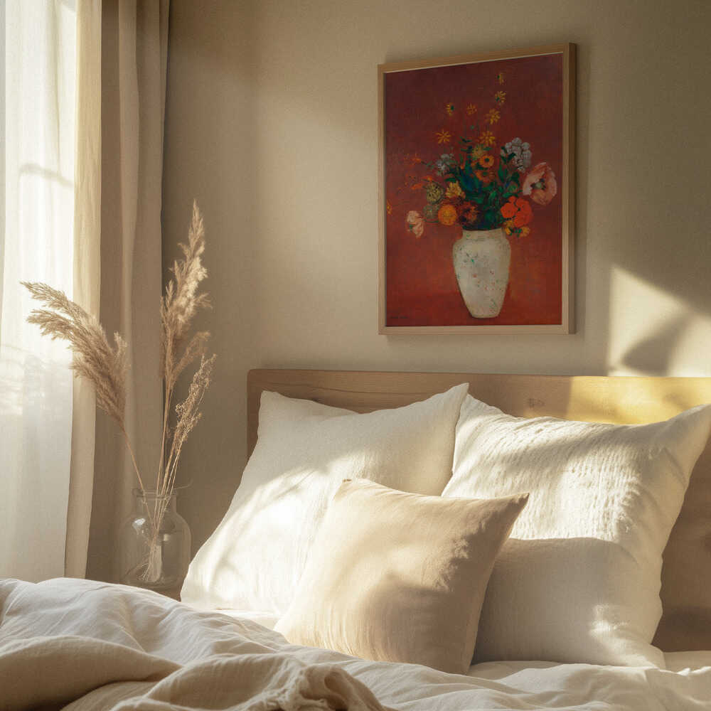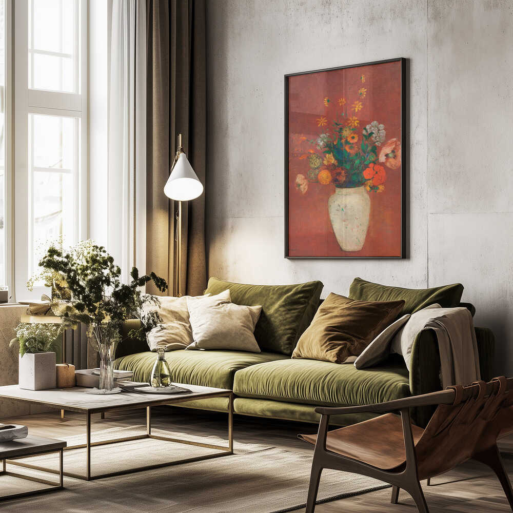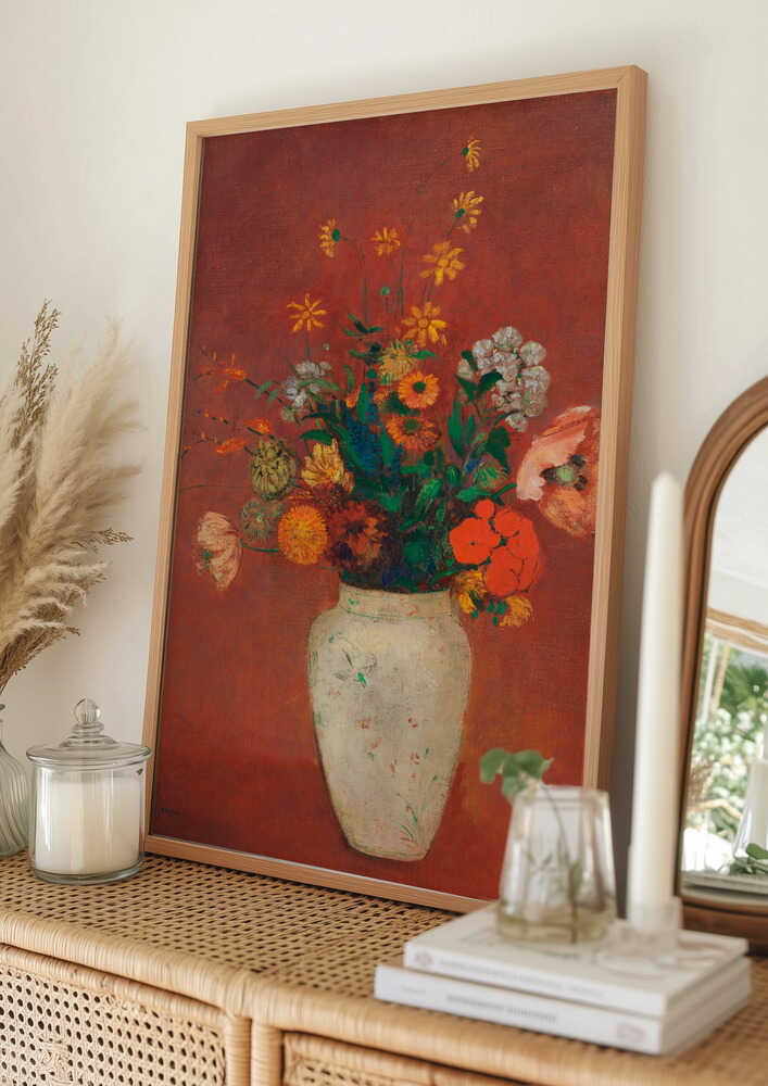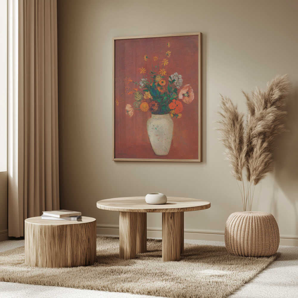 Tabloul înramat „Bouquet In a Chinese Vas”, creat de Odilon Redon, este disponibil în mai multe dimensiuni, cu ramă neagră, albă sau din lemn natur. Se potrivește perfect în orice încăpere.