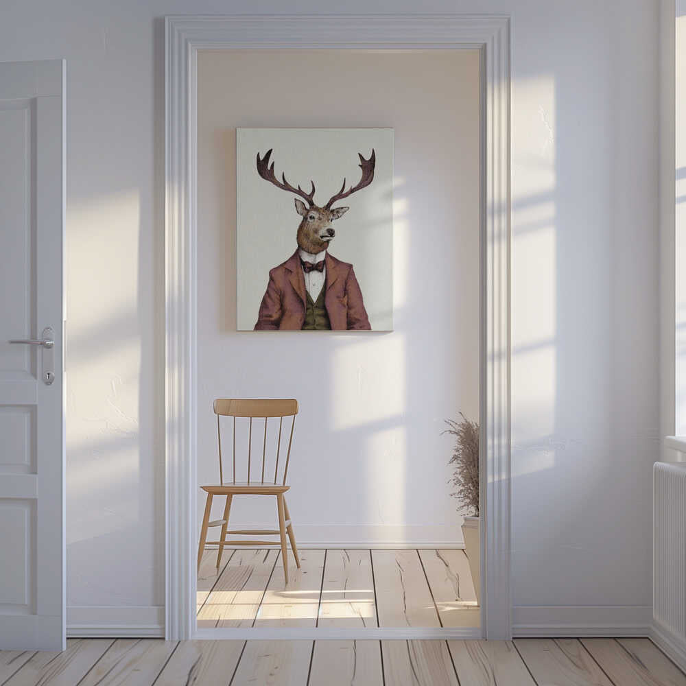 Tablou canvas „A deer With Human Attire—wearing” creat de Mike Koubou, imprimat pe pânză de calitate, gata de agățat. Disponibil în mai multe dimensiuni. Perfect pentru orice spațiu.