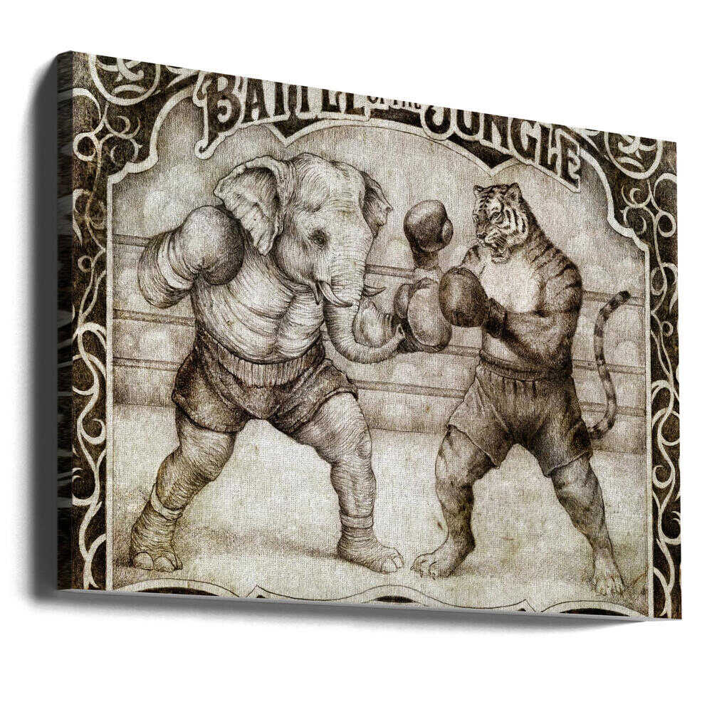 Tablou canvas „Battle of the Jungle” creat de Mike Koubou, imprimat pe pânză de calitate, gata de agățat. Disponibil în mai multe dimensiuni. Perfect pentru orice spațiu.