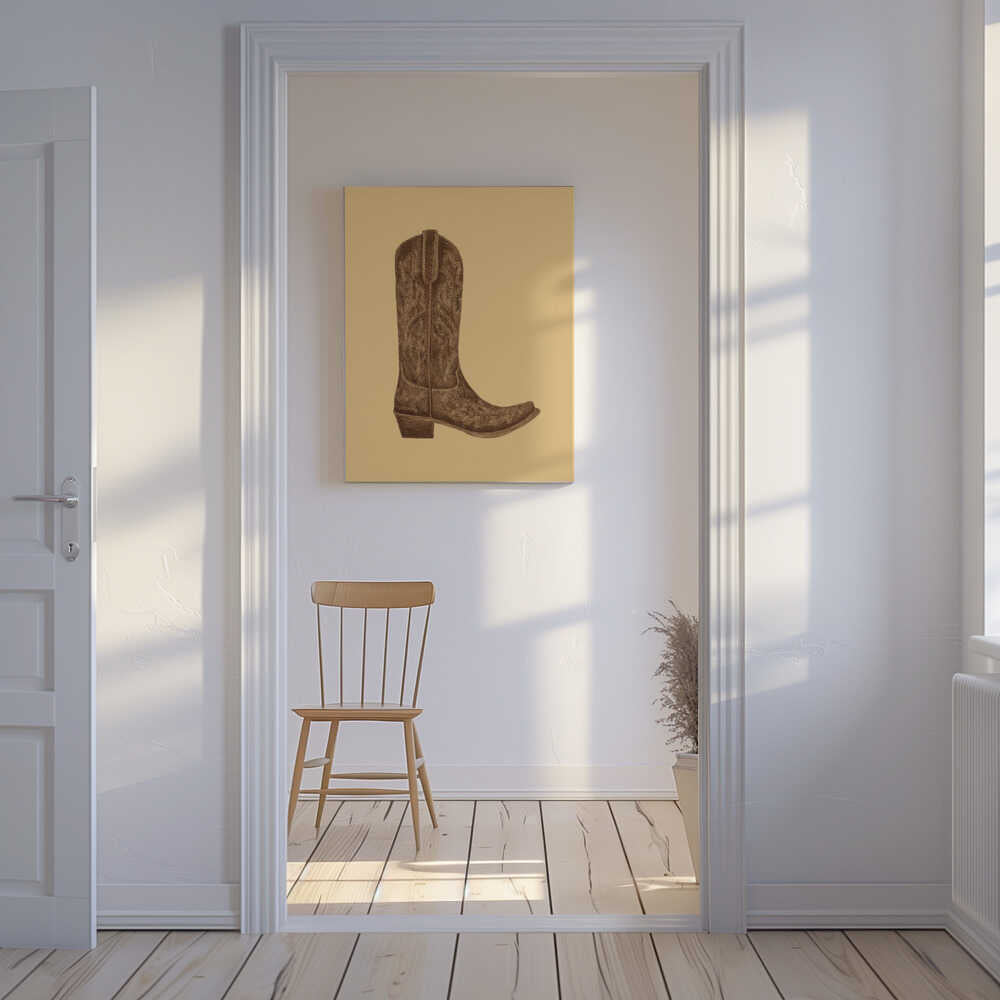 Tablou canvas „Brown Cowgirl Boot” creat de Anyone Can Yeehaw, imprimat pe pânză de calitate, gata de agățat. Disponibil în mai multe dimensiuni. Perfect pentru orice spațiu.