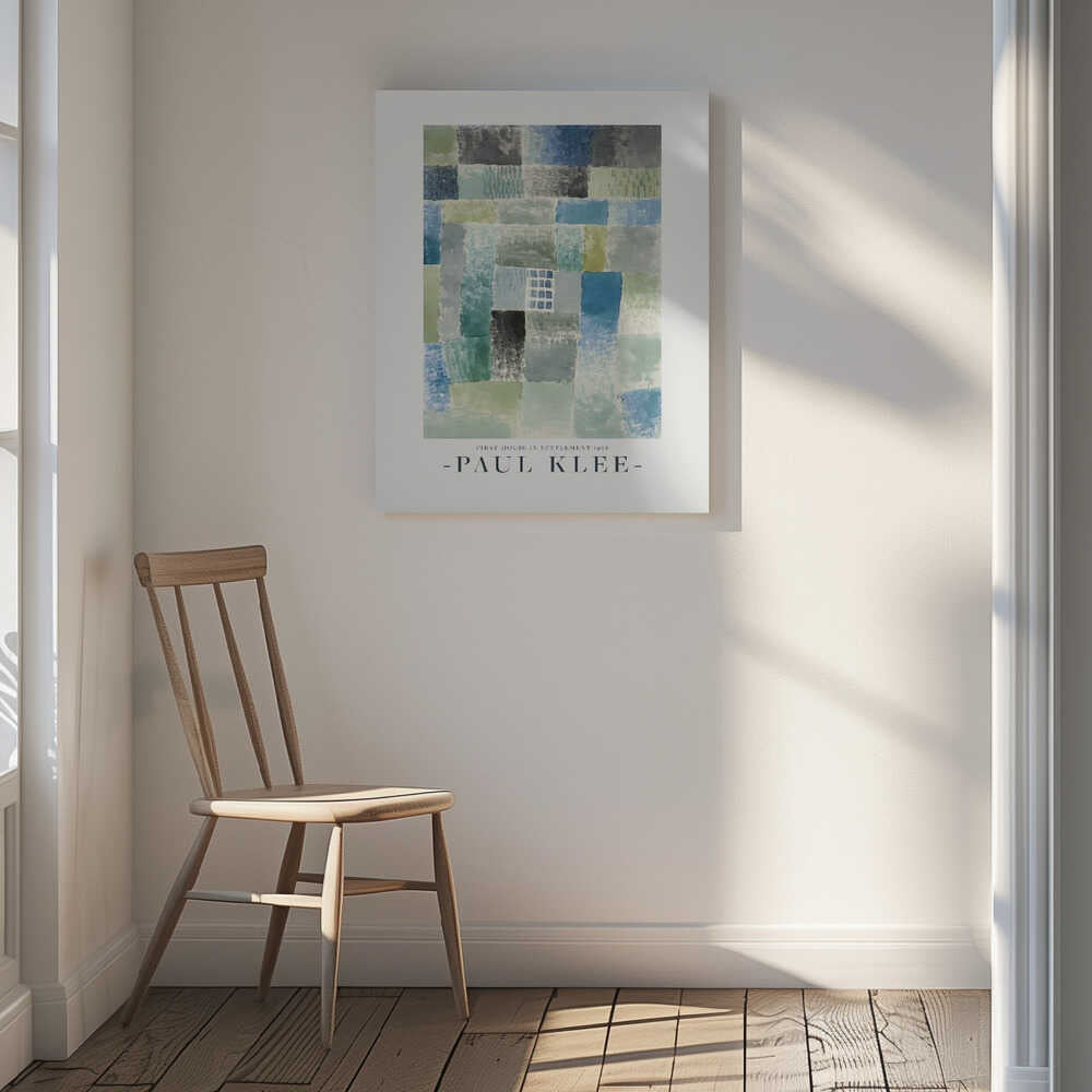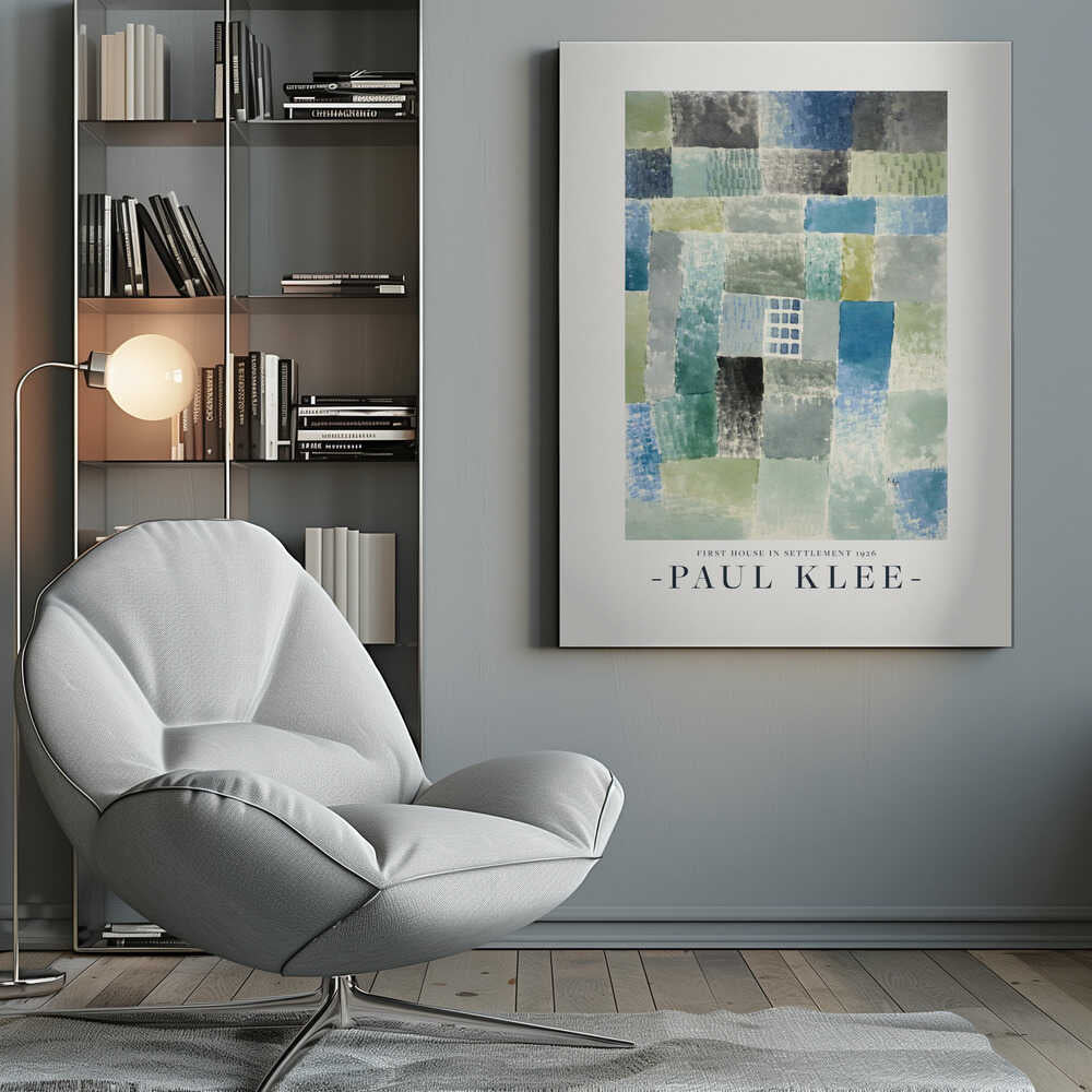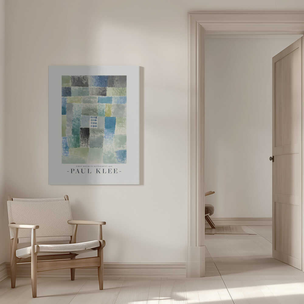 Tablou canvas „First House in a Settlement 1926” creat de Paul Klee, imprimat pe pânză de calitate, gata de agățat. Disponibil în mai multe dimensiuni. Perfect pentru orice spațiu.