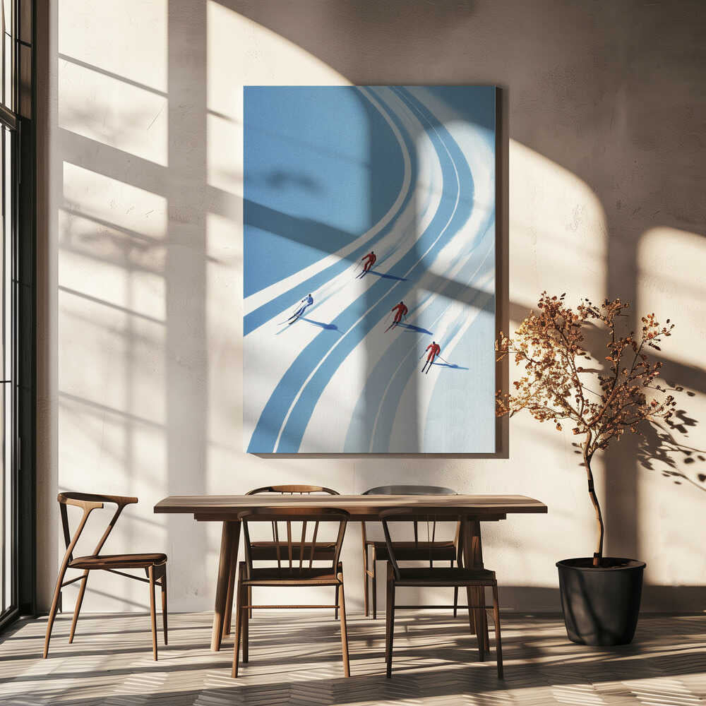 Tablou canvas „Four Skiers” creat de Andreas Magnusson, imprimat pe pânză de calitate, gata de agățat. Disponibil în mai multe dimensiuni. Perfect pentru orice spațiu.