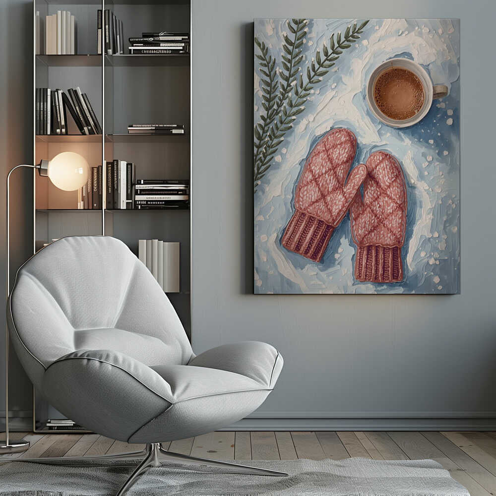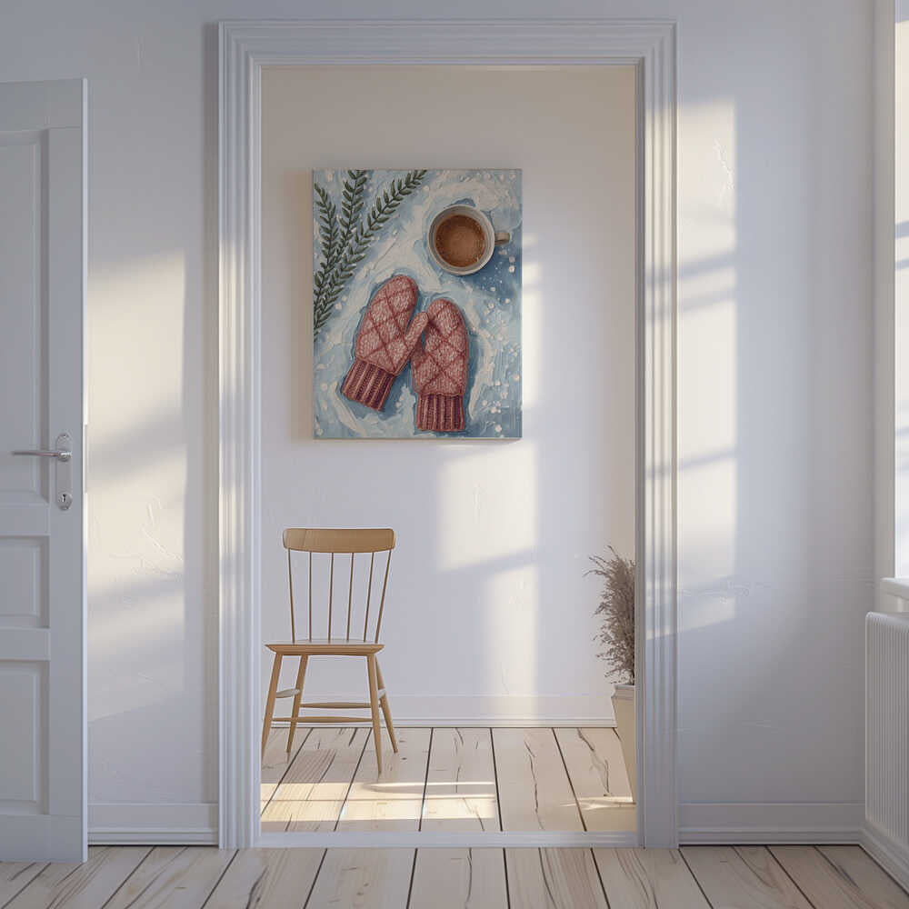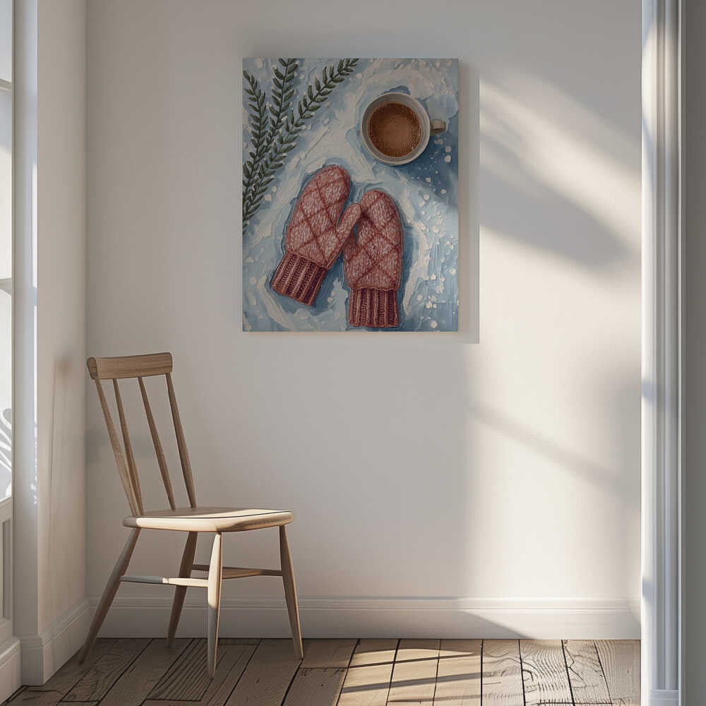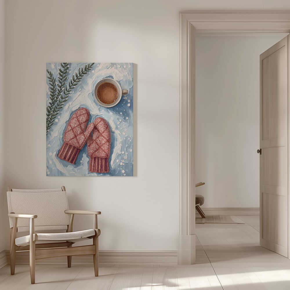 Tablou canvas „Handschuhe im Schnee mit Kakao” creat de Ohkimiko, imprimat pe pânză de calitate, gata de agățat. Disponibil în mai multe dimensiuni. Perfect pentru orice spațiu.