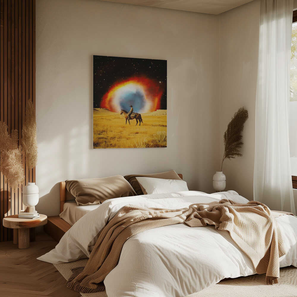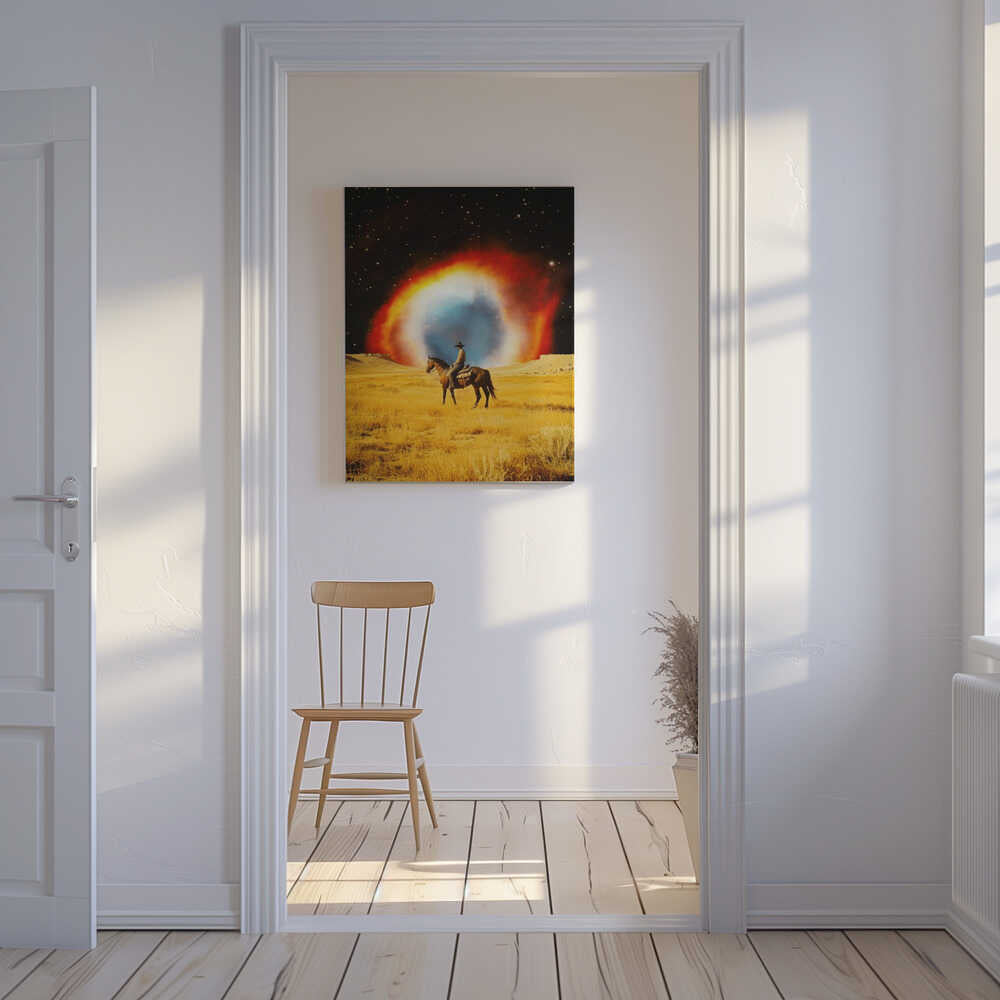Tablou canvas „Nebula Cowboy” creat de Taudalpoi, imprimat pe pânză de calitate, gata de agățat. Disponibil în mai multe dimensiuni. Perfect pentru orice spațiu.