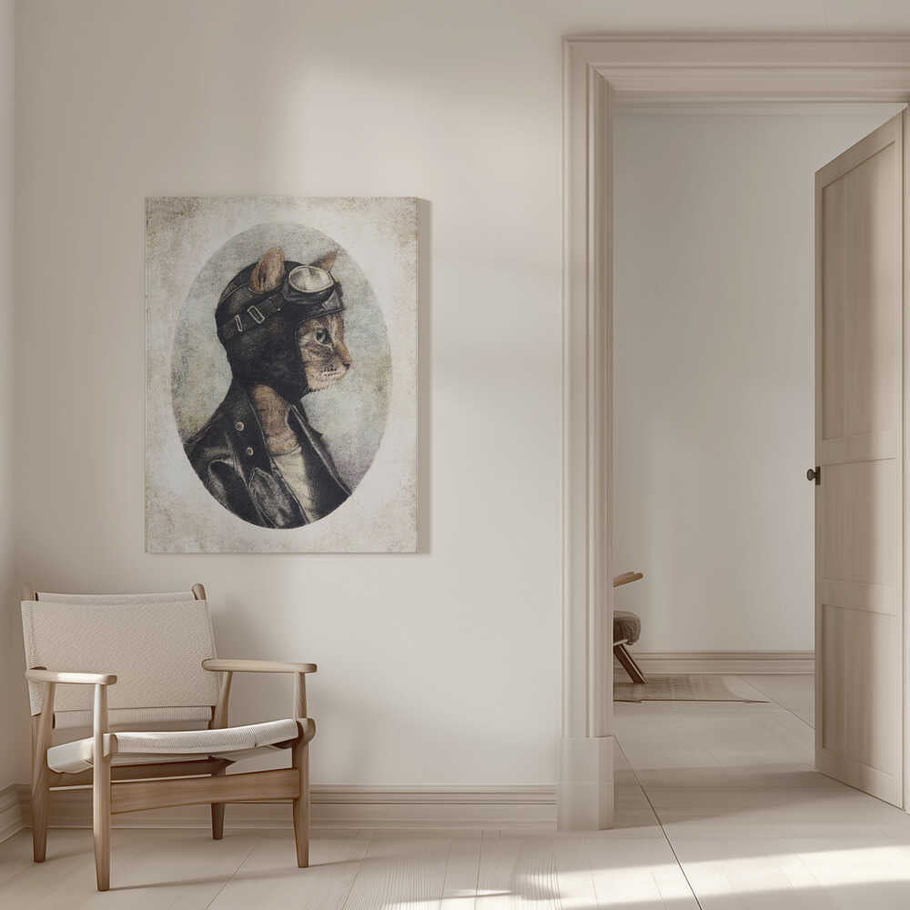 Tablou canvas „Stylish Cat Wearing A Leather Jacket” creat de Mike Koubou, imprimat pe pânză de calitate, gata de agățat. Disponibil în mai multe dimensiuni. Perfect pentru orice spațiu.
