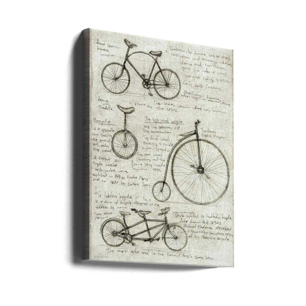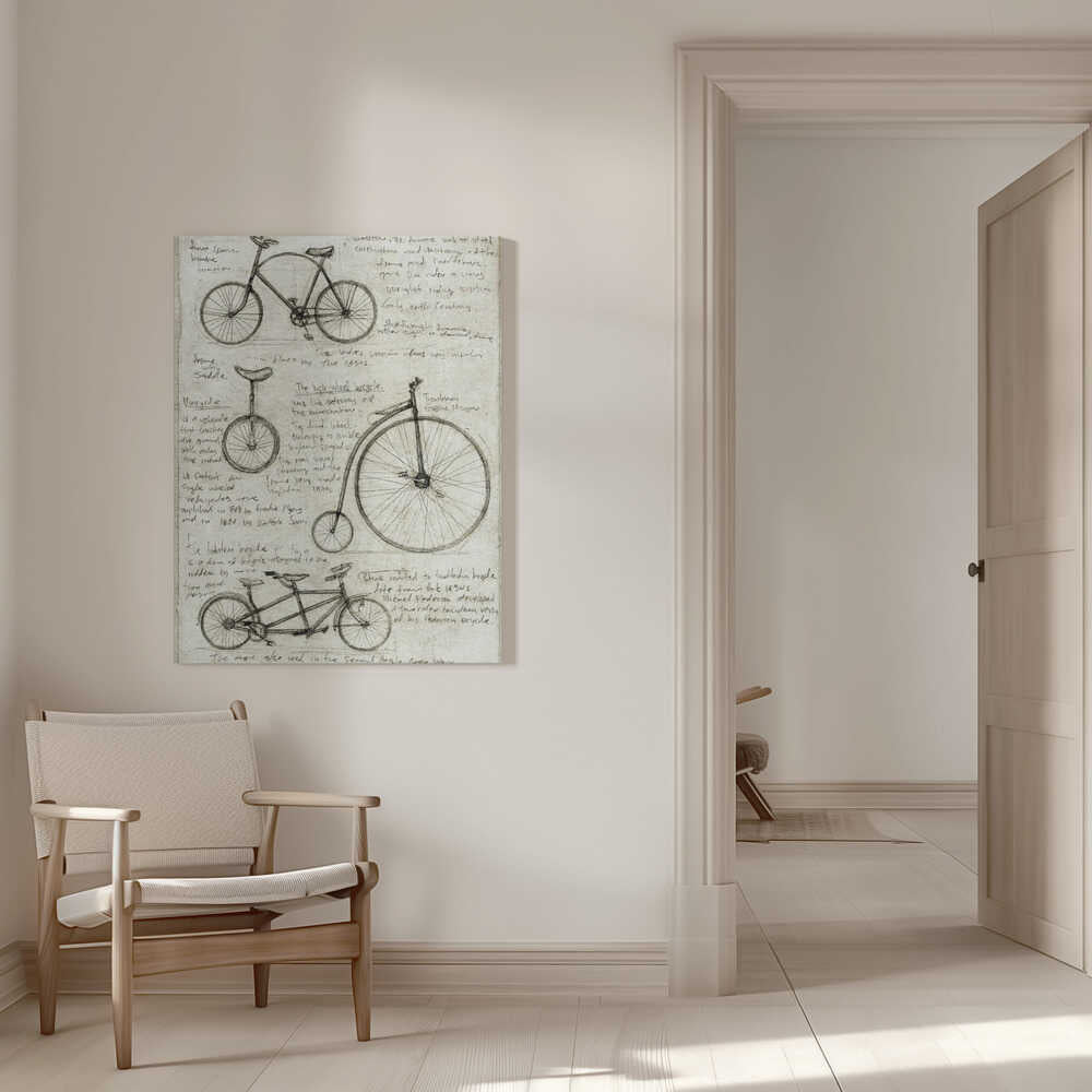 Tablou canvas „Vintage Bicycle Sketches” creat de Mike Koubou, imprimat pe pânză de calitate, gata de agățat. Disponibil în mai multe dimensiuni. Perfect pentru orice spațiu.