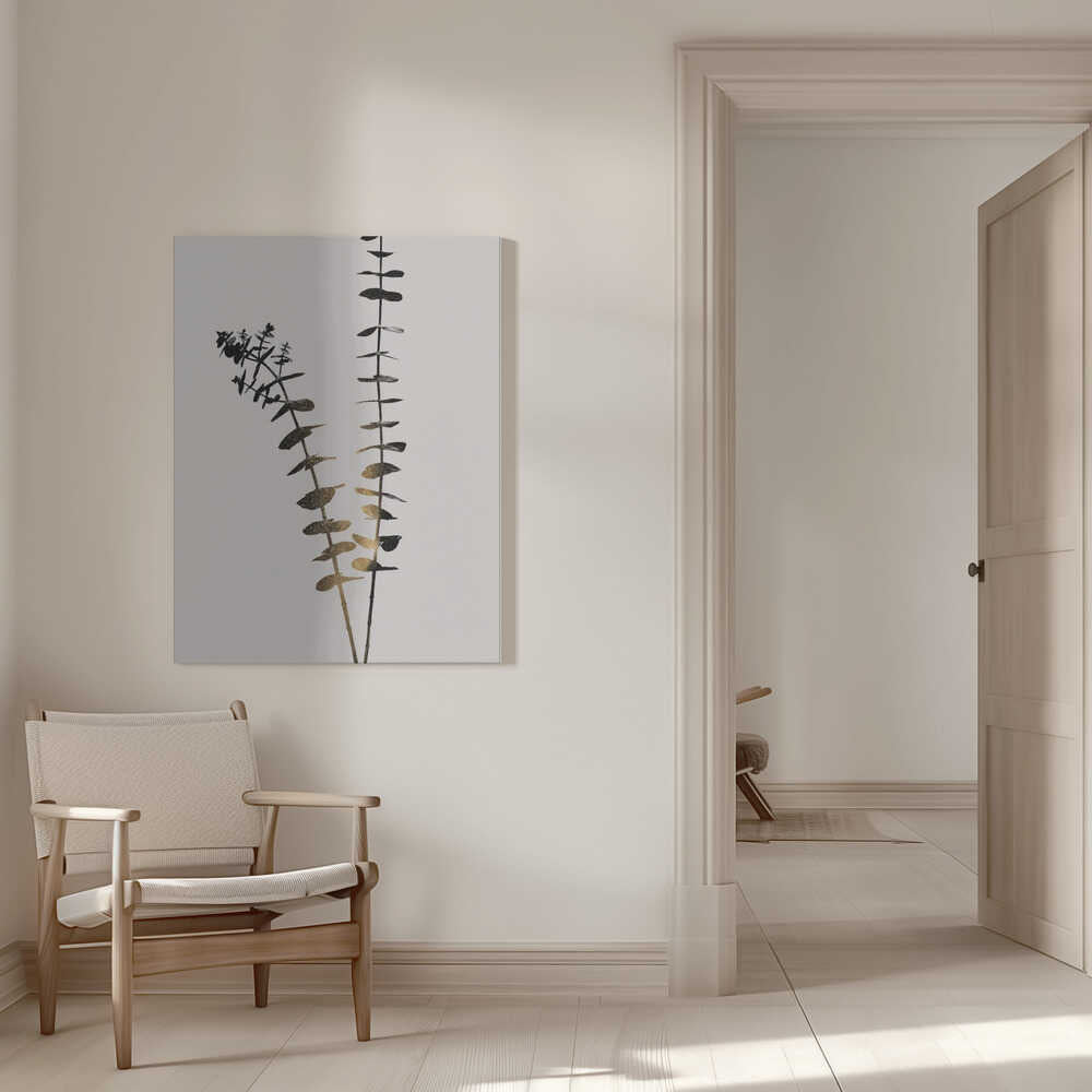 Tablou canvas „Eucalyptus Dark Gold” creat de Kubistika, imprimat pe pânză de calitate, gata de agățat. Disponibil în mai multe dimensiuni. Perfect pentru orice spațiu.