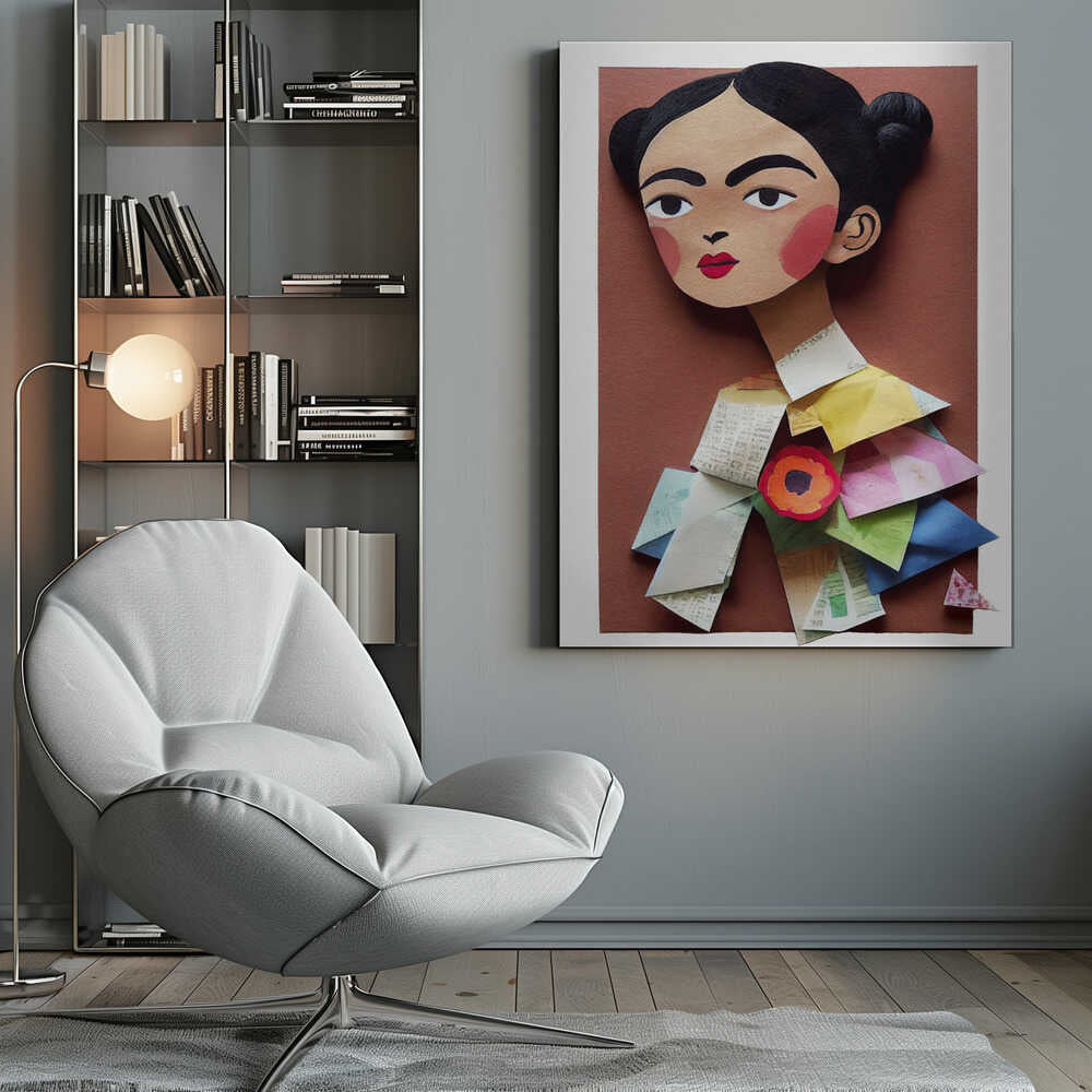 Tablou canvas „Paper Portrait Blossom” creat de Treechild, imprimat pe pânză de calitate, gata de agățat. Disponibil în mai multe dimensiuni. Perfect pentru orice spațiu.